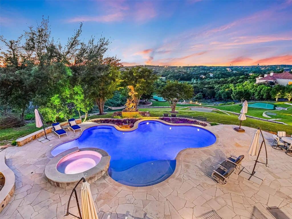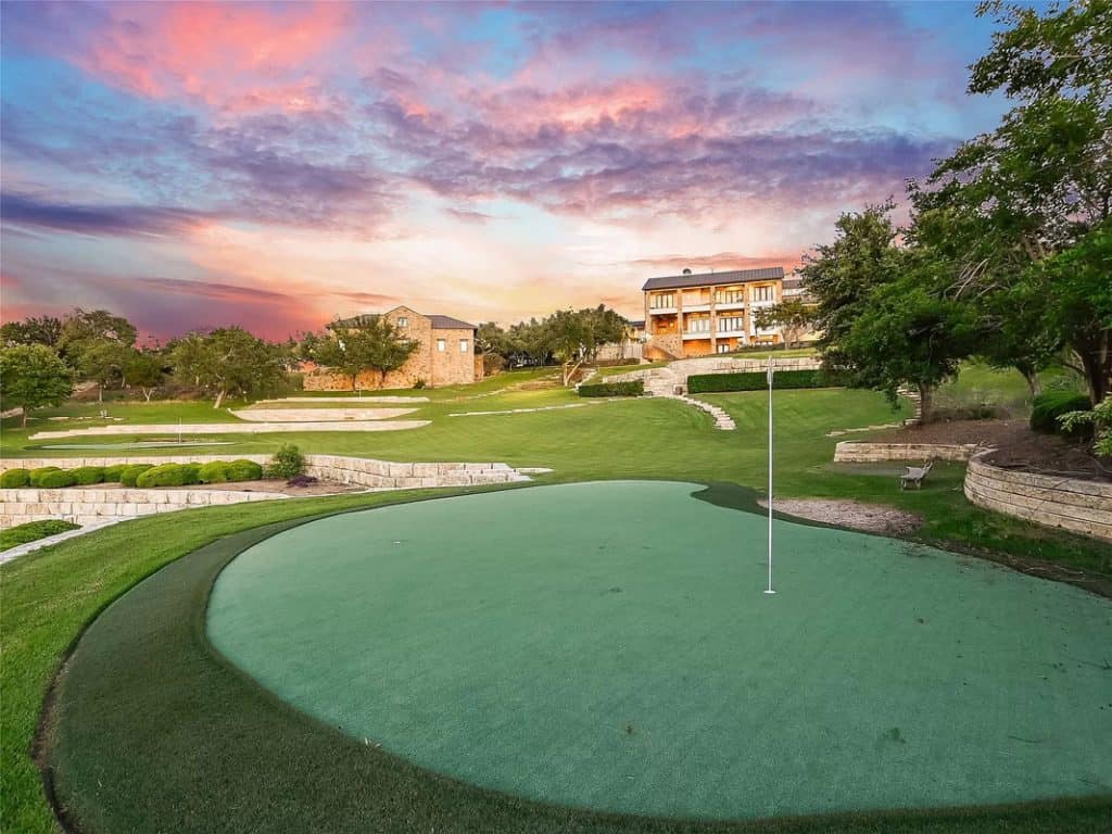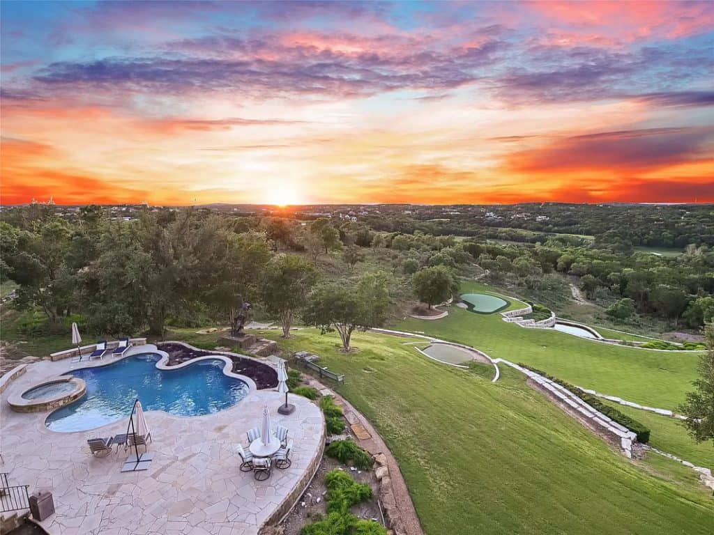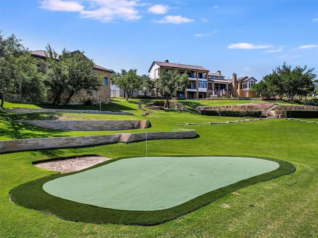 Step into Escala Drive, an incredible single-family estate spanning over 10,000 SF in the prestigious Barton Creek community. Nestled on 7 acres, this property includes a private nine-hole par-3 golf course and stunning views from various angles of the home, all while maintaining privacy and security. The home features 5 spacious bedrooms, each with its own en-suite bathroom. The primary bedroom is a luxurious retreat with a spa-like bath, dual vanities, a soaking tub, and a walk-in shower. The gourmet kitchen overlooks the main living area and is equipped with top-notch amenities. Other highlights include a formal dining room, breakfast nook, executive home office, game room, movie theater, wine cellar, multiple living spaces, a main house garage, and a detached, conditioned 3-car garage with a potential guest house on the 2nd level.