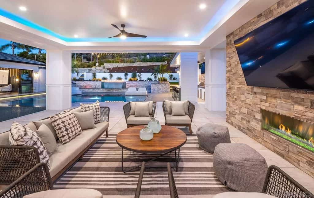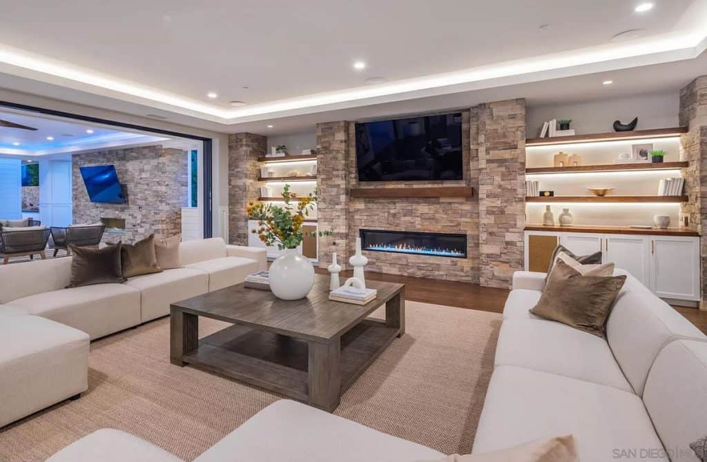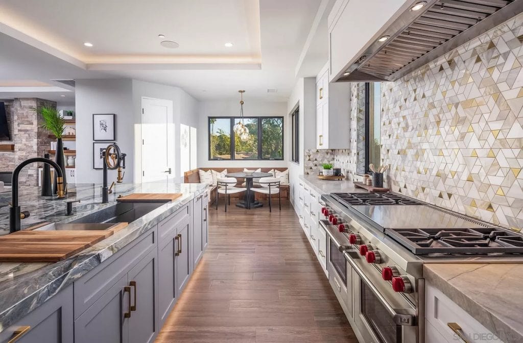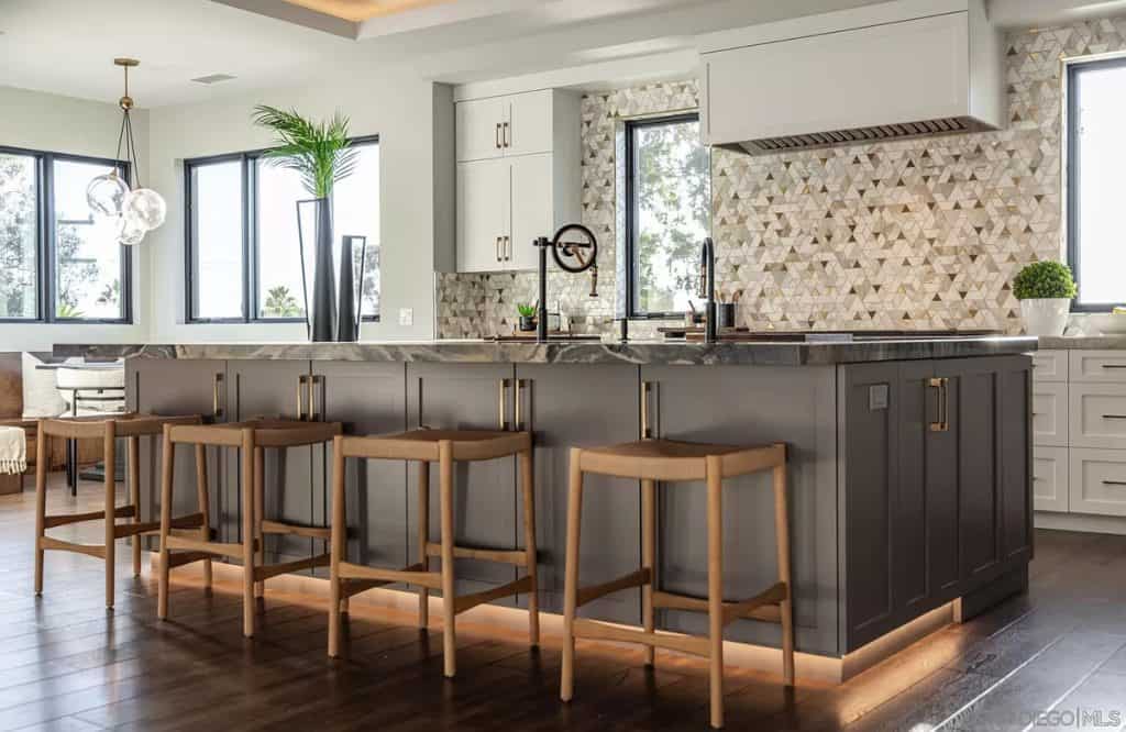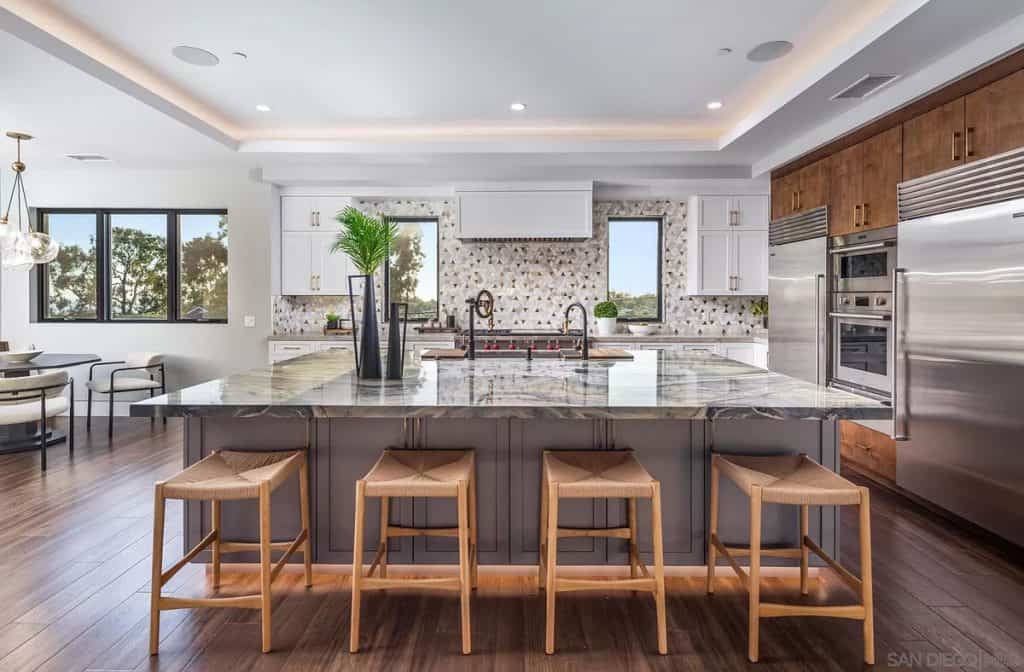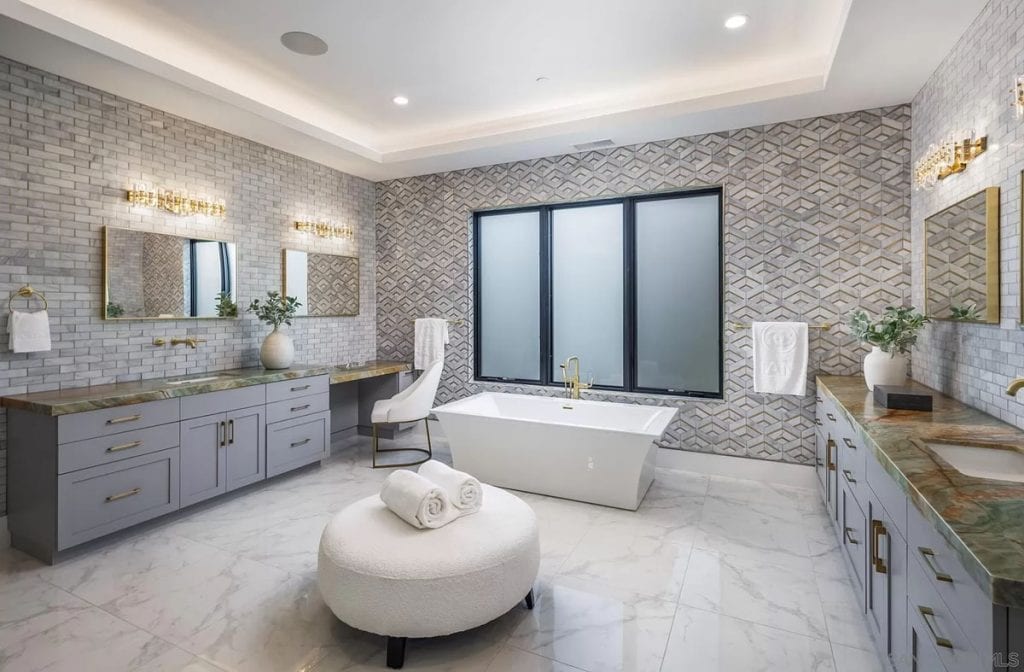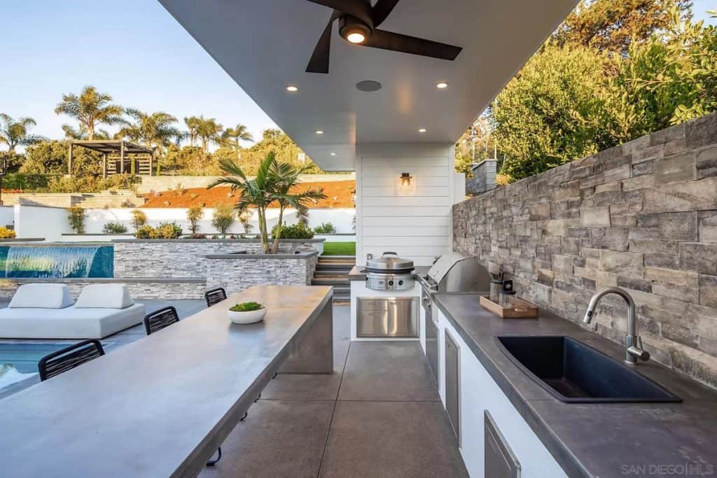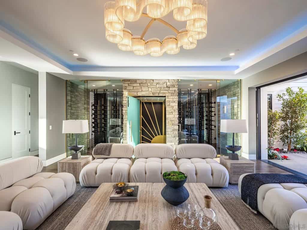 With its contemporary design and breathtaking ocean views, this 11,000 square foot masterpiece is truly perfect in every way. The first floor boasts a grand foyer, an outdoor pavilion with a magnificent 20-foot waterfall, a full bar/kitchen, and a wine room, making it the ideal space for hosting events and gatherings. Additionally, you’ll find a primary bedroom, a gym, an office, and an extra bedroom on this level, providing all the amenities of a luxurious resort home. Take the beautifully designed elevator up to the second floor, where you’ll be greeted by sweeping hillside and ocean views from every window. The spacious family room opens up to the dining room, breakfast nook, kitchen, and a veranda overlooking the pool. The second primary suite offers dual access to the living room hallway and the outdoor entertaining area, allowing for easy enjoyment of the ocean view basketball and bocce courts, as well as the heated swimming pool and spa.