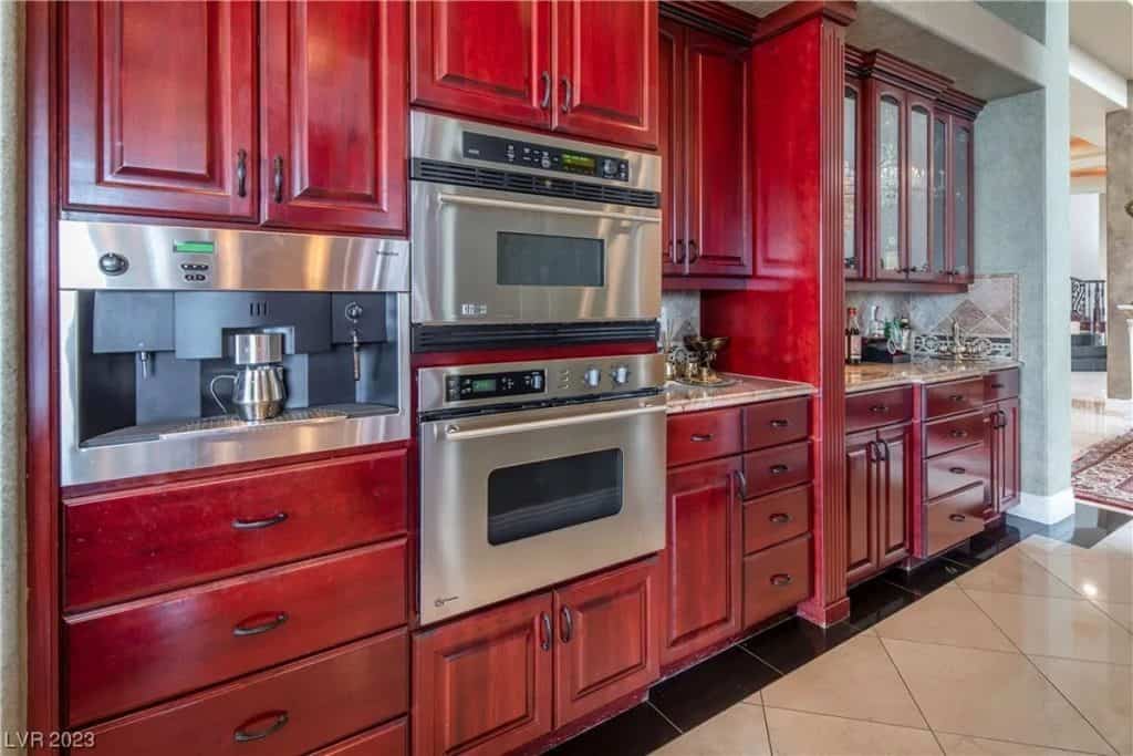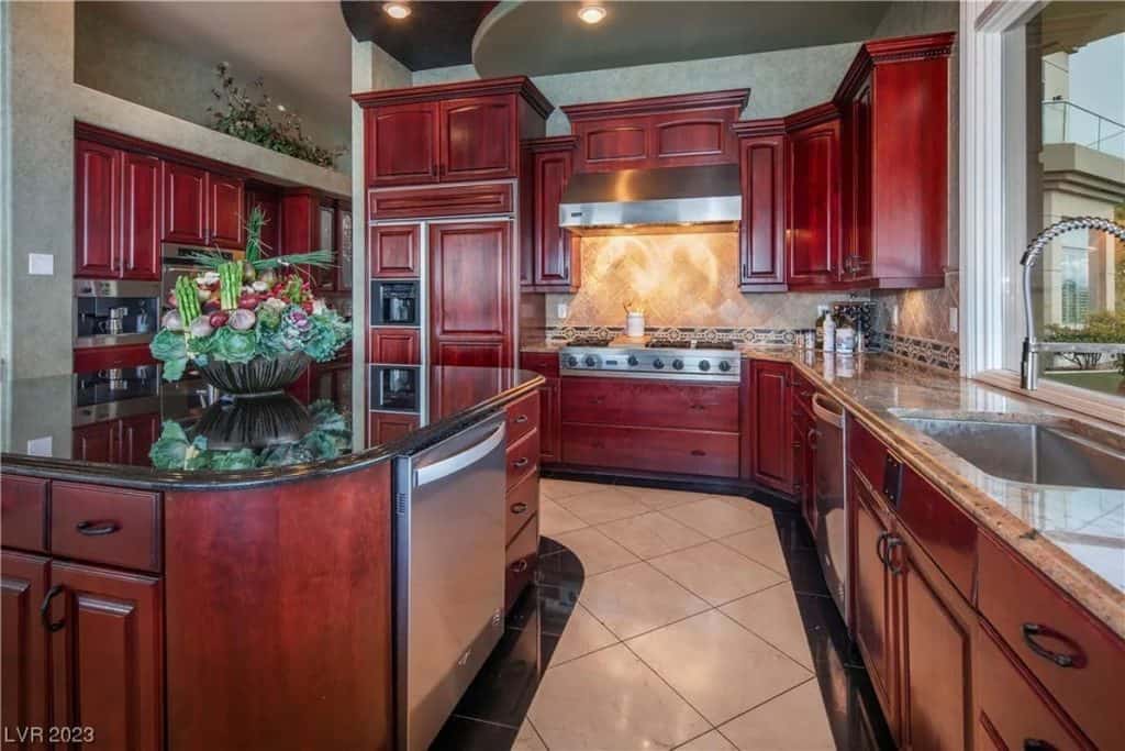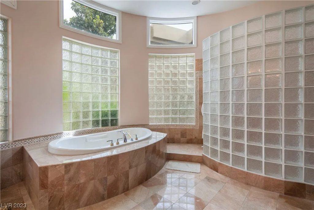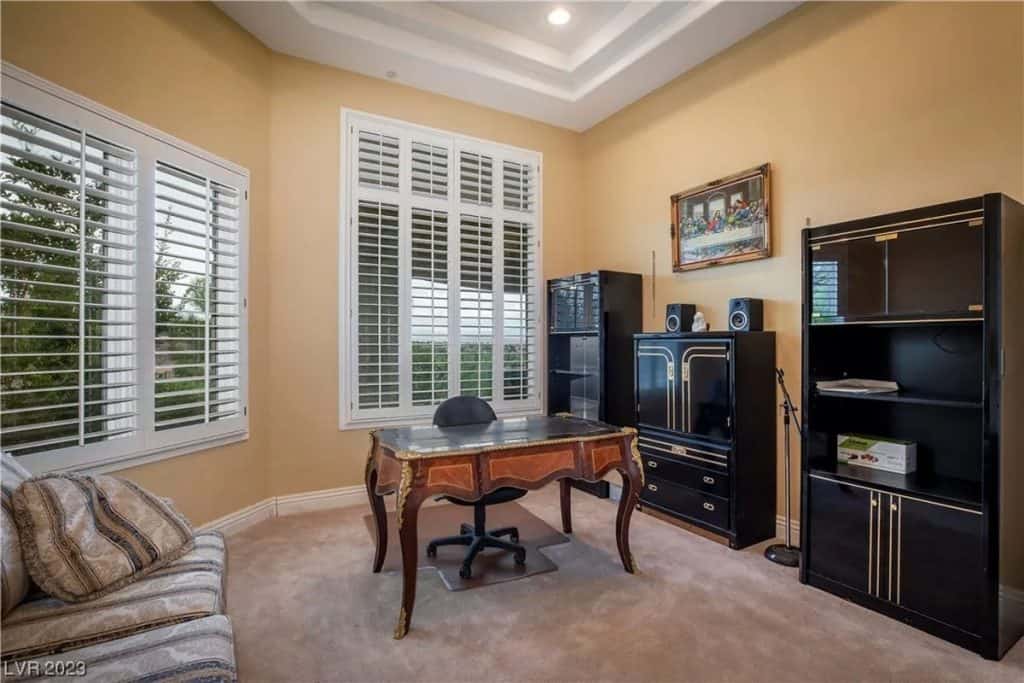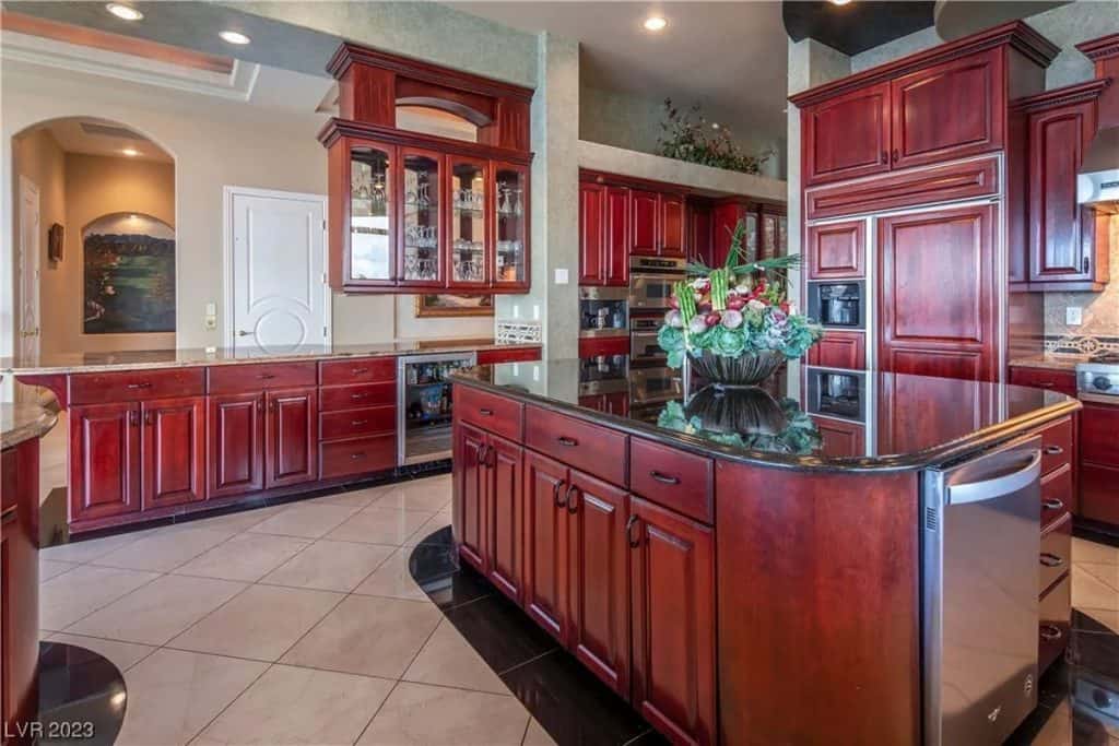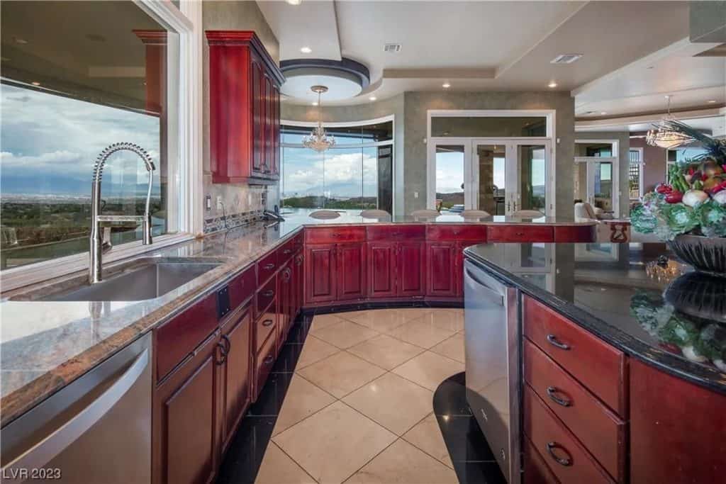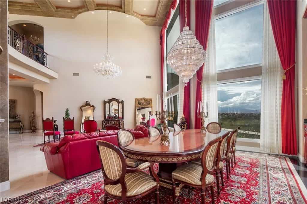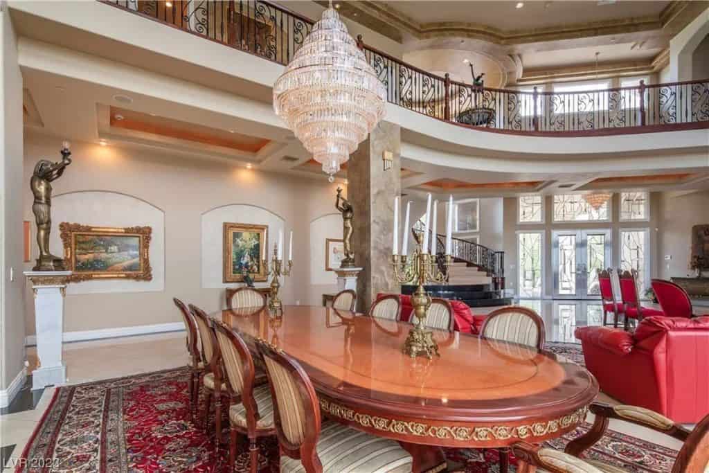 Perched on a 1.2 acre view lot above Anthem Country Club Golf Course, this trophy property offers breathtaking panoramic views of the valley, Strip, and Mountain ranges. Inside, you’ll find vaulted ceilings, a spiraling staircase, custom cherrywood, and curved glass nooks and balconies throughout. Step outside to the covered patios, outdoor kitchen and dining areas, and a custom tiled pool deck that overlooks the massive infinity edge pool, providing you with captivating views of the entire Las Vegas valley.