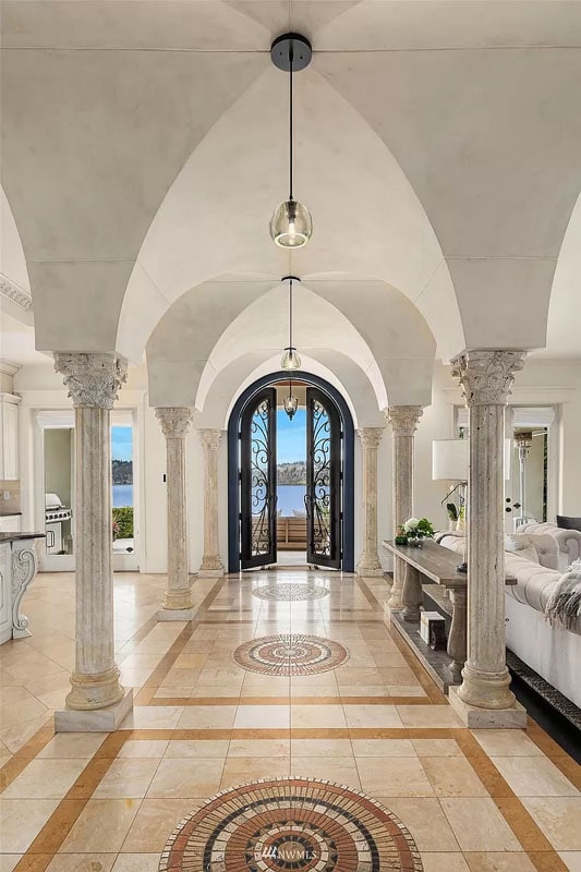 Prepare to be captivated by this exceptional waterfront estate that embodies the essence of luxury living. With its stunning design, elevated location, and awe-inspiring views, this property is a true masterpiece. Enjoy the serenity and privacy of the bluff-top setting, while also relishing in the excitement of beachside activities. Let’s delve into the details: The main level boasts panoramic 180° views, an impressive 20-ft tall entry rotunda, two elegant dining spaces, and a state-of-the-art kitchen featuring an 8-burner stove and a sprawling 14-ft prep island. Stay in shape with the convenience of a professional gym located just off the three-bay garage. Upstairs, you’ll find four luxurious en-suite bedrooms, two balconies, over 200 square feet of closet space, and a glamorous Hollywood-worthy glam room. The lower level offers a cozy bedroom, a cinema for movie nights, a dance/yoga studio for fitness enthusiasts, a three-story elevator for easy access, and three expansive play spaces. Step outside to discover three inviting patios, ample parking with twelve spots, a charming two-story treehouse, a three-slip dock, and two jet ski lifts. With 164′ of waterfront perfection, this property promises a champion’s life like no other.