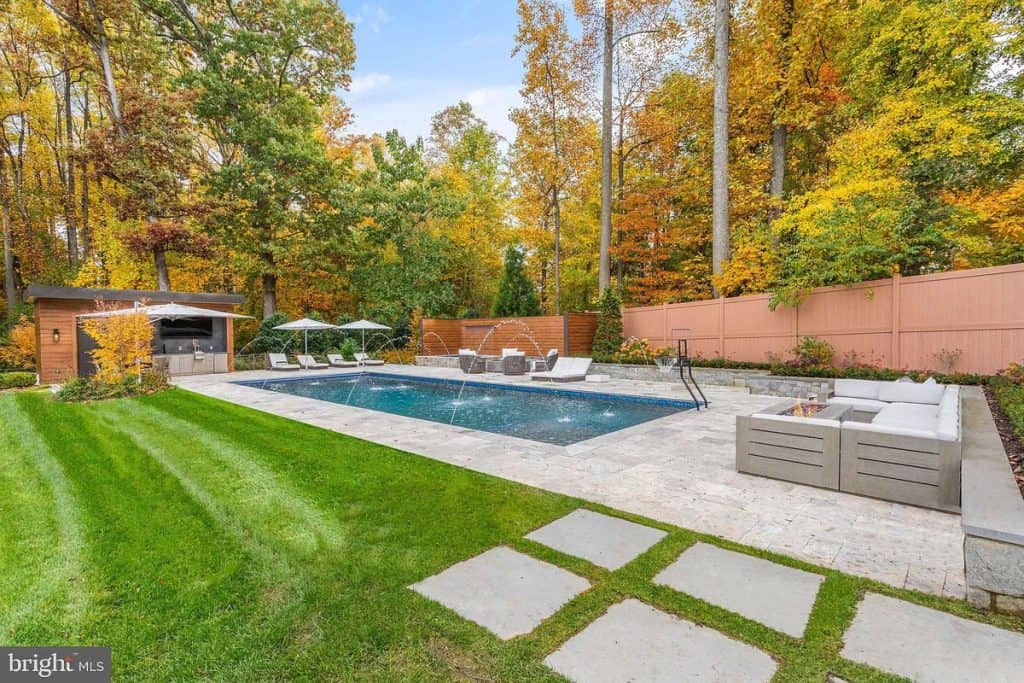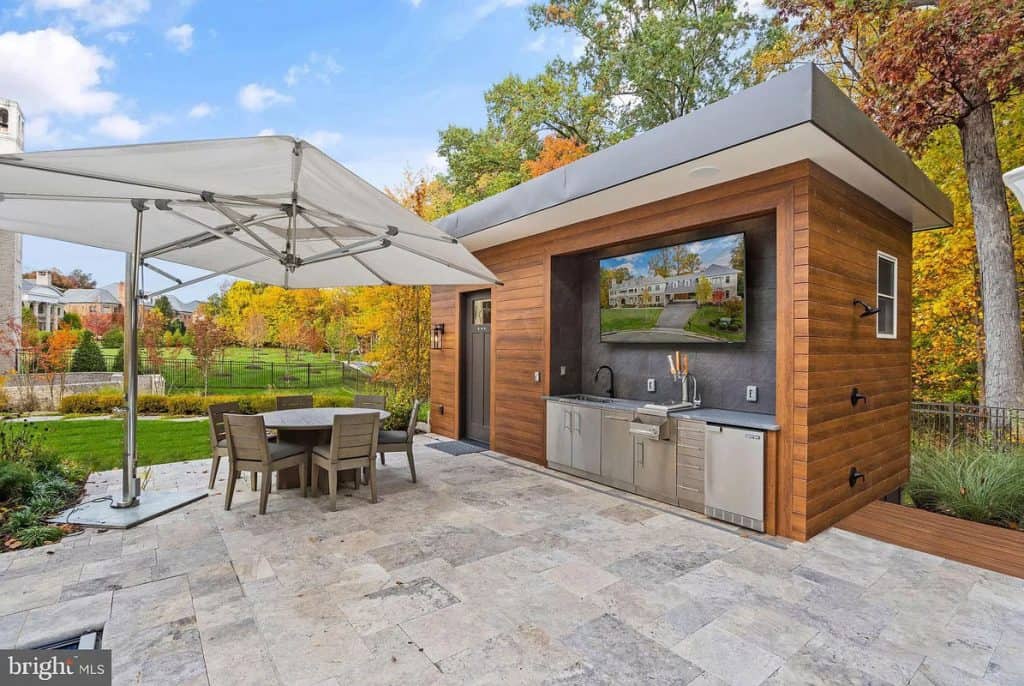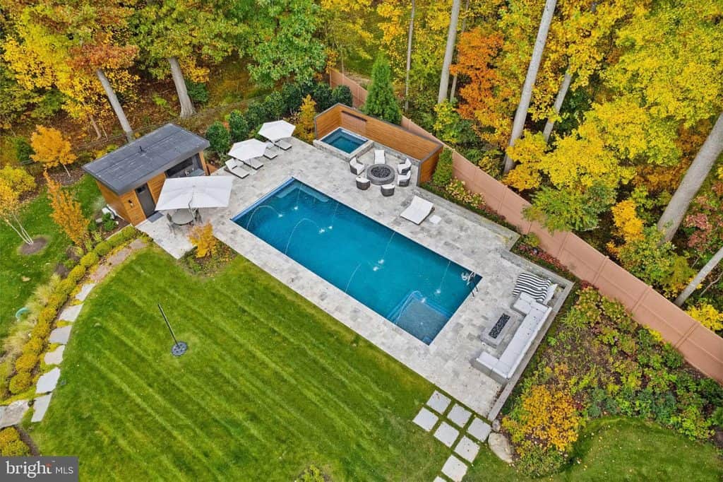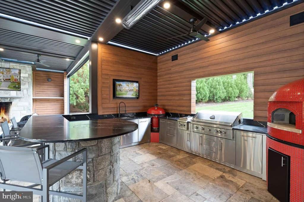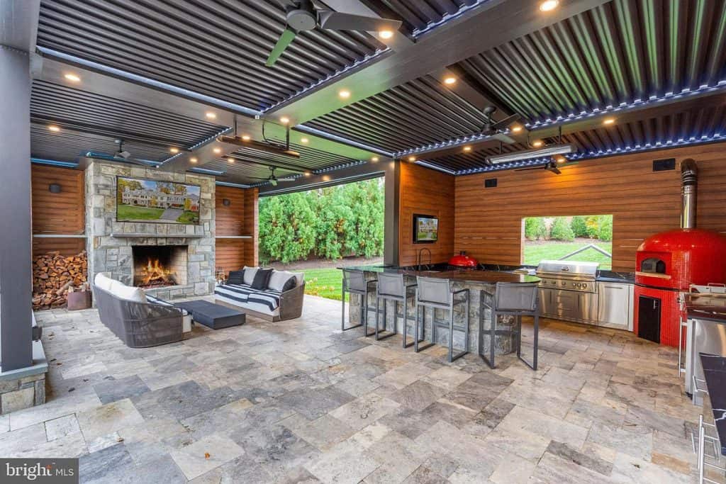 Keep up with your fitness routine without ever having to leave the comfort of your own home. The fully equipped in-home gym has state-of-the-art exercise equipment and plenty of space for yoga or pilates. It’s the ultimate convenience and luxury for your fitness needs. Experience the magic of the cinema right in your own living room with our fully equipped movie theater. It’s the perfect space for cozy movie nights with your loved ones. If you need a home office, we’ve got you covered. For wine enthusiasts, our spacious wine cellar is a dream come true. It’s the perfect place to store and showcase your extensive collection of fine wines. Whether you’re hosting a private tasting or simply enjoying a glass of your favorite vintage, this intimate space will impress even the most discerning connoisseurs. Gather around one of the four outdoor fireplaces or fire up the pizza oven in our outdoor kitchen for the perfect alfresco dining experience. Take a refreshing dip in the Olympic-sized pool or indulge in the bubbling spa, surrounded by beautiful landscaping and breathtaking views.