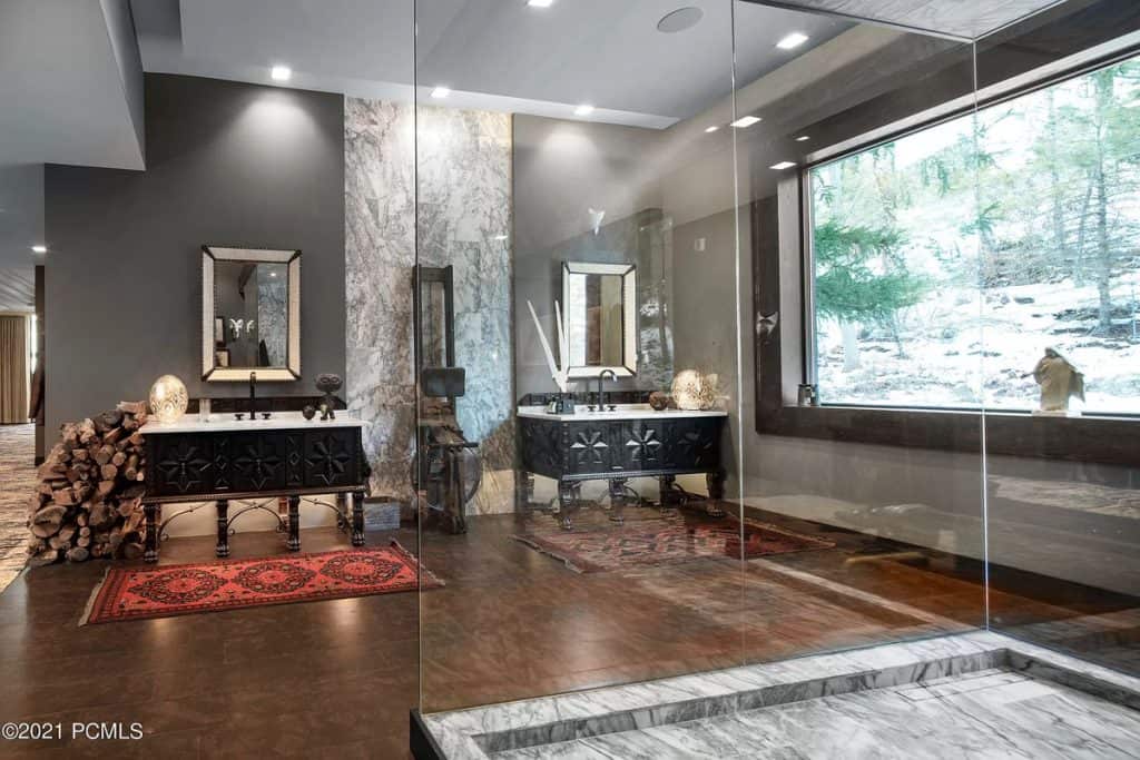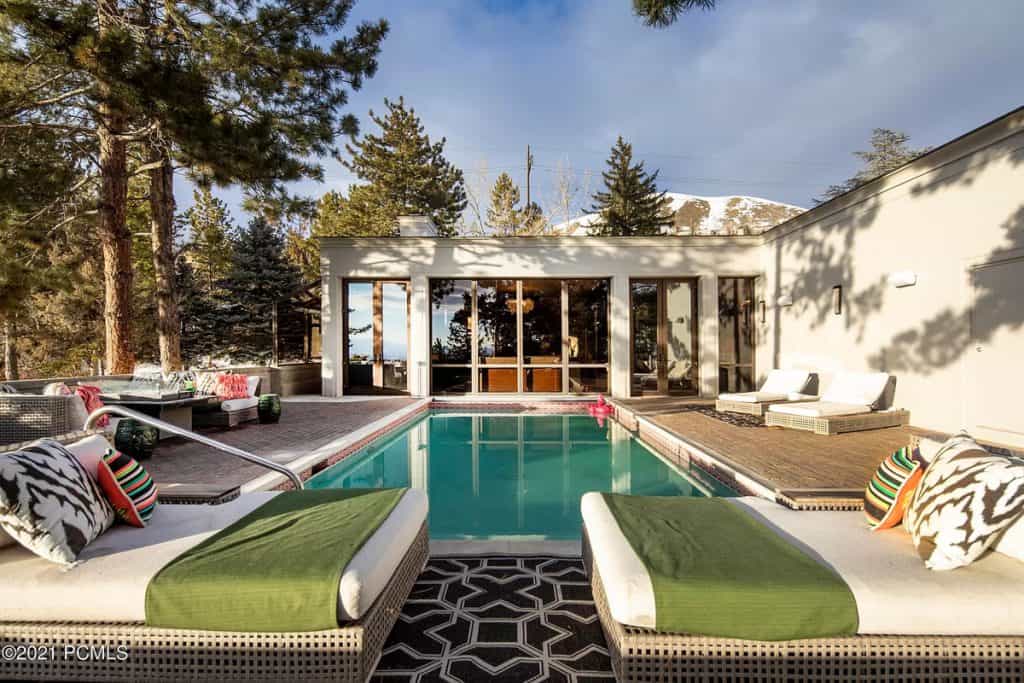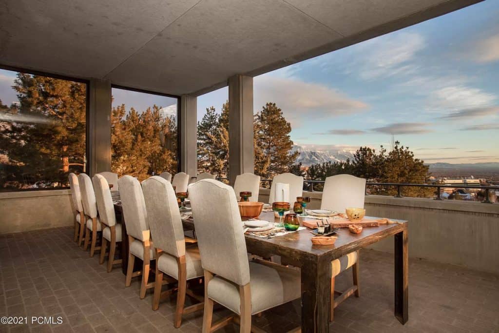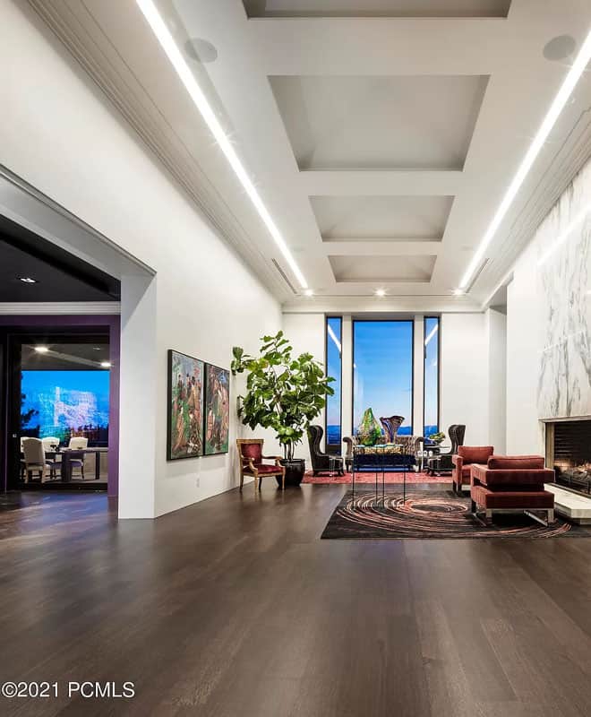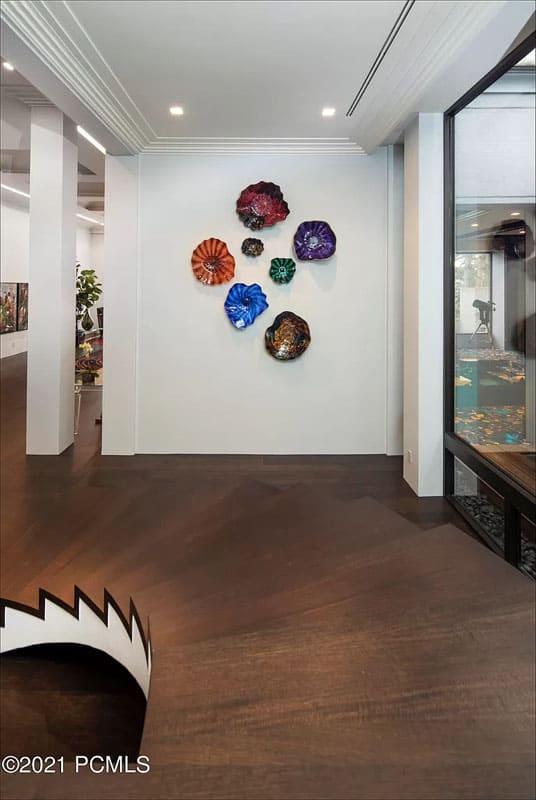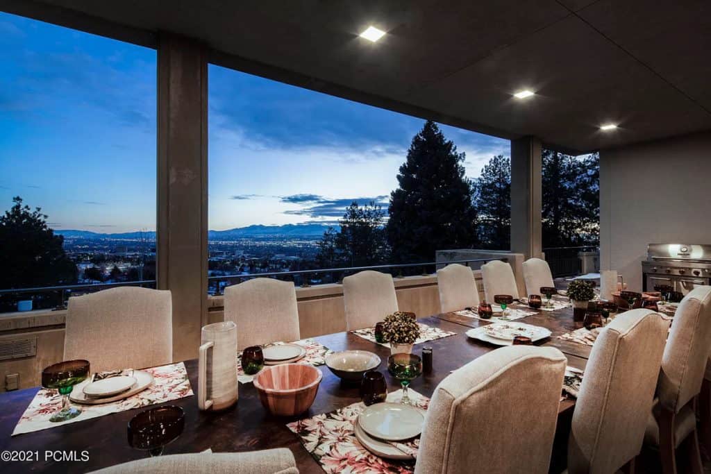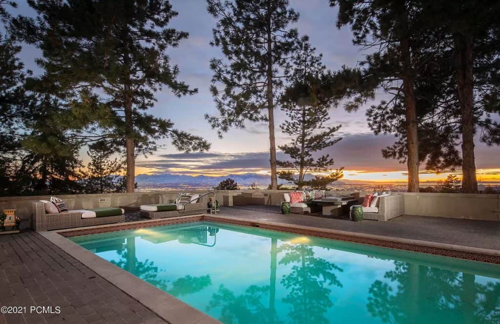 Discover a remarkable Utah estate that has just hit the market, nestled on nearly eight acres in the scenic foothills of Federal Heights. This expansive home spans almost 15,000 square feet and offers breathtaking, unobstructed views of the entire Salt Lake Valley from every angle. Step outside onto the 3,300 square feet of terraces that stretch along the southern side of the house, where you’ll find a stunning outdoor pool that can be enjoyed year-round. With its vast land and impressive residence, this estate stands as the largest individually-gated residential property in the northern part of the Salt Lake Valley. Architecturally, it exemplifies the timeless International Style, showcasing a fusion of concrete and glass. The floor-to-ceiling windows, reaching heights of up to 15 feet, perfectly frame the captivating vistas, while the ceilings soar up to 20 feet high. Recently renovated in early 2019, this home has been meticulously updated with numerous custom features. Among them are the exquisite rift-sawn, red oak flooring that spans nearly 5,000 square feet, as well as the use of rare marbles, onyx, and granite throughout. The home is adorned with 12 elegant chandeliers, adding a touch of grandeur to the space.