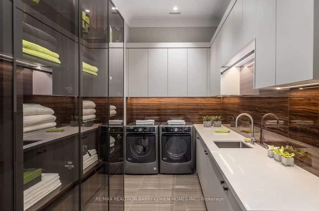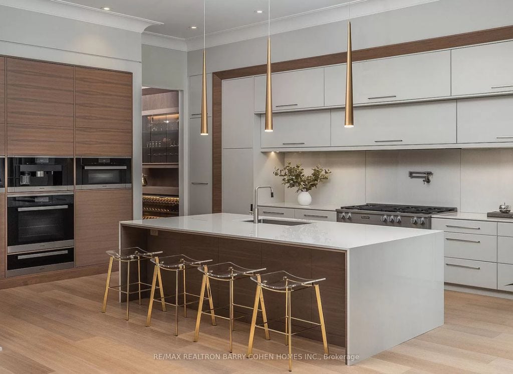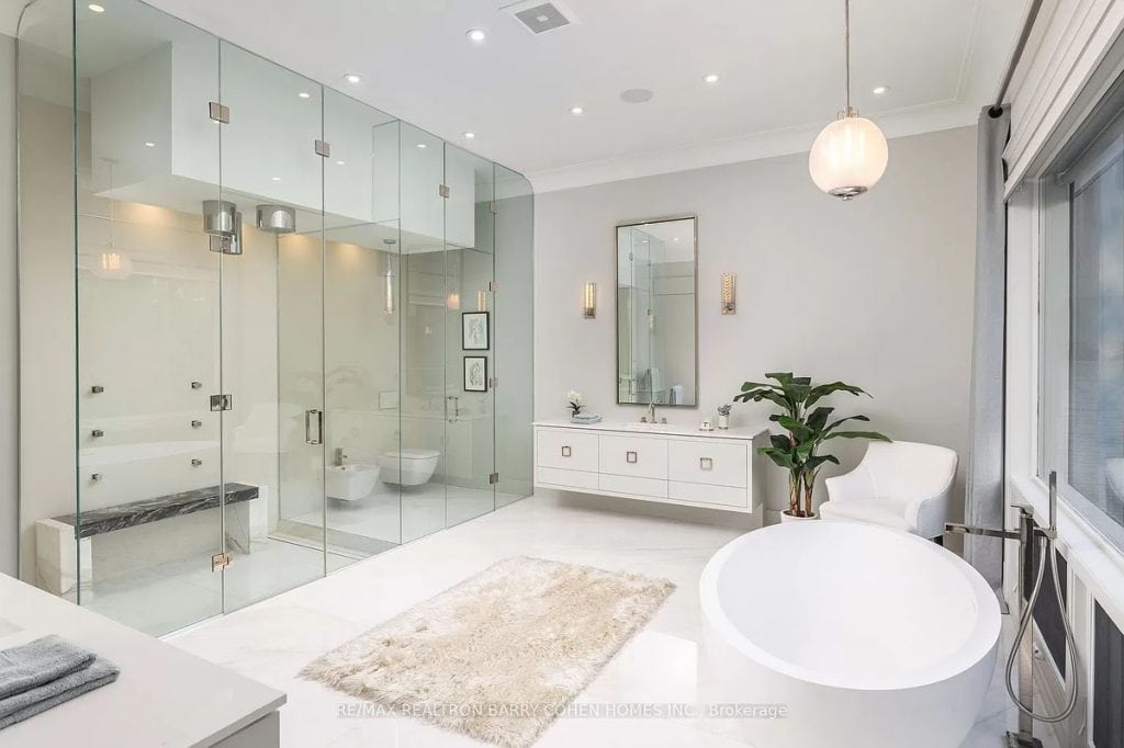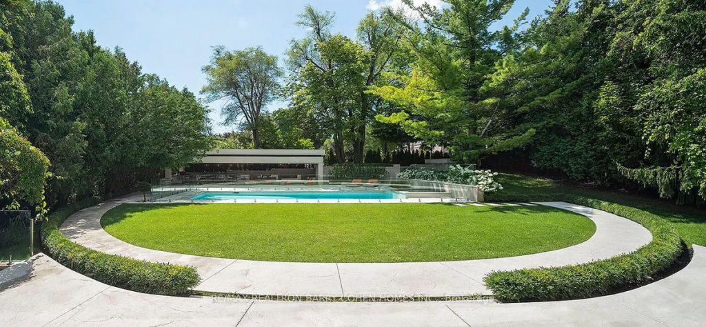 This home is a true architectural masterpiece that goes beyond all expectations of luxury. Located in one of Toronto’s most desirable neighborhoods, it boasts over 15,000 square feet of living space. The estate is filled with luxurious appointments and amenities, including European imported fixtures and impeccable craftsmanship. Natural light floods the space, highlighting the high 12′ and 13′ ceilings and heated Italian porcelain slab flooring. The walnut hardwood floors add a touch of warmth to the space. With 5+1 bedrooms, 10 bathrooms, and a nanny’s quarters, there is plenty of space for everyone. The primary retreat is a stunning 2,000 square feet with a walk-in dressing room and a luxurious ensuite bathroom. The home also features a wine cellar, a health and fitness spa, a home entertainment room, and a theater room. There is even potential for a 10-car garage. The exterior of the home is just as impressive as the interior, with a pool and cabana that rival those of high-end resorts.