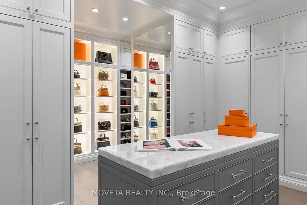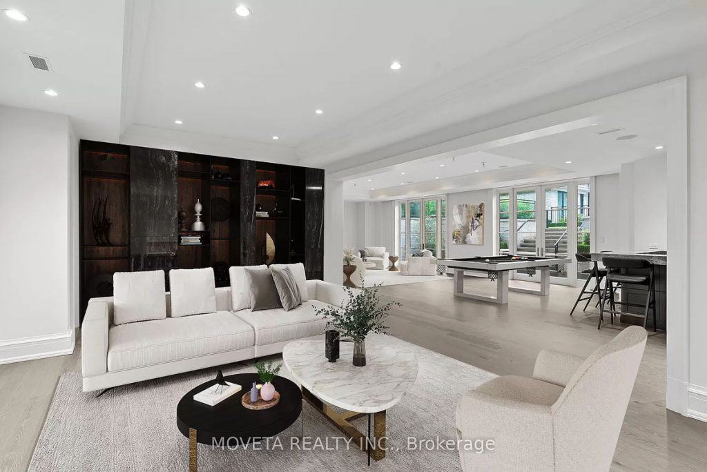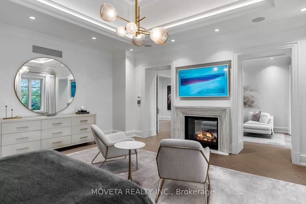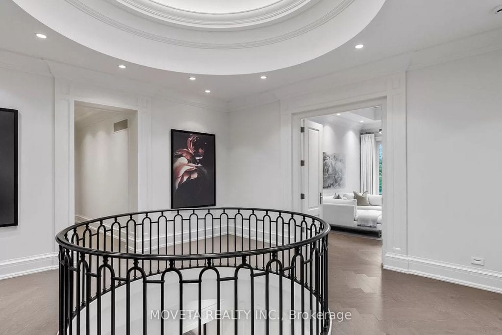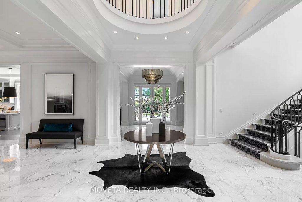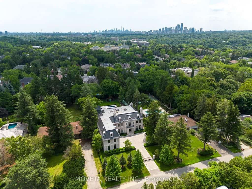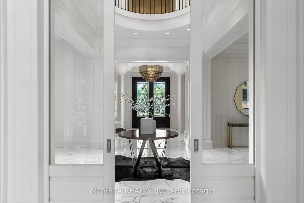 This exceptional move-in ready home is located in a gated estate on a sunny south-facing lot. Situated in an exclusive cul-de-sac in the prestigious Bridle Path neighborhood, this property boasts 15,583 sqft of meticulously crafted living space. The grand cathedral skylight and open plan with soaring ceilings flood the interior with natural light. Throughout the home, you’ll find herringbone hardwood and Italian Statuario marble floors. The chef’s kitchen and family room open to a covered outdoor living room. The primary bedroom is palatial, featuring a living room, double-sided fireplace, and terrace. The spa-like ensuite includes a cast iron tub and oversized steam shower. The second level offers a media room, while the third floor features a loft. The walk-out lower level includes a wine cellar, game room, cigar lounge, gym, massage room, sauna, salon, and private nanny quarters. Outside, the meticulously manicured grounds showcase a stunning concrete pool and spa, an outdoor kitchen with a built-in gas BBQ and wood-burning pizza oven. The guest house features wall-to-wall bi-folding doors, heated floors, vaulted ceilings, a bathroom, bedroom, kitchen, and living space. This property is truly one of a kind.
