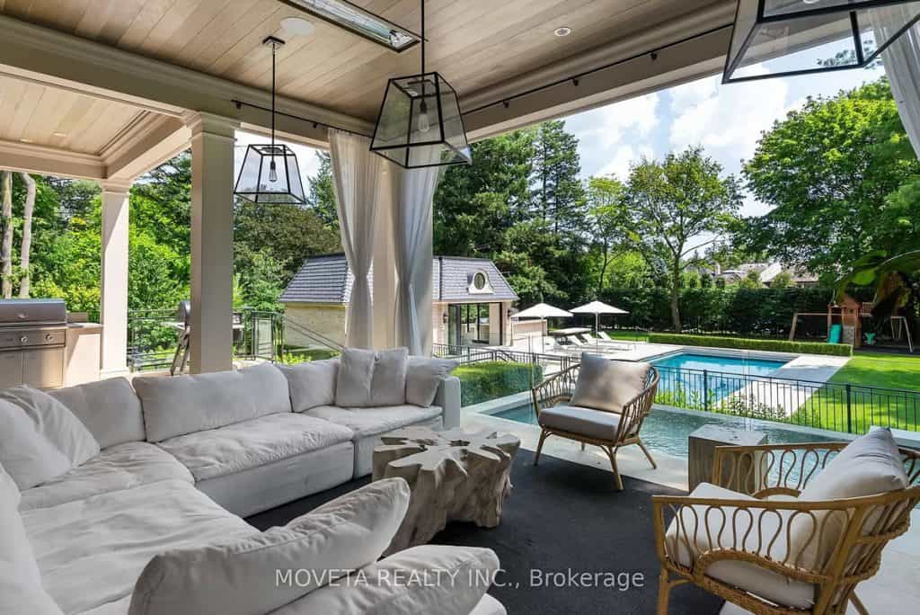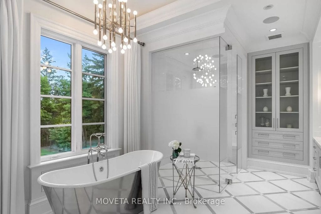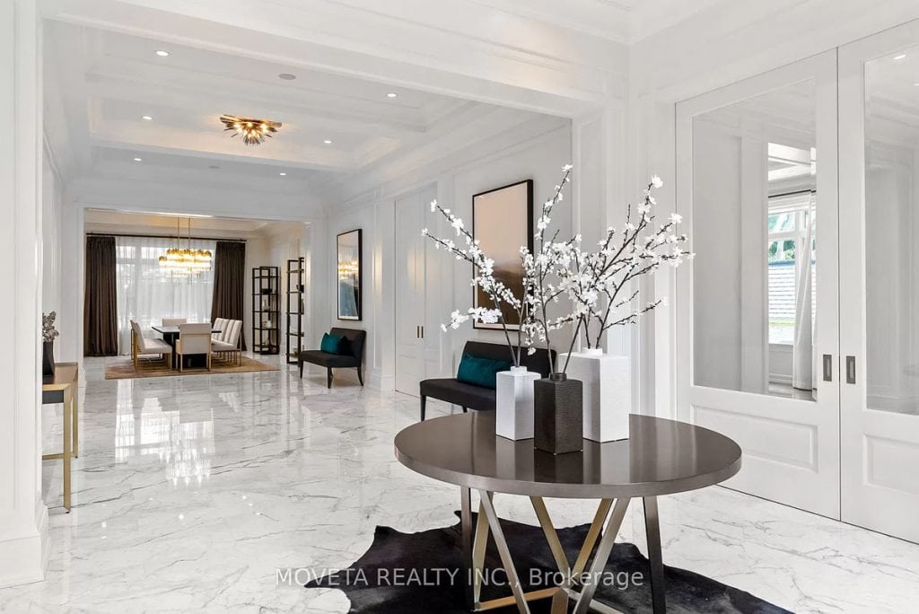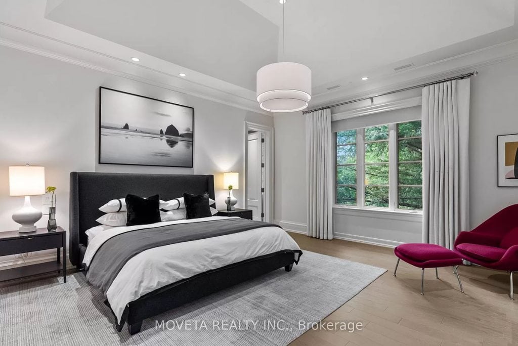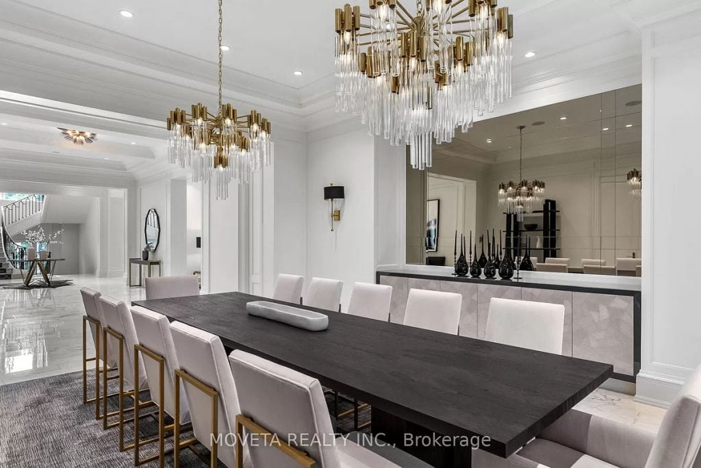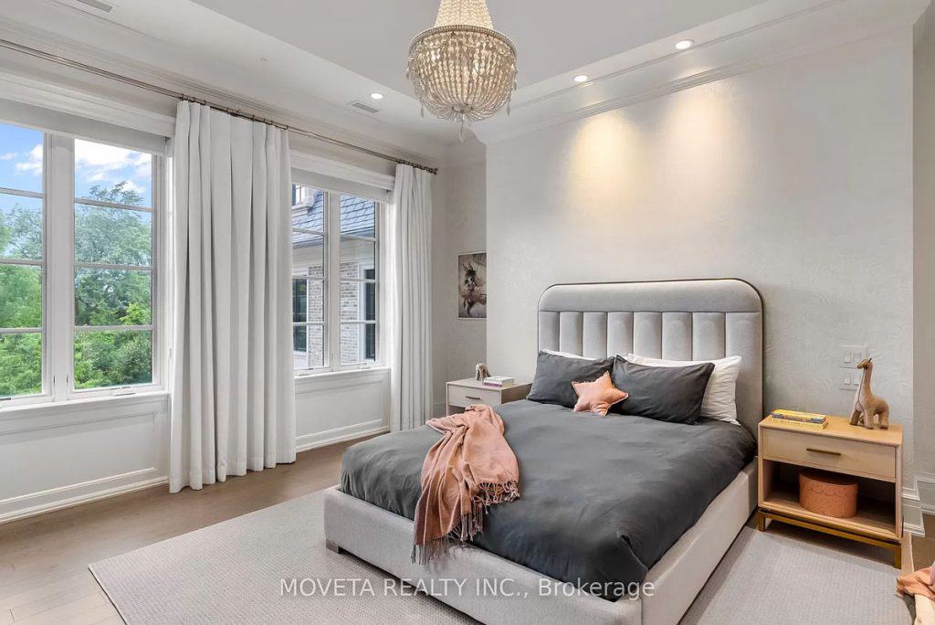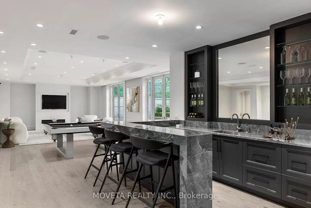 This exceptional move-in ready home is located in a gated estate on a sunny south-facing lot. Situated in an exclusive cul-de-sac in the prestigious Bridle Path neighborhood, this property boasts 15,583 sqft of meticulously crafted living space. The grand cathedral skylight and open plan with soaring ceilings flood the interior with natural light. Throughout the home, you’ll find herringbone hardwood and Italian Statuario marble floors. The chef’s kitchen and family room open to a covered outdoor living room. The primary bedroom is palatial, featuring a living room, double-sided fireplace, and terrace. The spa-like ensuite includes a cast iron tub and oversized steam shower. The second level offers a media room, while the third floor features a loft. The walk-out lower level includes a wine cellar, game room, cigar lounge, gym, massage room, sauna, salon, and private nanny quarters. Outside, the meticulously manicured grounds showcase a stunning concrete pool and spa, an outdoor kitchen with a built-in gas BBQ and wood-burning pizza oven. The guest house features wall-to-wall bi-folding doors, heated floors, vaulted ceilings, a bathroom, bedroom, kitchen, and living space. This property is truly one of a kind.
