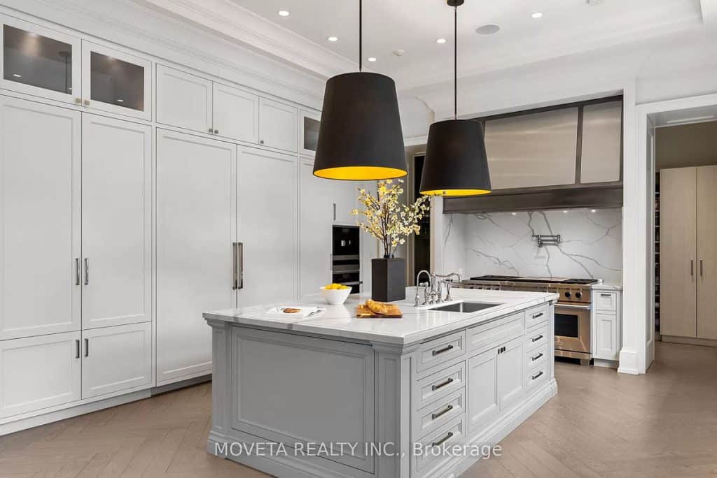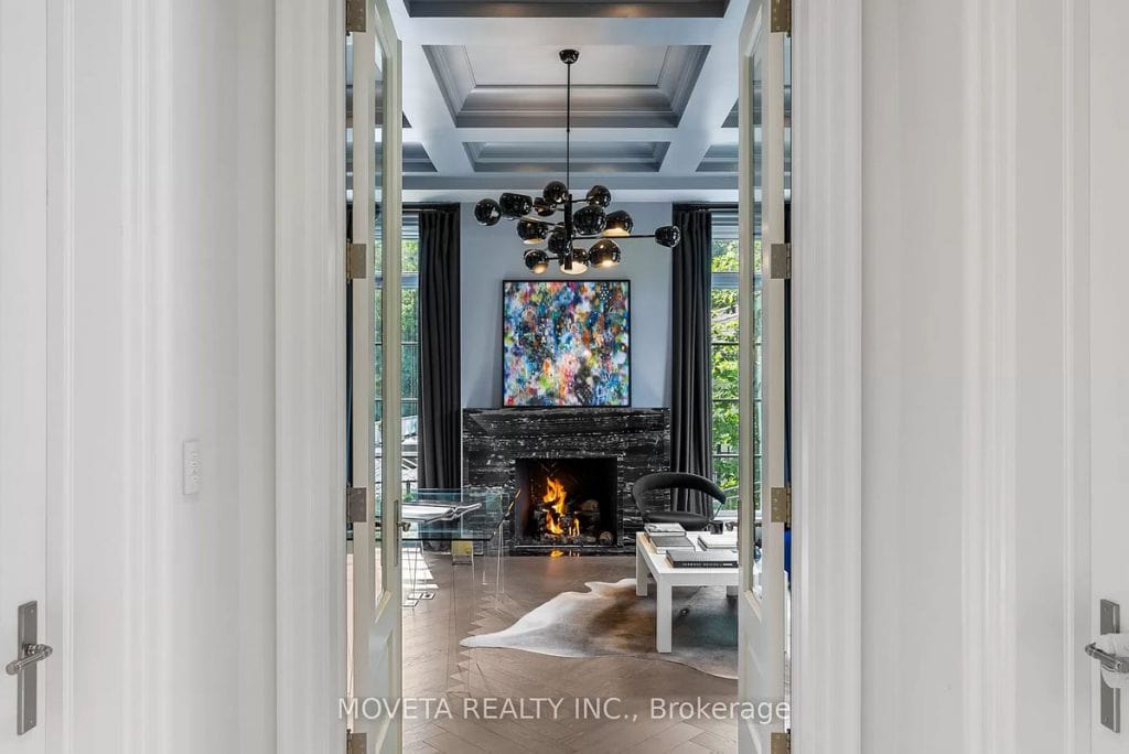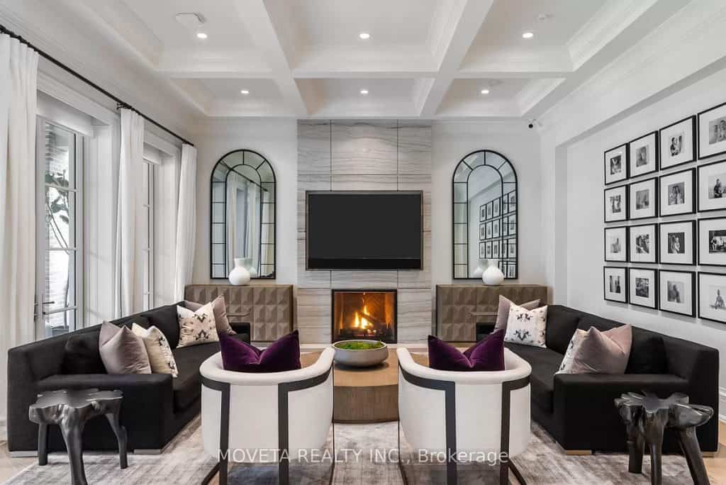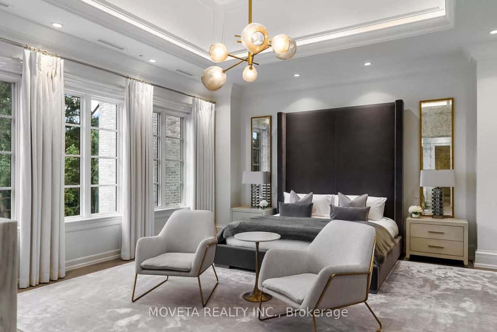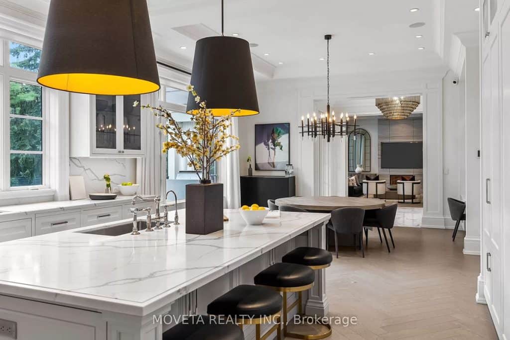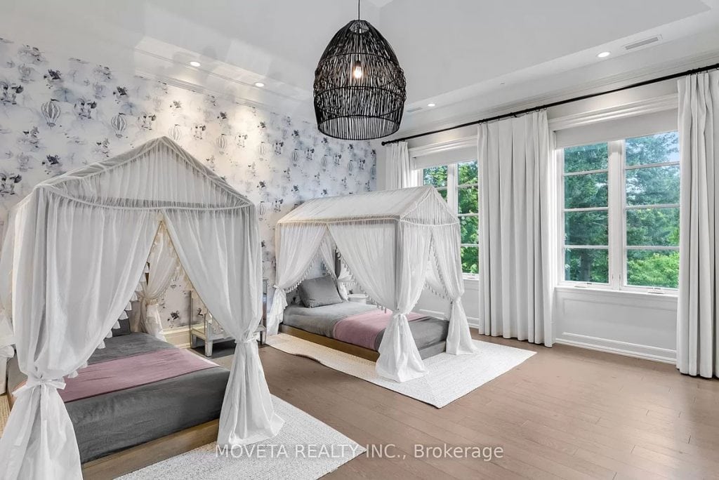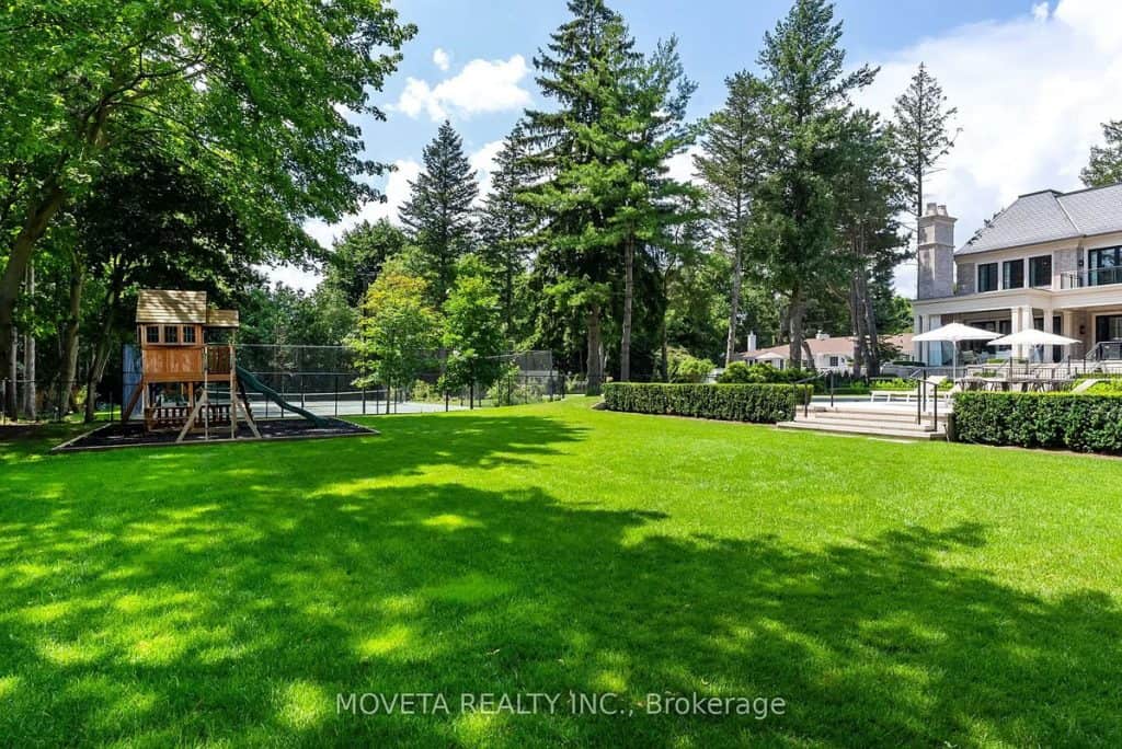 This exceptional move-in ready home is located in a gated estate on a sunny south-facing lot. Situated in an exclusive cul-de-sac in the prestigious Bridle Path neighborhood, this property boasts 15,583 sqft of meticulously crafted living space. The grand cathedral skylight and open plan with soaring ceilings flood the interior with natural light. Throughout the home, you’ll find herringbone hardwood and Italian Statuario marble floors. The chef’s kitchen and family room open to a covered outdoor living room. The primary bedroom is palatial, featuring a living room, double-sided fireplace, and terrace. The spa-like ensuite includes a cast iron tub and oversized steam shower. The second level offers a media room, while the third floor features a loft. The walk-out lower level includes a wine cellar, game room, cigar lounge, gym, massage room, sauna, salon, and private nanny quarters. Outside, the meticulously manicured grounds showcase a stunning concrete pool and spa, an outdoor kitchen with a built-in gas BBQ and wood-burning pizza oven. The guest house features wall-to-wall bi-folding doors, heated floors, vaulted ceilings, a bathroom, bedroom, kitchen, and living space. This property is truly one of a kind.