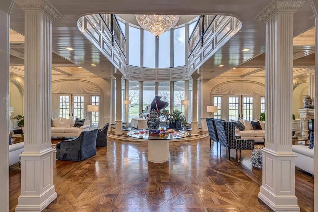 Welcome to your own private retreat situated on more than 62 acres of beautiful land, showcasing a magnificent 31,000 Sq Ft estate filled with top-notch amenities. Surrounded by some of the most prestigious horse farms in the world. A sprawling 17,000 sqft main residence that radiates sophistication and luxury. – Meticulously designed with the finest materials, boasting spacious living areas, high ceilings, and exquisite finishes. – Private office, library, gym, and media room offer plenty of space for work, relaxation, and entertainment. Pool House: – A luxurious 13,000 sqft pool house designed for upscale living and entertainment. – Enjoy a resort-style swimming pool, spa, and lounging areas for a tranquil retreat. Guest Quarters: – Quaint 1,500 sqft guest quarters providing cozy accommodations for visitors or staff. Equestrian Facilities: – A top-tier horse farm featuring an 18-stall barn and ample pasture space, creating a haven for equestrian enthusiasts.