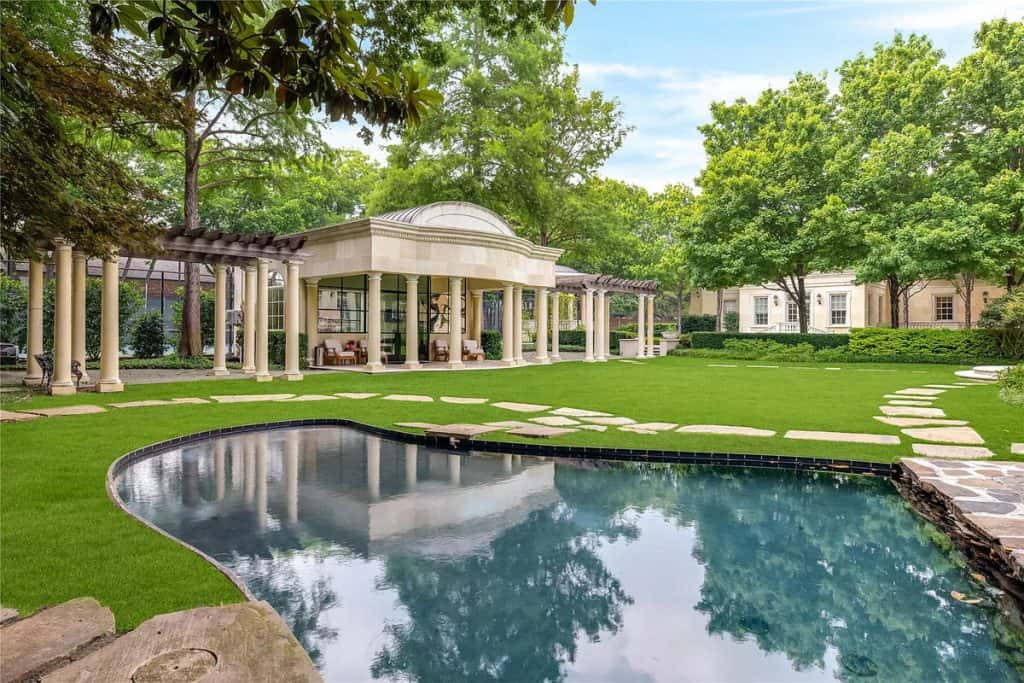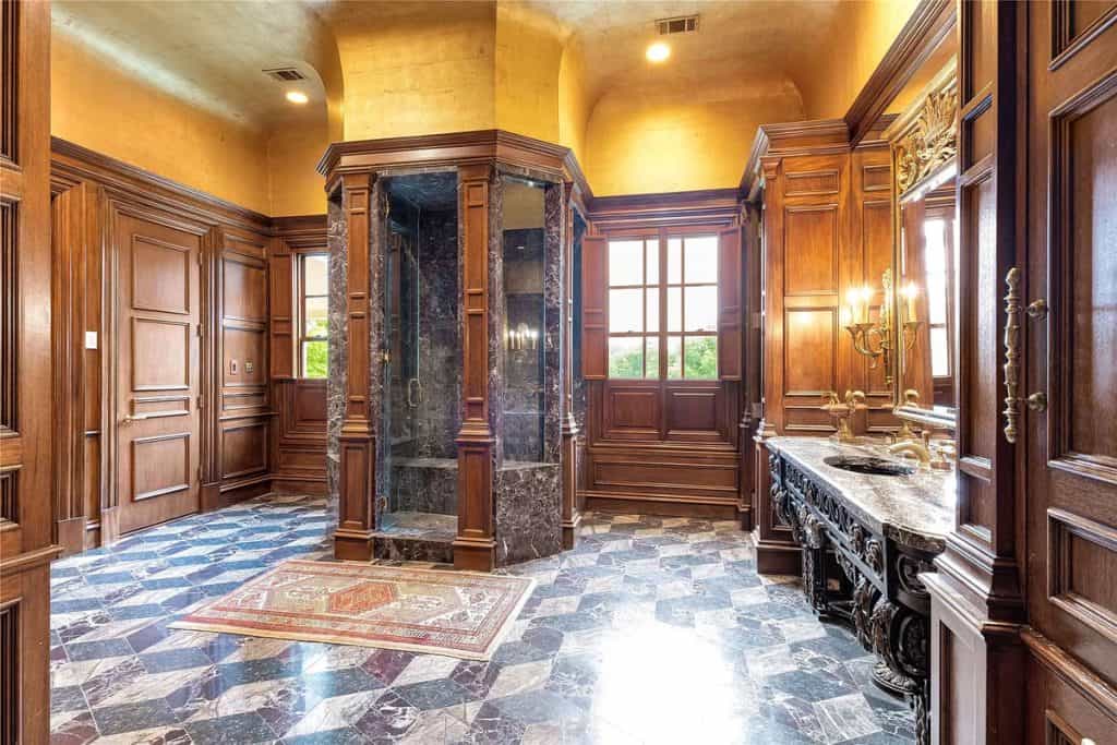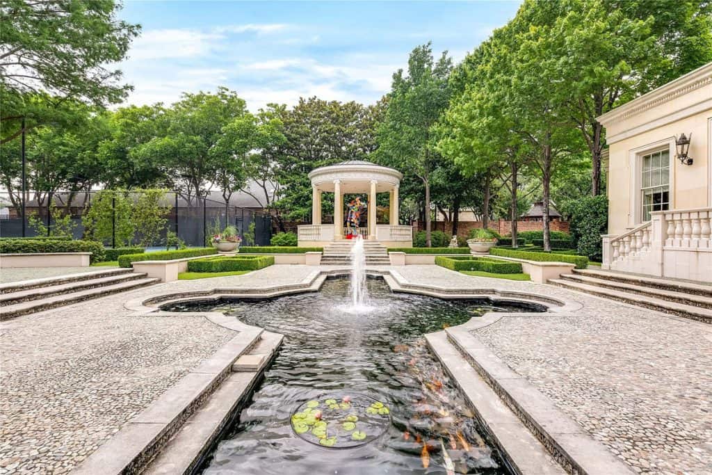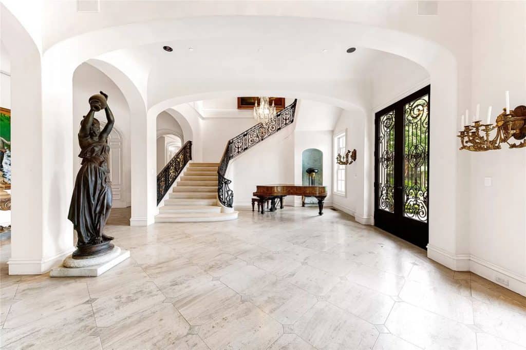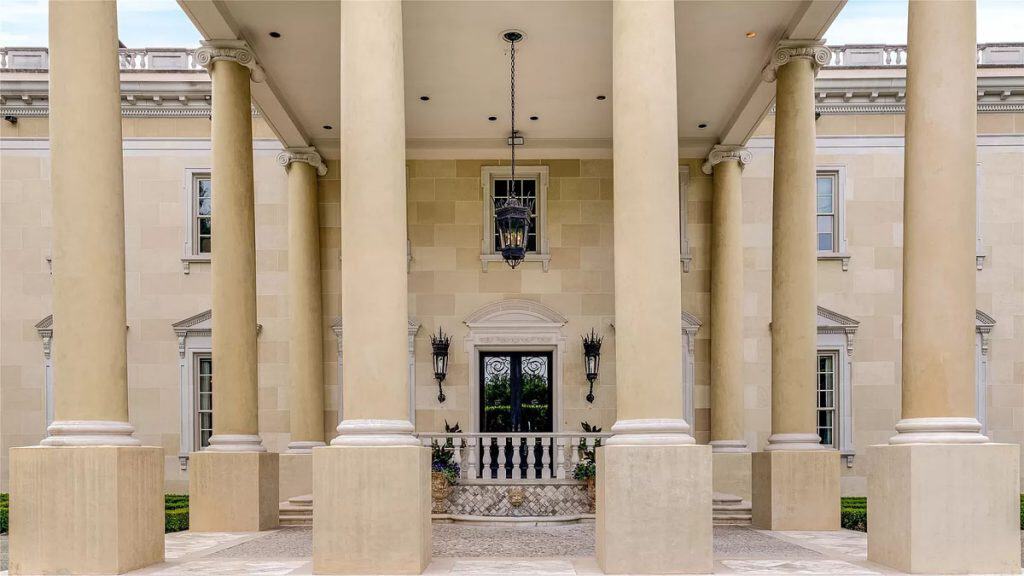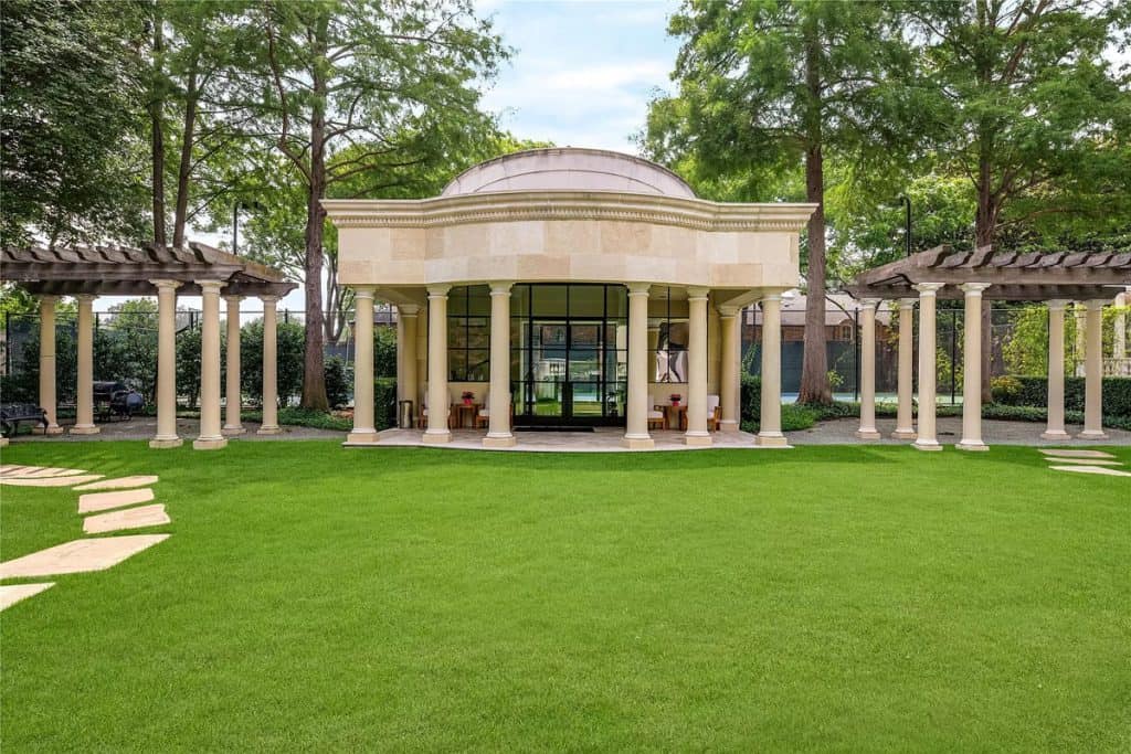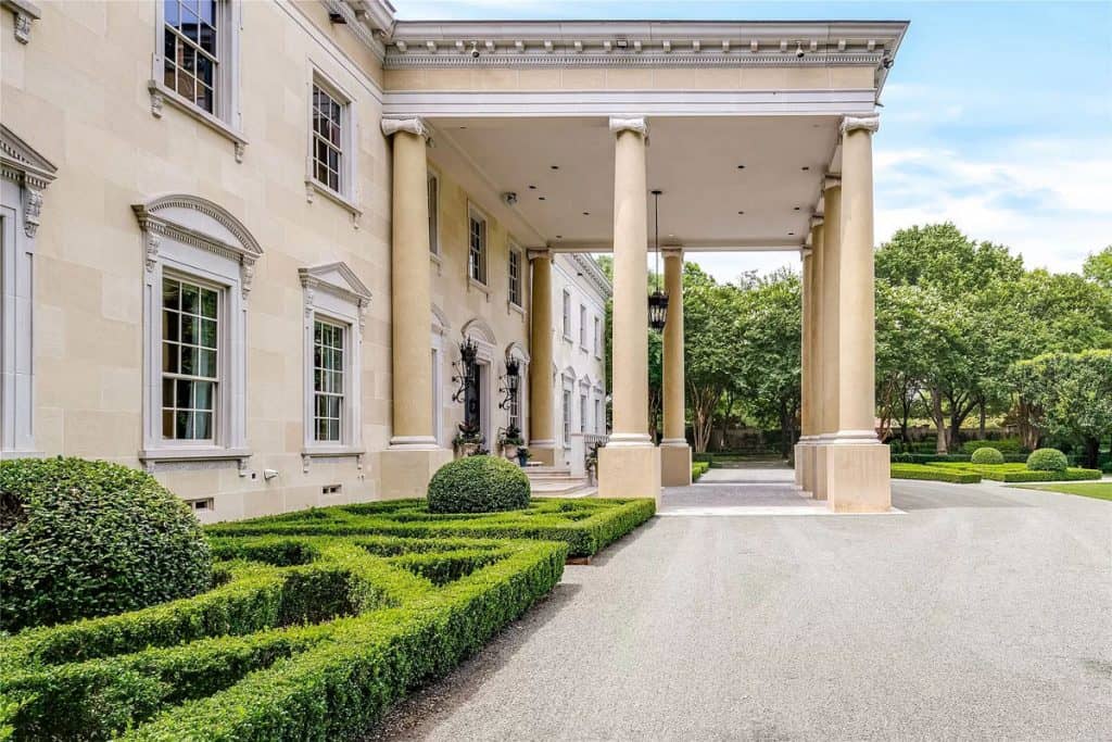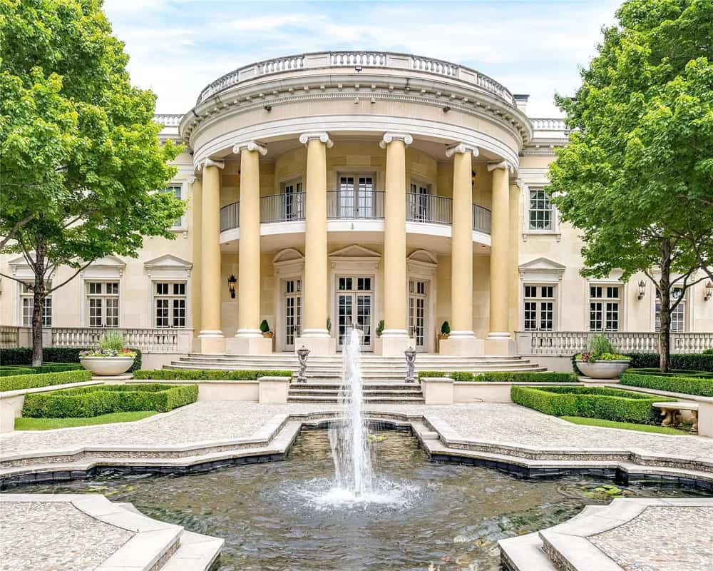 This 3.3-acre estate on prestigious Strait Ln boasts stately elegance with a Palladian Neoclassical home. Imported marble, French limestone, and hardwood floors grace the interiors with soaring 14’ ceilings on both levels. Venetian plaster walls, imported antique fireplaces, and exotic materials adorn every room. A bar with a burled walnut coffered ceiling is next to a vaulted brick wine cellar. The kitchen and breakfast room feature groin vaulted ceilings and a gothic hearth. Upstairs, a movie theater inspired by a Parisian opera house offers seating for 22 and a bar. The master suite is fit for royalty with 2 fireplaces, sitting room, his & her baths, sauna, and steam shower. Formal gardens by Harold Leidner lead to naturalistic spaces and a two-level pool. Luxurious guest suites, tennis court, exercise room, water features, putting green, and sculpture gardens complete this unique property.