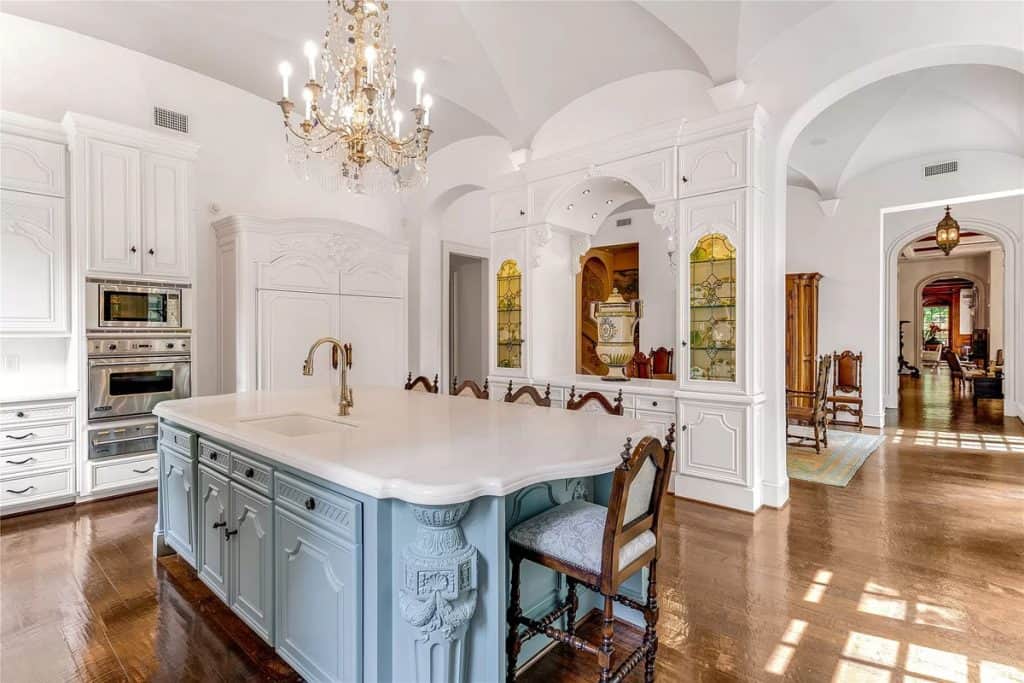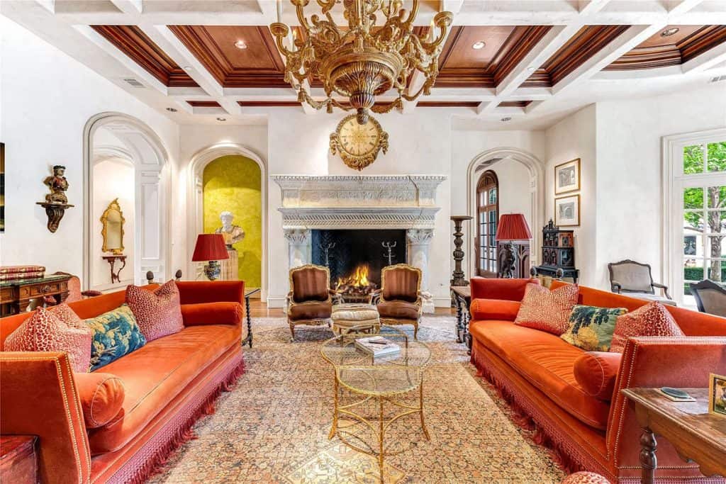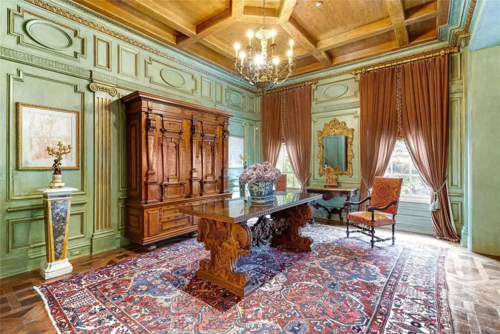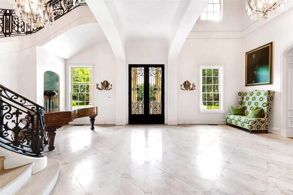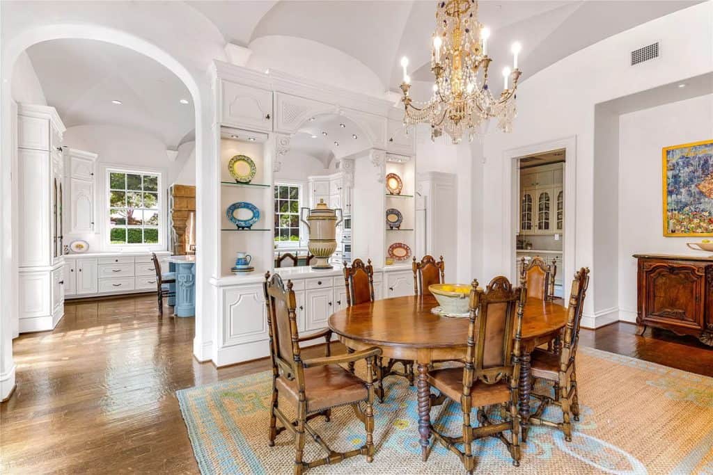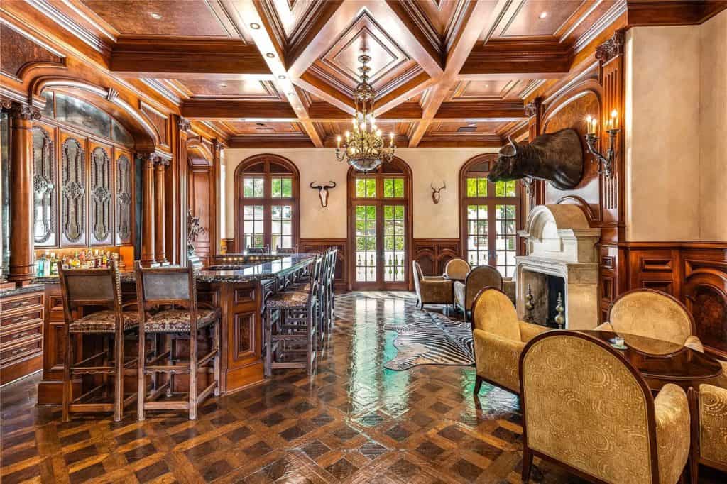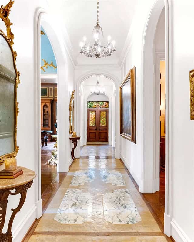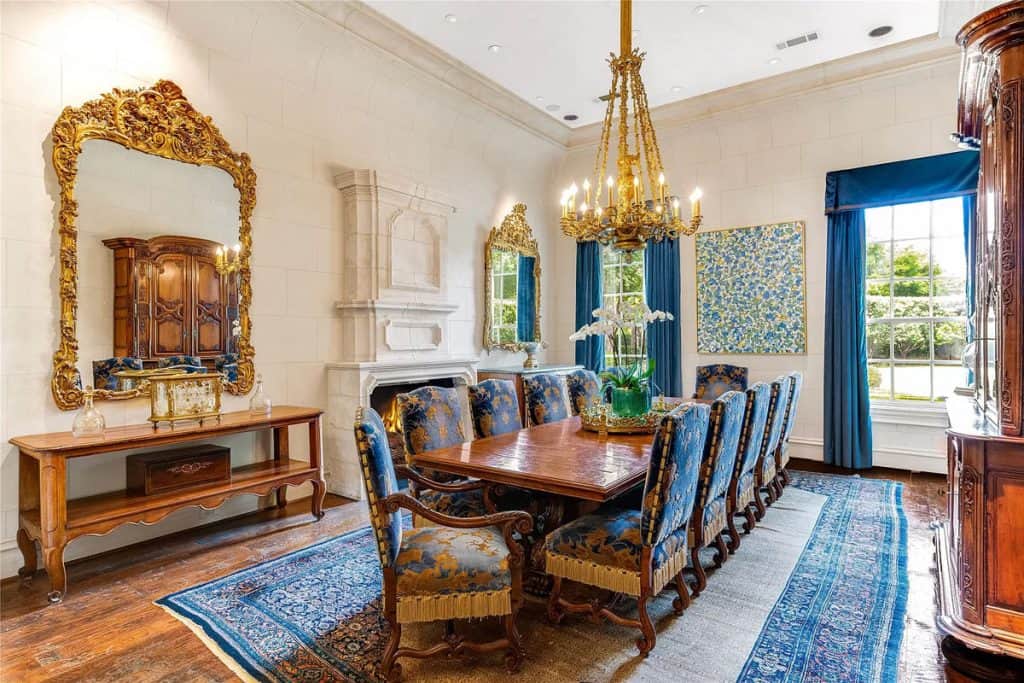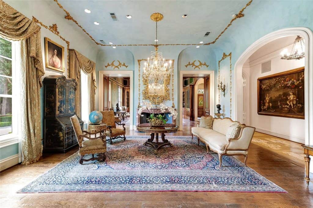 This 3.3-acre estate on prestigious Strait Ln boasts stately elegance with a Palladian Neoclassical home. Imported marble, French limestone, and hardwood floors grace the interiors with soaring 14’ ceilings on both levels. Venetian plaster walls, imported antique fireplaces, and exotic materials adorn every room. A bar with a burled walnut coffered ceiling is next to a vaulted brick wine cellar. The kitchen and breakfast room feature groin vaulted ceilings and a gothic hearth. Upstairs, a movie theater inspired by a Parisian opera house offers seating for 22 and a bar. The master suite is fit for royalty with 2 fireplaces, sitting room, his & her baths, sauna, and steam shower. Formal gardens by Harold Leidner lead to naturalistic spaces and a two-level pool. Luxurious guest suites, tennis court, exercise room, water features, putting green, and sculpture gardens complete this unique property.