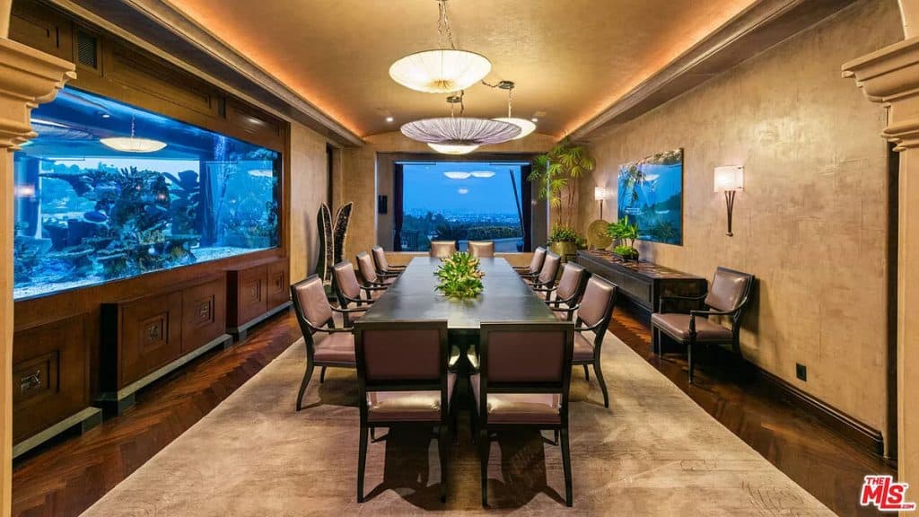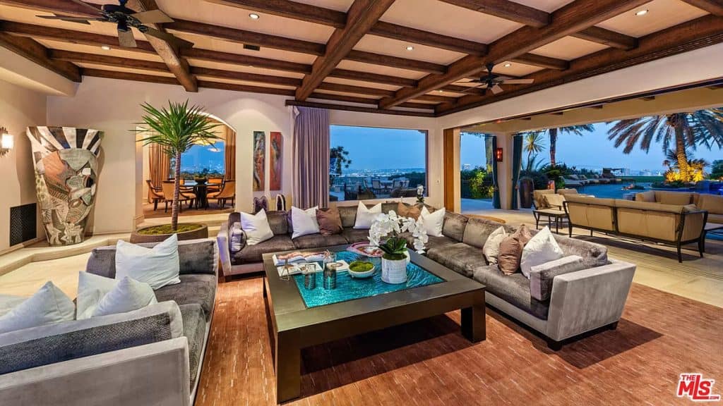 This magnificent Cielo Estate is the epitome of luxury living in Beverly Hills. Behind its grand double gates and stone motor court, you’ll find a palatial masterpiece exuding opulence. Spanning over 21,000 square feet on 3.6 acres, this Andalusian-style estate offers unparalleled luxury in the most coveted zip code in the world. With 9 bedrooms and 18 bathrooms, it’s designed for exquisite living and entertaining on a grand scale. Step inside through the impressive front doors into the two-story foyer with a stunning custom staircase and dome ceiling. The estate features a detached guest house, spacious living areas, and an array of amenities that showcase breathtaking city and ocean views. From a movie theatre and spa to a gym, hair salon, billiards room, and bar, every detail has been carefully crafted for ultimate indulgence. Outside, you’ll discover a truly extraordinary outdoor space. Surrounded by stunning views, lush greenery, and meticulously landscaped gardens, it’s a paradise like no other. The highlight is a 75-yard pool with three waterfalls, two jacuzzis, and a thrilling 35-foot water slide. There’s also a swim-up bar, private grotto, koi pond, lazy river, multiple lounge areas, cabana, fire features, and a BBQ area. It’s a dream come true for any entertainer. And if you’re a car enthusiast, you’ll appreciate the underground garage that can accommodate up to 16 cars, with space for an additional 35 cars on the estate. The Cielo Estate truly represents the pinnacle of world-class luxury living in Beverly Hills.