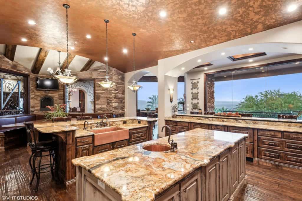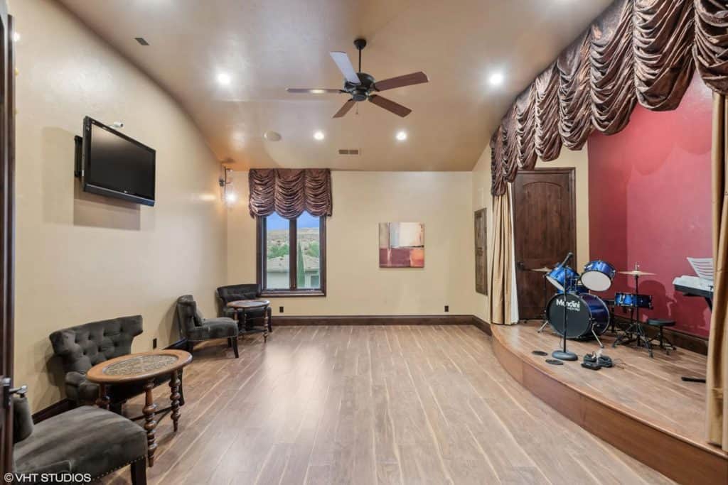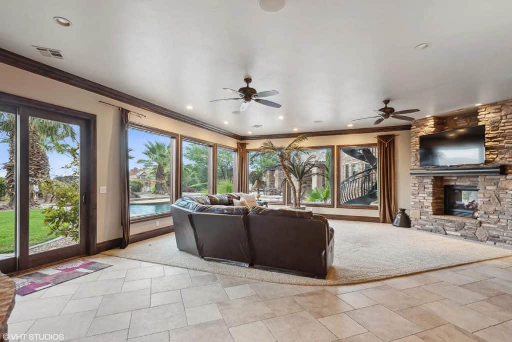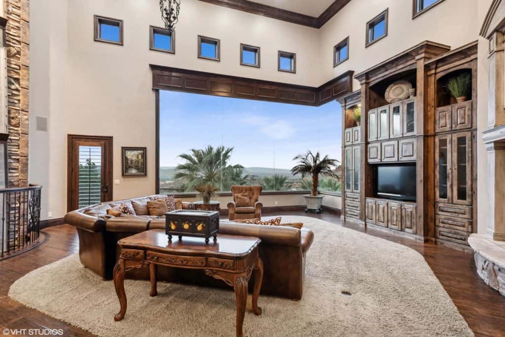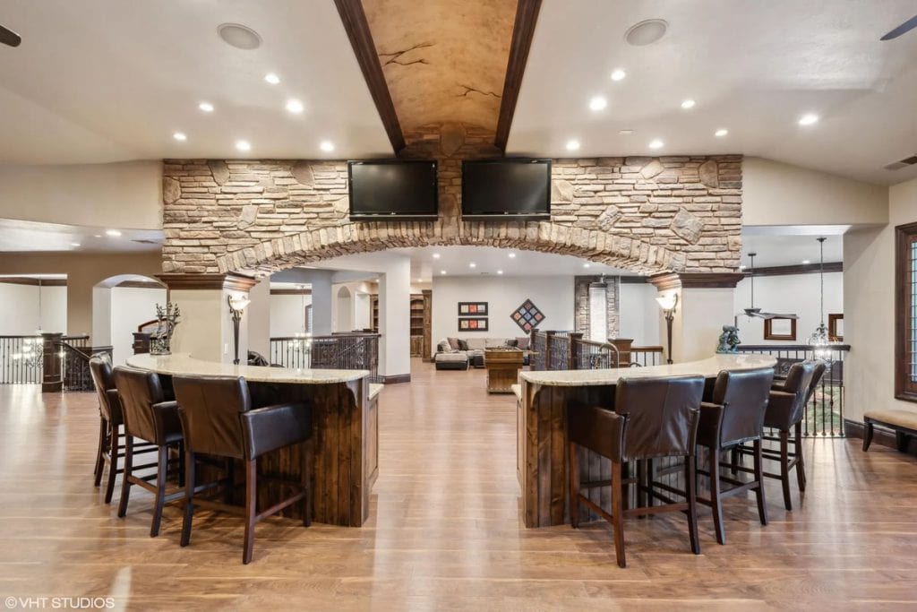 Perched on a sunny hillside in an exclusive gated community, this stunning estate boasts breathtaking views of the lush fairways of Green Springs Golf Course, the majestic stone temples of Zion National Park, and the serene blue-green hues of Pine Valley Mountain. Every detail of this home is magnificent, from the grand 30′ entryway with a skylight-lit rotunda staircase that welcomes your guests, to the luxurious resort-style pool area. No expense was spared in creating the impeccable stone and woodwork, showcasing incredible craftsmanship. Surprisingly, this ultra-luxury home is also warm, inviting, and perfect for families, with full A.D.A compliance. It goes way beyond your imagination with multiple theaters (one for the kids, another for the adults), an “arcade” featuring state-of-the-art sound and lighting, a top-notch 2-lane bowling alley, a Sports Pub, a spa, a gym, an elevator, and of course, a tropical pool and cabana to enjoy under the sun.