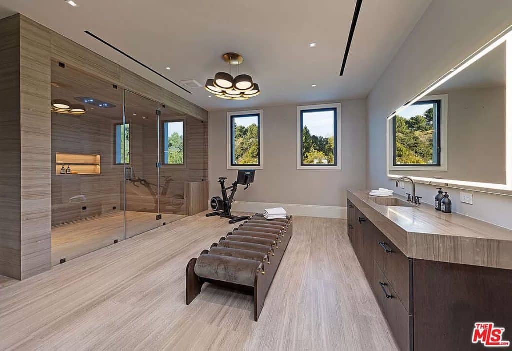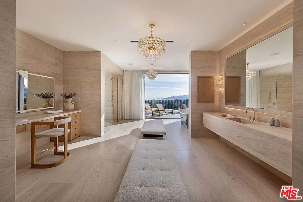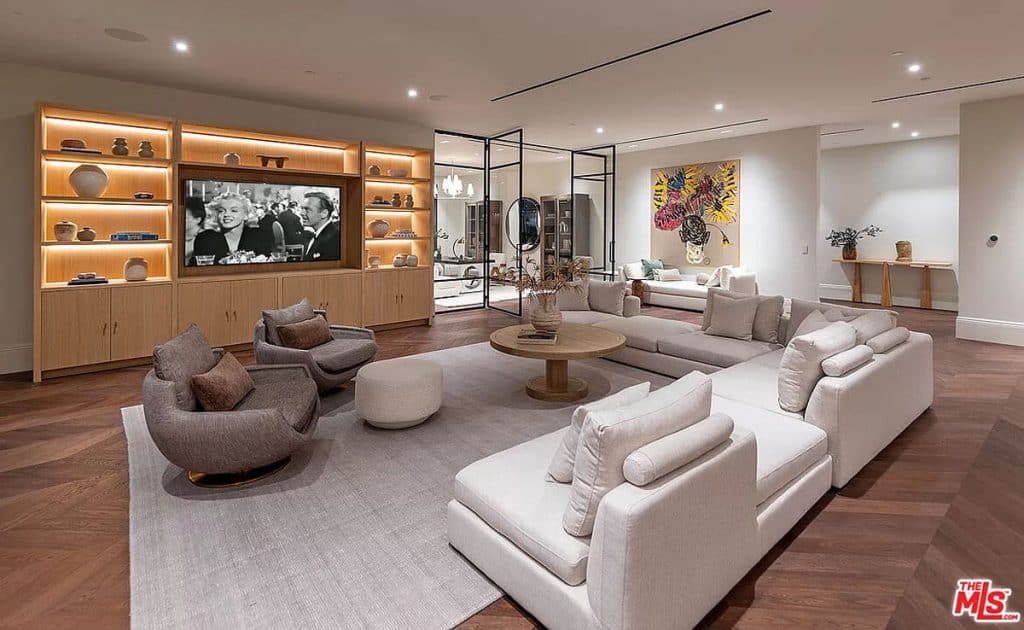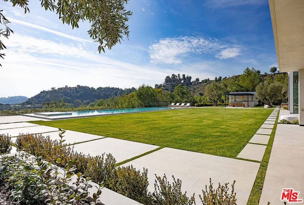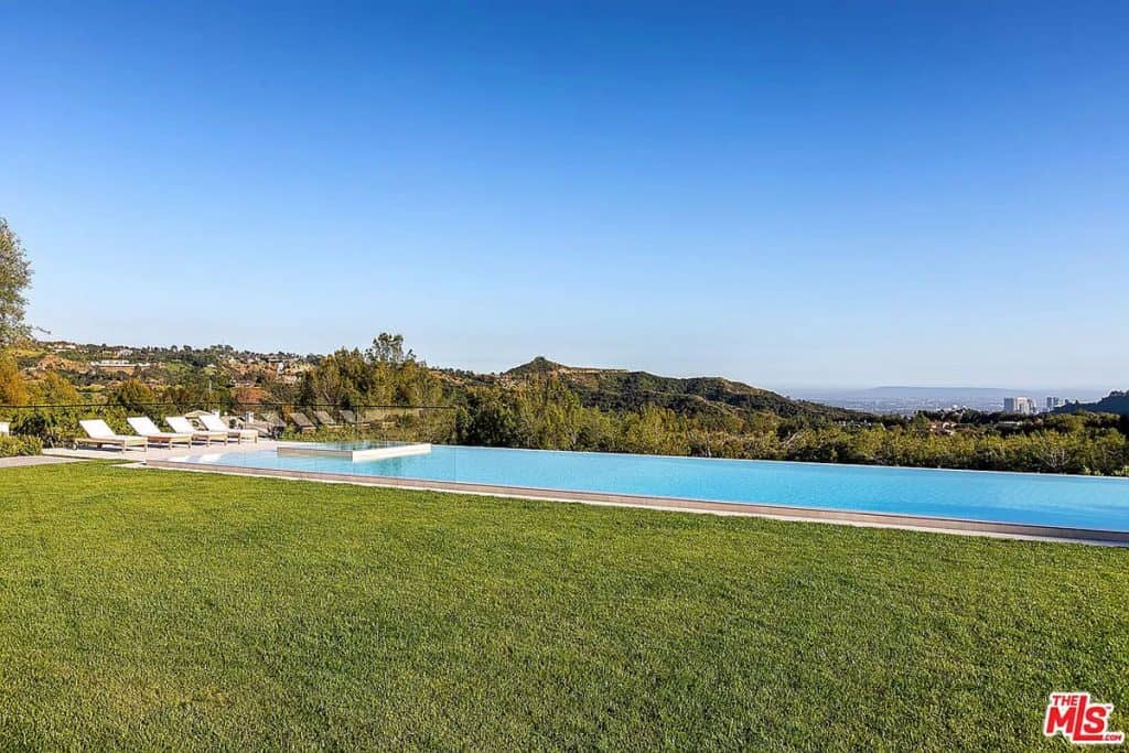 Tucked away behind the prestigious gates of Beverly Park, you’ll find a truly exceptional estate that embodies the epitome of luxury living. Set on a sprawling 2.6-acre lot, this home offers unparalleled privacy and tranquility, surrounded by stunning views of the city skyline and glistening ocean. Step inside and be captivated by the seamless blend of grandeur and comfort, with an open layout that invites you to relax and unwind. The primary suite, spanning an impressive 5,000 square feet, is a sanctuary of relaxation, boasting dual bathrooms, a multi-room closet, massage room, glam room/salon, steam sauna, dry sauna, and a private entrance for ultimate privacy. This home also offers an array of exceptional features, including a state-of-the-art screening room, a variety of health and wellness amenities, two kitchens (including a secondary commercial-grade chef’s kitchen), and a sophisticated executive home office. Outside, the sprawling grounds are a true oasis, featuring an infinity lap pool that stretches approximately 85 feet, an outdoor kitchen, expansive lawn, and a pristine orchard filled with fruit trees.