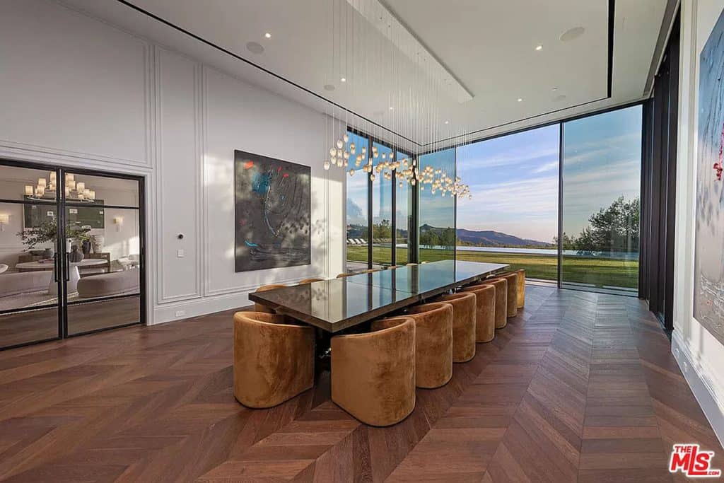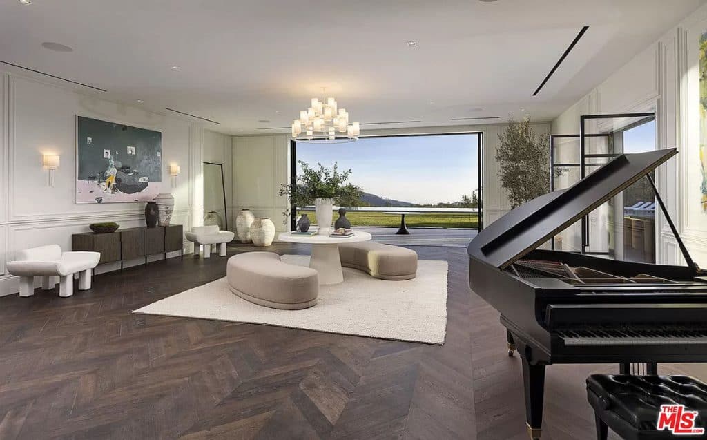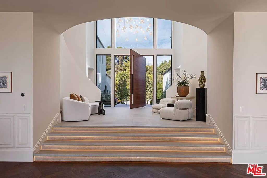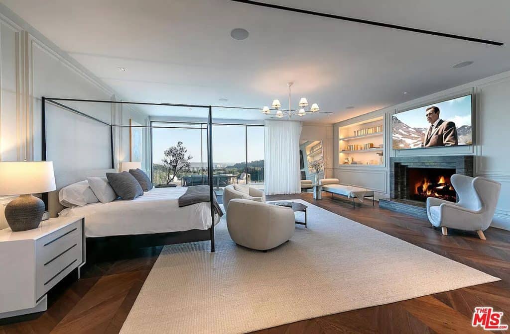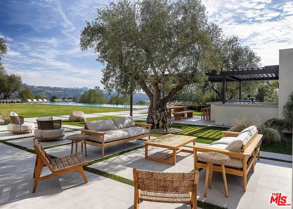 Tucked away behind the prestigious gates of Beverly Park, you’ll find a truly exceptional estate that embodies the epitome of luxury living. Set on a sprawling 2.6-acre lot, this home offers unparalleled privacy and tranquility, surrounded by stunning views of the city skyline and glistening ocean. Step inside and be captivated by the seamless blend of grandeur and comfort, with an open layout that invites you to relax and unwind. The primary suite, spanning an impressive 5,000 square feet, is a sanctuary of relaxation, boasting dual bathrooms, a multi-room closet, massage room, glam room/salon, steam sauna, dry sauna, and a private entrance for ultimate privacy. This home also offers an array of exceptional features, including a state-of-the-art screening room, a variety of health and wellness amenities, two kitchens (including a secondary commercial-grade chef’s kitchen), and a sophisticated executive home office. Outside, the sprawling grounds are a true oasis, featuring an infinity lap pool that stretches approximately 85 feet, an outdoor kitchen, expansive lawn, and a pristine orchard filled with fruit trees.