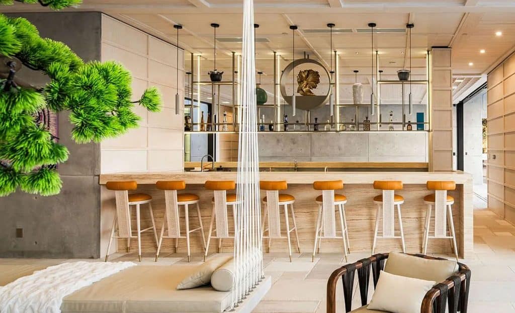 Life in this place reveals itself through extraordinary experiences: a stunning 176-foot multi-level stone pool with vein-matched design, complete with a swim-up bar, a sunken lounge, and a breathtaking viewing window that blends effortlessly with the Pacific horizon. A top-tier theater featuring a 235-inch LED screen, Dolby Atmos sound, and luxurious Atelier Italian leather recliners competes with the best private cinemas in the world. Additionally, a Japanese tea room serves as a peaceful retreat within this haven, providing a space for deep tranquility. To promote wellness and longevity, Simka provides a comprehensive spa, cold plunge, sauna, treatment rooms, and a cutting-edge gym featuring underwater pool windows. Additionally, a nightclub, private guest suites, and an underground garage for 10 cars enhance the lifestyle experience.