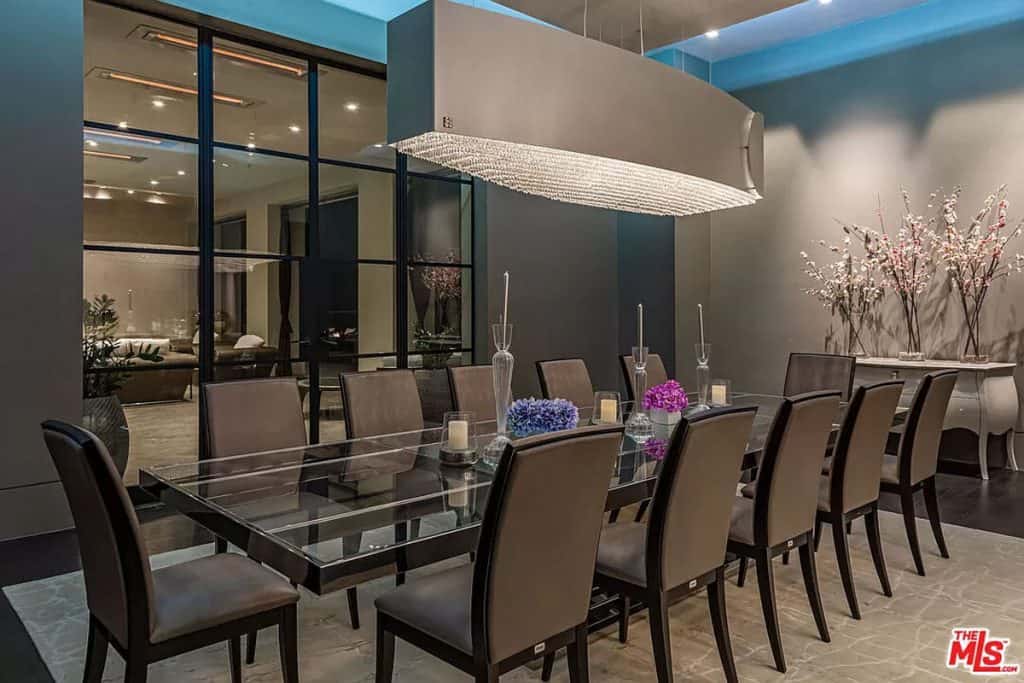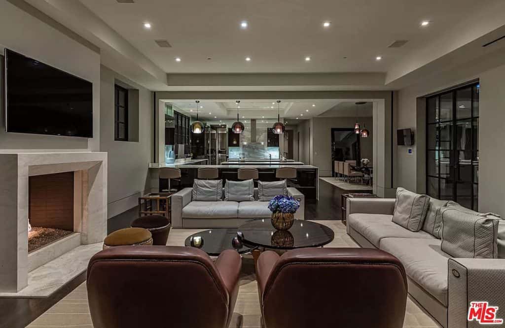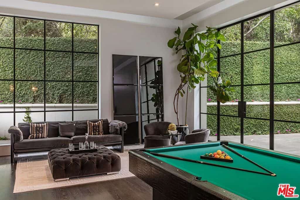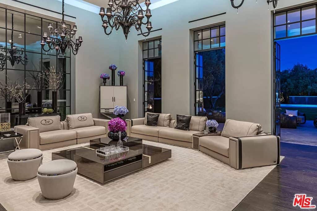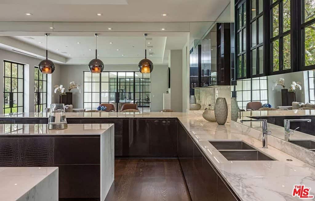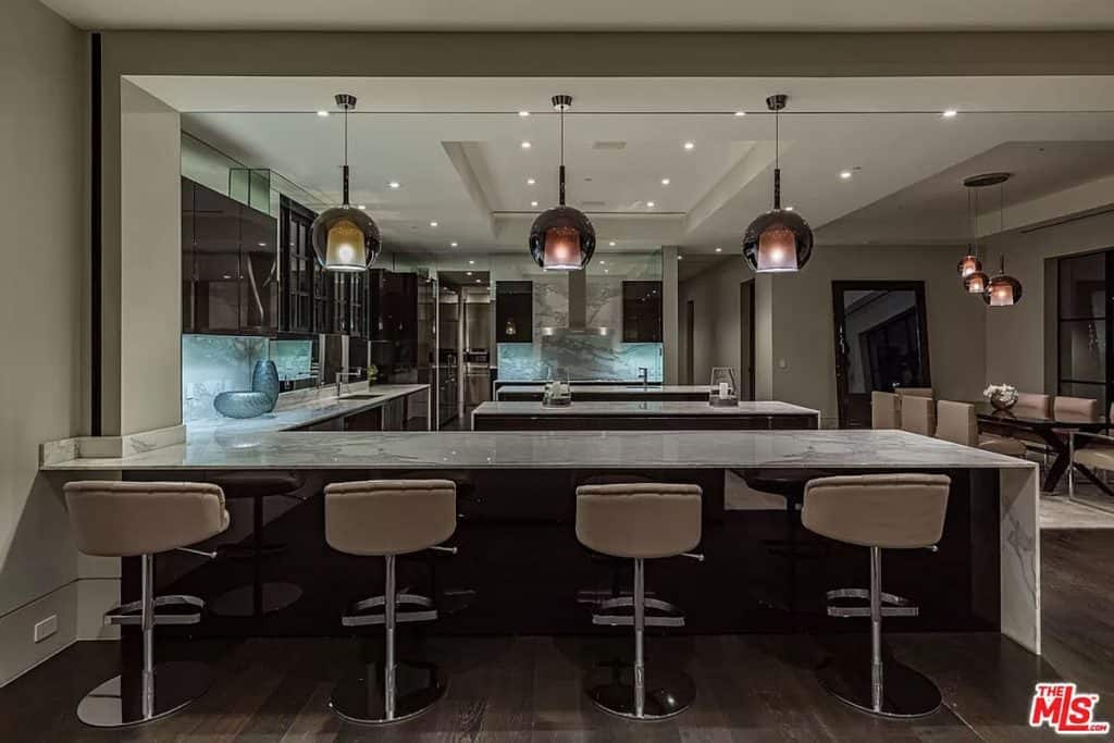 Take a look at this stunning estate situated on Billionaire’s Row, secured behind gates. It boasts a magnificent main entry hall with a guard gate, a spacious motor court, and a separate driveway for staff. Spanning over 31,000 square feet of pure luxury on approximately 1.4 flat acres, this property features beautifully proportioned rooms and expansive grounds with vast lawns. The compound is elegantly furnished by Fendi and offers an array of amenities. Enjoy a bowling alley with a game room, a well-stocked bar, a movie theater, a fully-equipped gym, a hair salon, a medical room, a golf simulator, a wine cellar with a tasting room, an indoor pool, and a complete spa with a steam shower. Additionally, there is a two-bedroom guesthouse, an outdoor kitchen, and a cabana equipped with misters to keep you cool under the Southern California sun. The main house includes a grand master suite with his and hers bathrooms, oversized closets, an elevator, and a lovely terrace that overlooks the lush grounds and a luxurious pool cabana area complete with fountains.