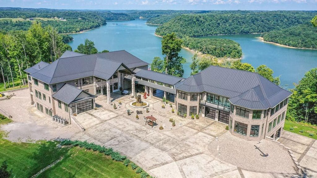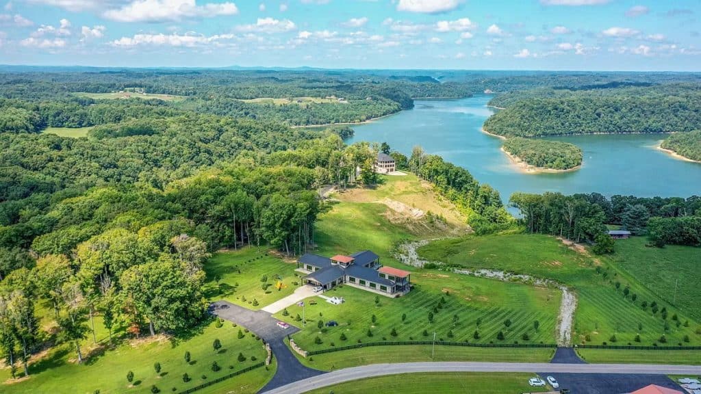 This stunning lakeside property is truly one of a kind! An exquisite estate set on 63 acres of picturesque parkland. Enjoy breathtaking views of Tennessee’s stunning Dale Hollow Lake. Take in the sunset from one of the numerous balconies and sun rooms. The house features custom marble and hand-crafted woodwork throughout, as well as 3 full-sized kitchens and additional kitchenettes. A dramatic 2 story resort-style breezeway connects the wings of this grand home. There is also a commercial-grade home theater and guest quarters with an open concept office/lounge space, 3 bedrooms, and a third floor lookout cupola with 360 degree views. Additionally, there is a separate commercial style shop/garage. With nearly 50,000 sq ft of finished space, this property is truly unique in Tennessee. It could also be used as a corporate retreat, luxury resort, or event venue.