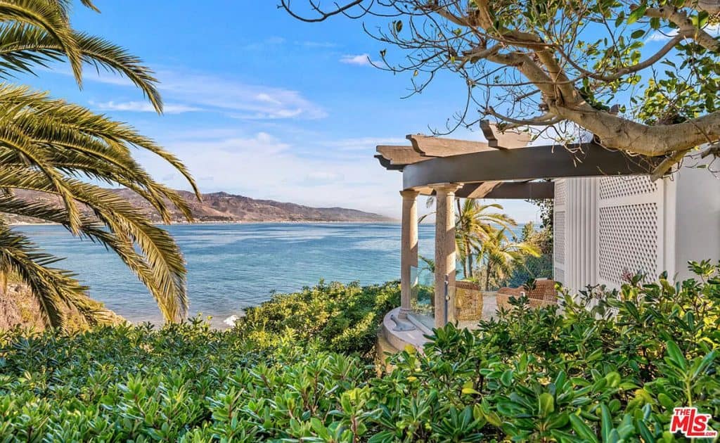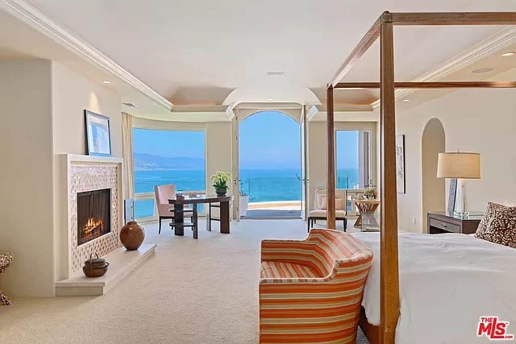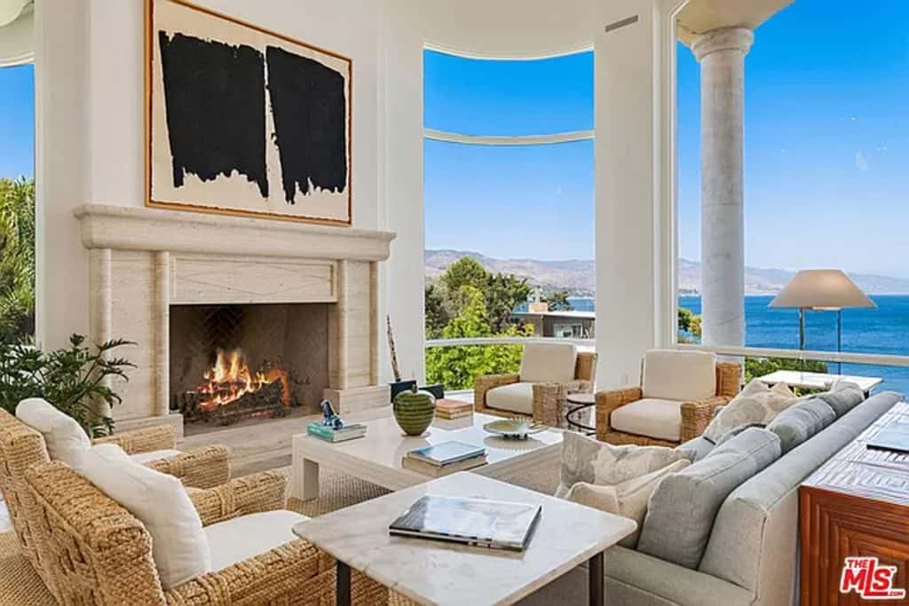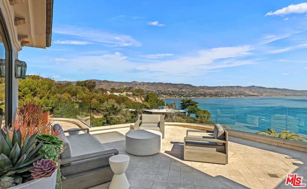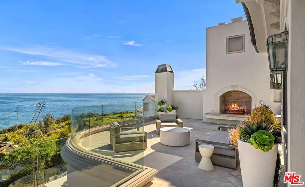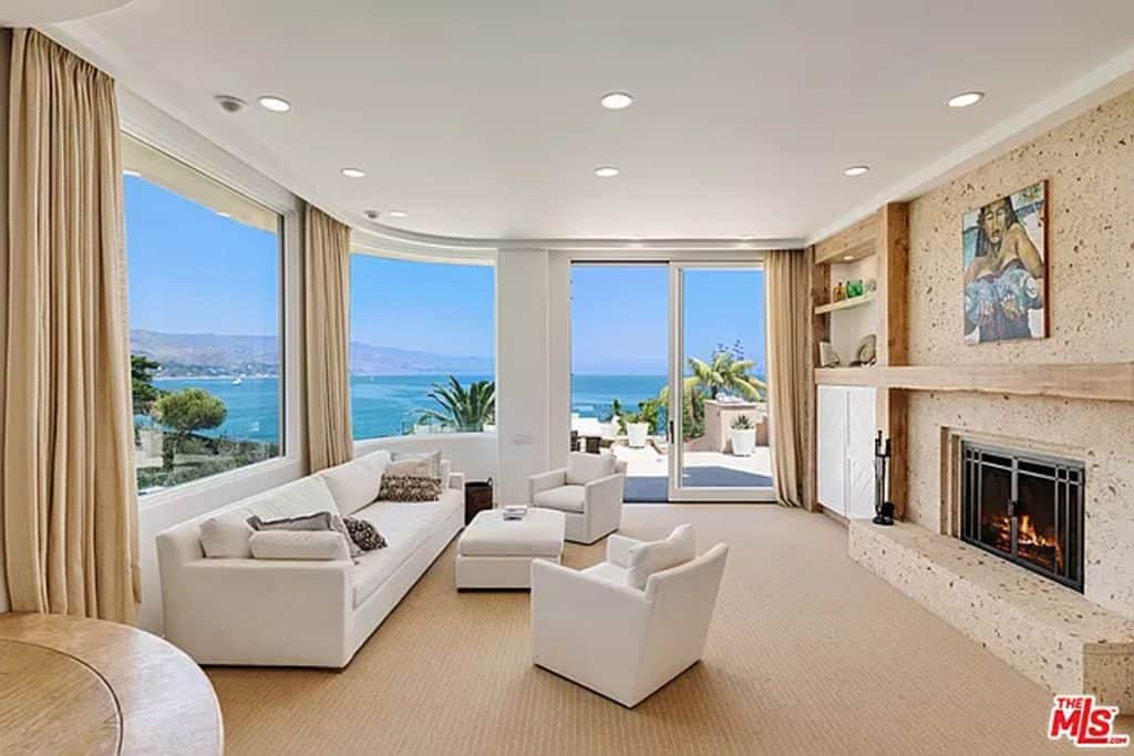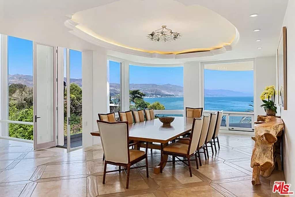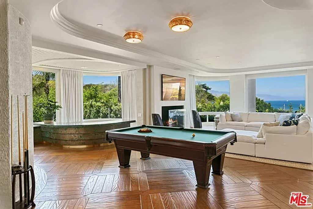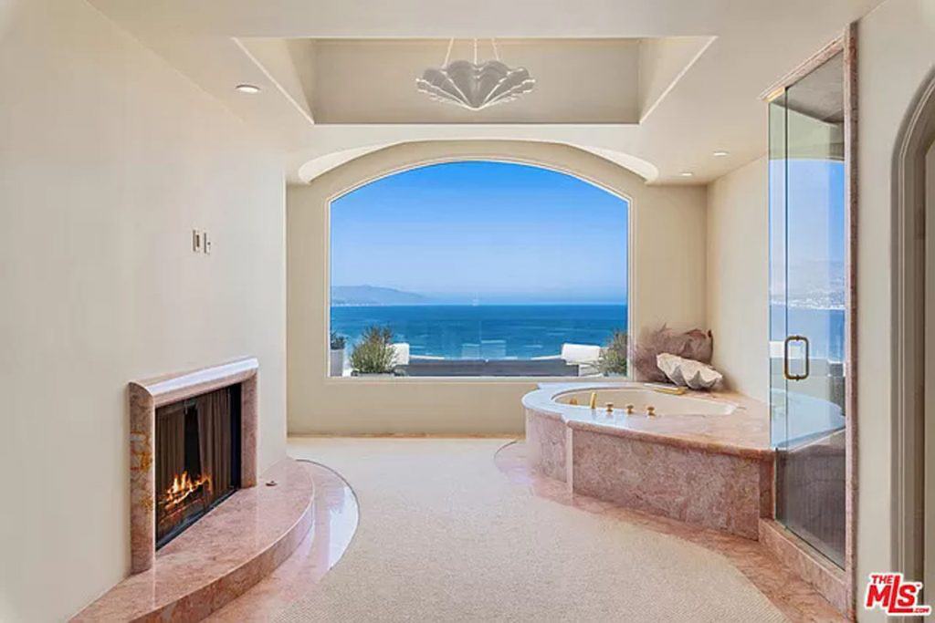 This luxurious estate on Point Dume bluff boasts stunning ocean, whitewater, and coastline views. The grand residence features parklike grounds, a private path to the beach, and multiple surf breaks. With three levels of living space, including an elevator, high ceilings, curved windows, fireplaces, and hardwood floors, this home is perfect for entertaining. The circular drive, lush landscaping, and resort-style porte-cochre welcome guests. Inside, a grand circular foyer leads to a living room with a fireplace and ocean views. The chef’s kitchen has top-of-the-line appliances and a walk-in pantry. The main floor also includes a guest bedroom, office, and powder rooms. Upstairs, the owner’s suite offers stunning views, a fireplace, and a marble spa.