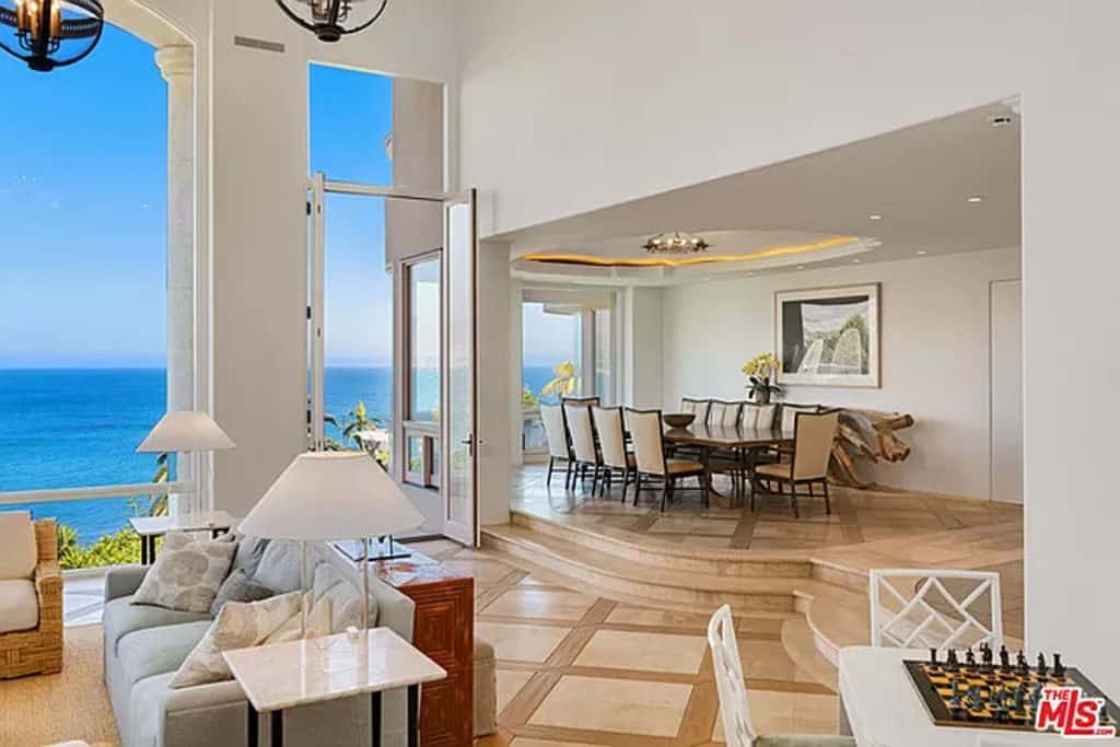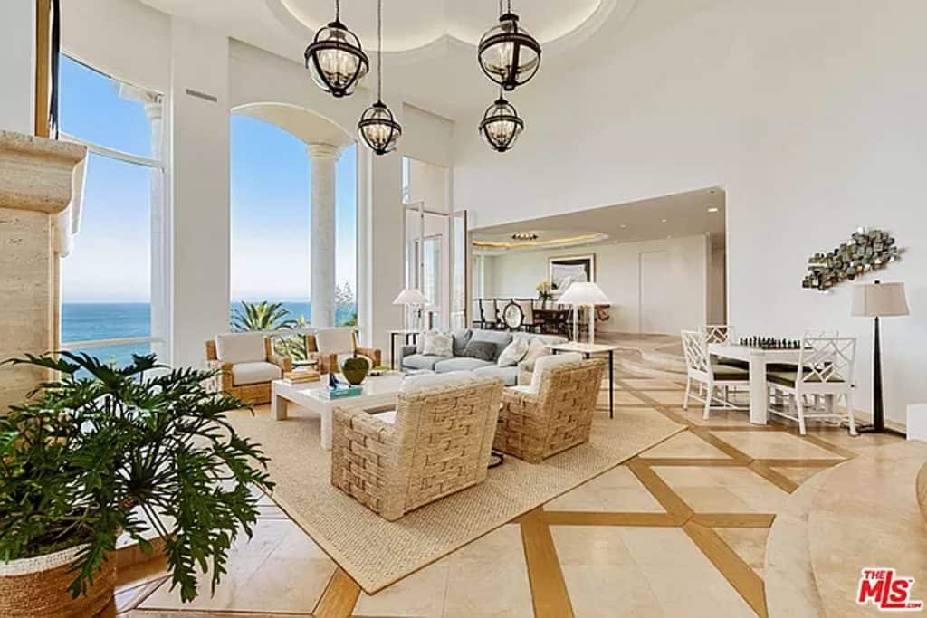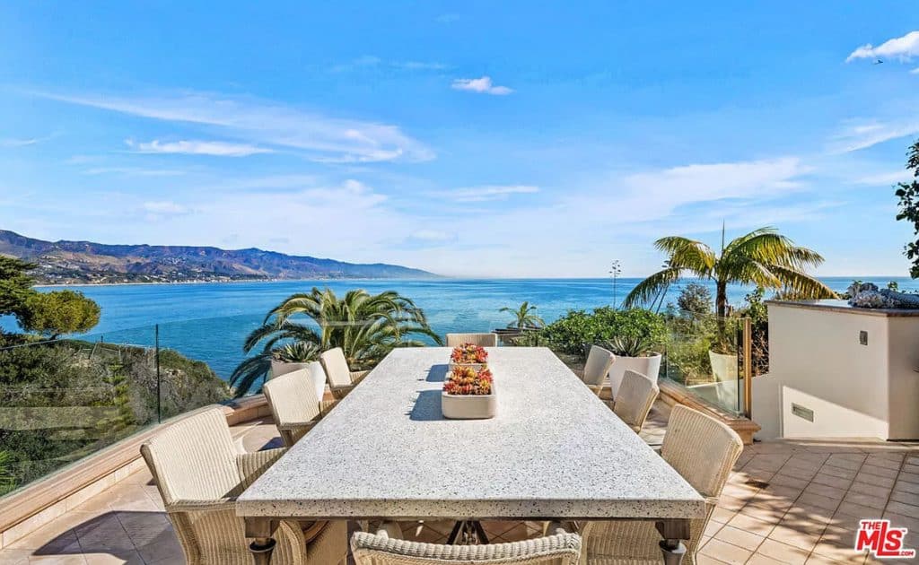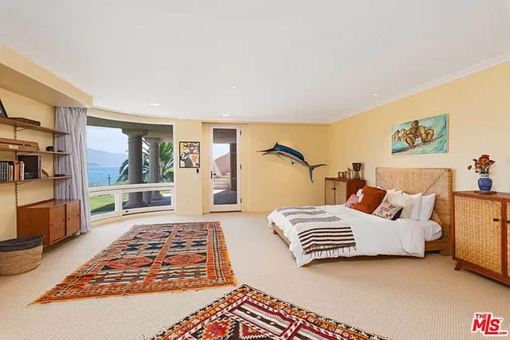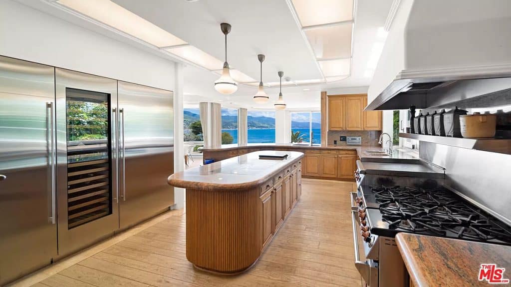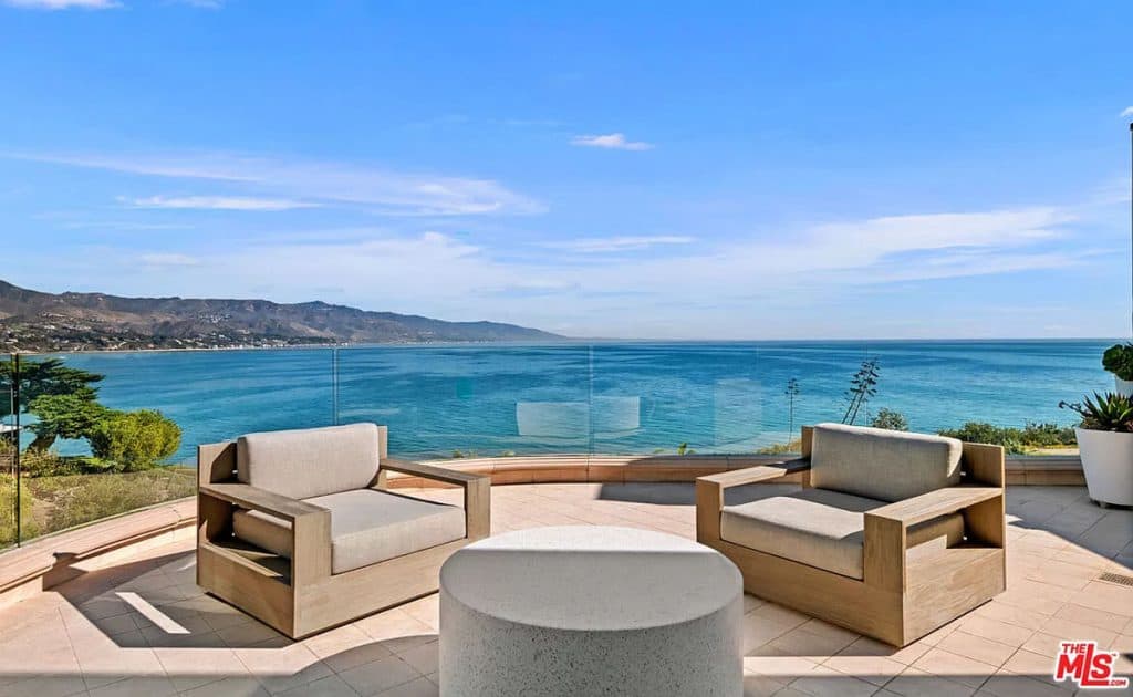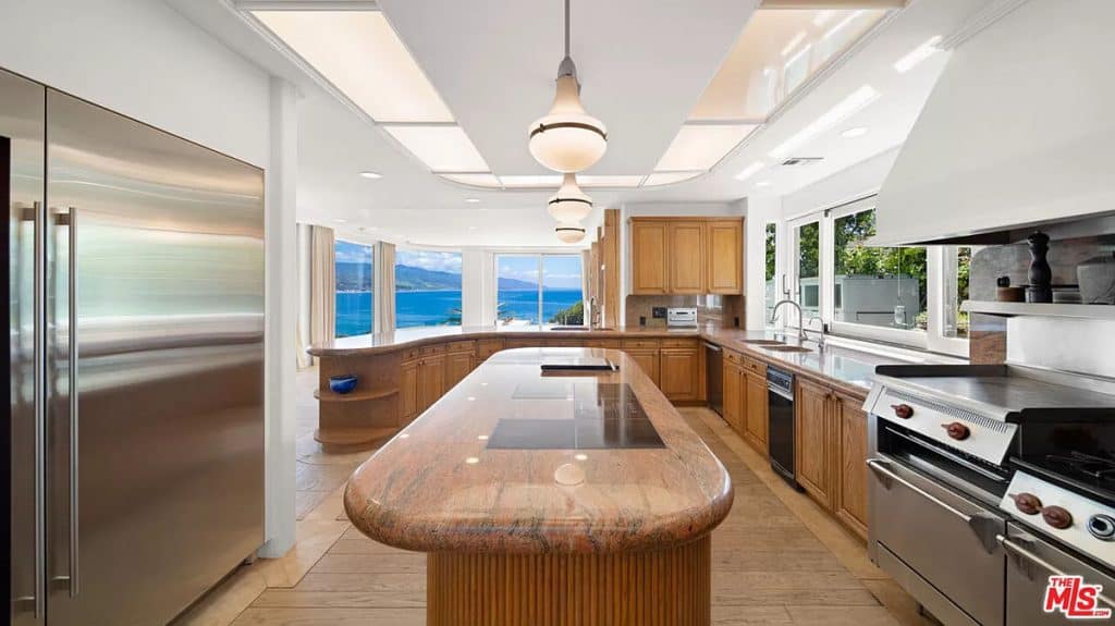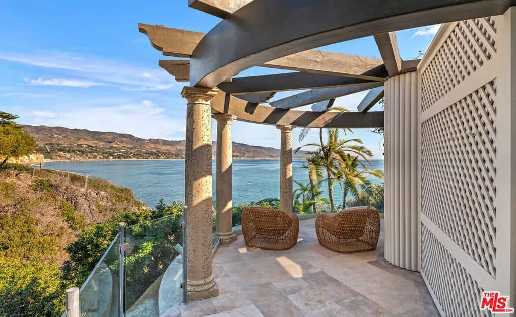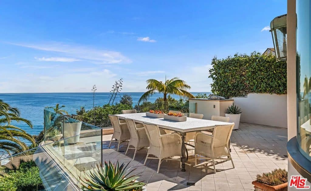 This luxurious estate on Point Dume bluff boasts stunning ocean, whitewater, and coastline views. The grand residence features parklike grounds, a private path to the beach, and multiple surf breaks. With three levels of living space, including an elevator, high ceilings, curved windows, fireplaces, and hardwood floors, this home is perfect for entertaining. The circular drive, lush landscaping, and resort-style porte-cochre welcome guests. Inside, a grand circular foyer leads to a living room with a fireplace and ocean views. The chef’s kitchen has top-of-the-line appliances and a walk-in pantry. The main floor also includes a guest bedroom, office, and powder rooms. Upstairs, the owner’s suite offers stunning views, a fireplace, and a marble spa.