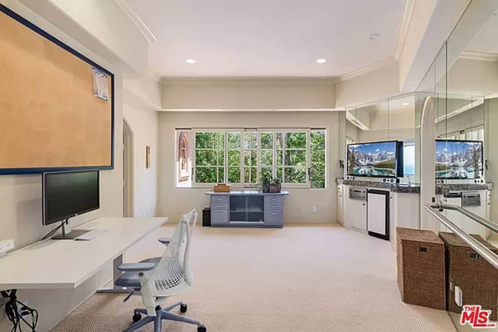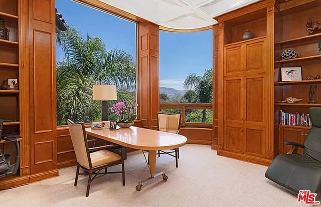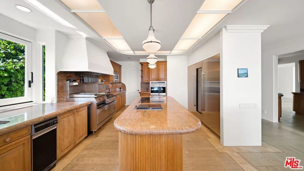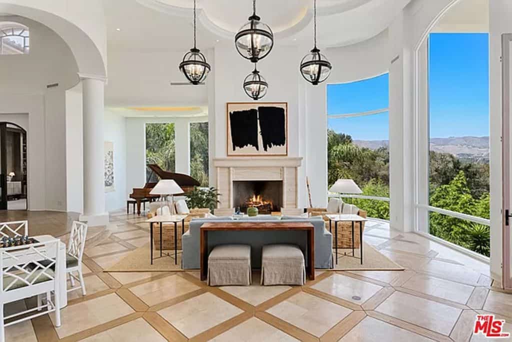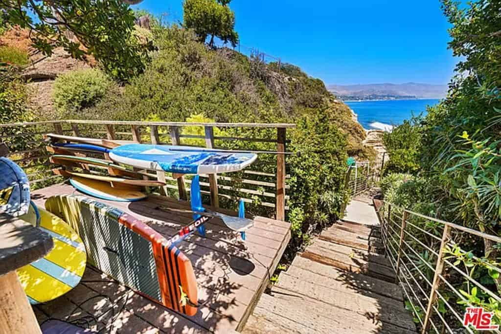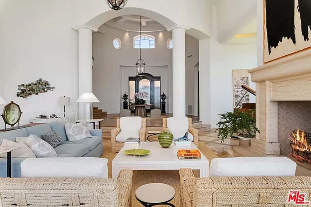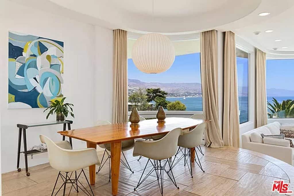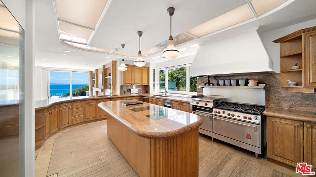 This luxurious estate on Point Dume bluff boasts stunning ocean, whitewater, and coastline views. The grand residence features parklike grounds, a private path to the beach, and multiple surf breaks. With three levels of living space, including an elevator, high ceilings, curved windows, fireplaces, and hardwood floors, this home is perfect for entertaining. The circular drive, lush landscaping, and resort-style porte-cochre welcome guests. Inside, a grand circular foyer leads to a living room with a fireplace and ocean views. The chef’s kitchen has top-of-the-line appliances and a walk-in pantry. The main floor also includes a guest bedroom, office, and powder rooms. Upstairs, the owner’s suite offers stunning views, a fireplace, and a marble spa.