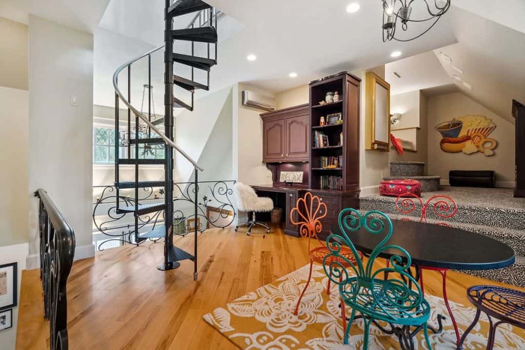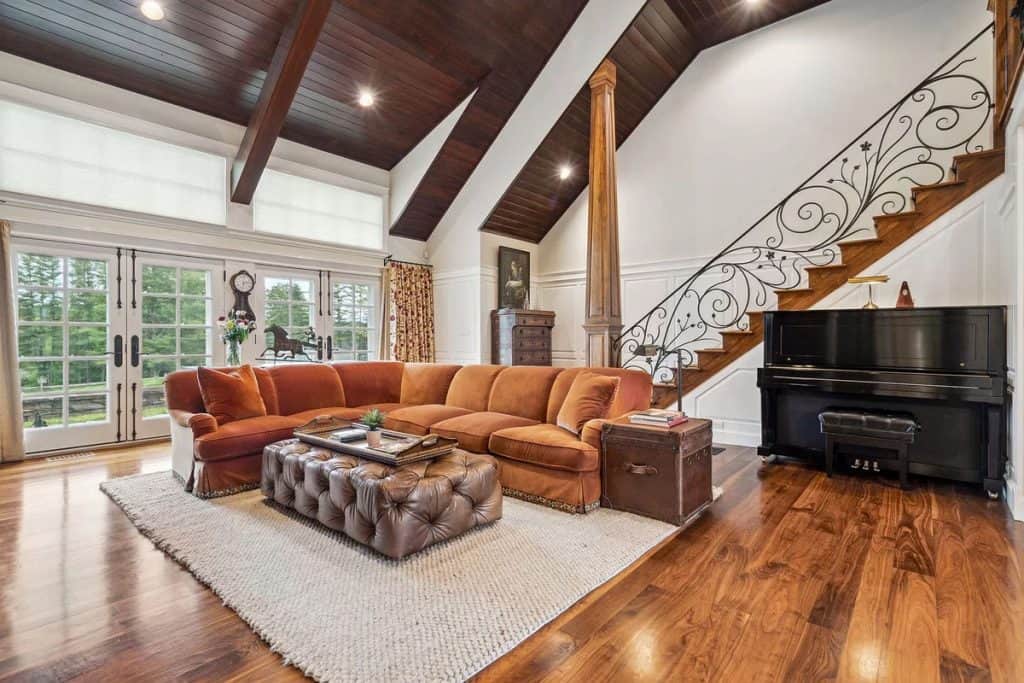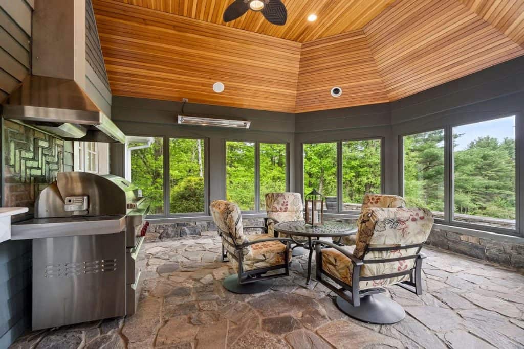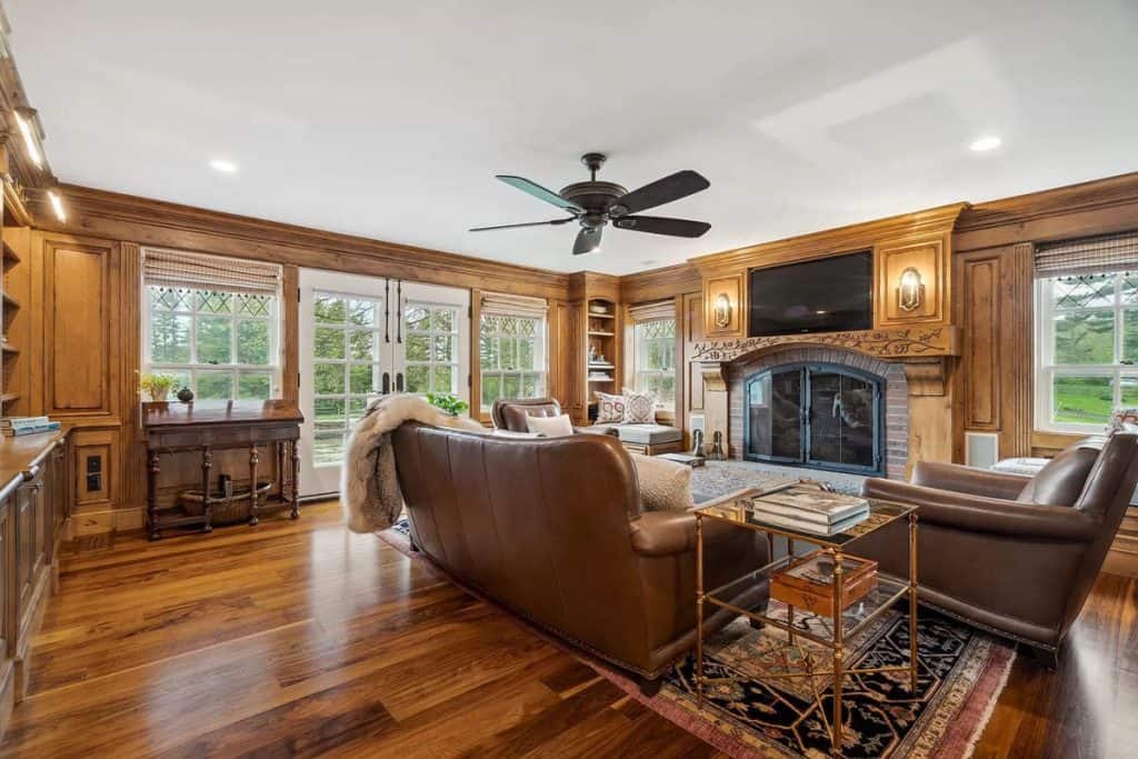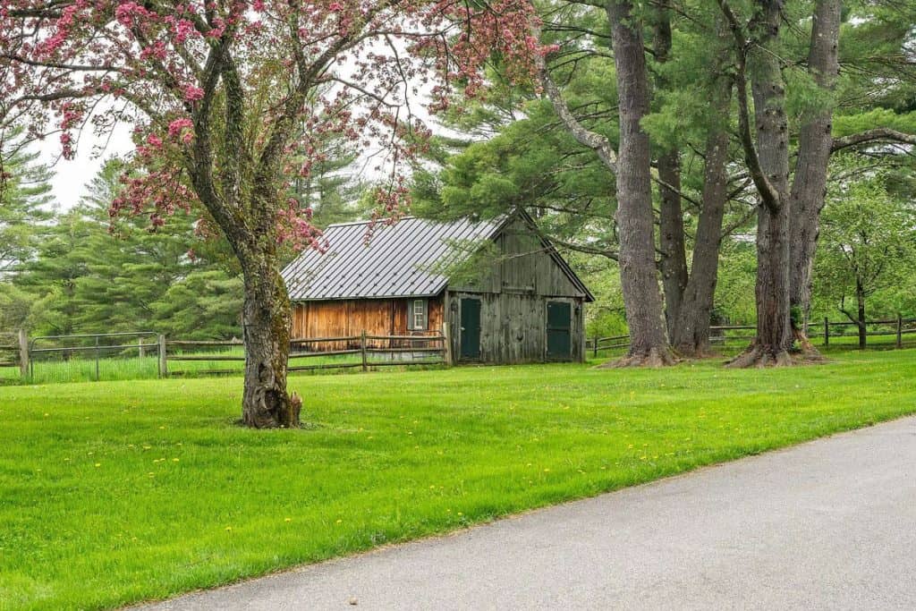 A beautiful Gentleman’s Farm situated on 28 acres of picturesque Vermont scenery. Beyond its gates, you’ll find rolling hills and secluded views with direct access to Sterling Brook. Step into this elegant home to enjoy exquisite custom workmanship, from renovated windows to unique iron railings. The Chef’s kitchen features custom cabinets, top-of-the-line appliances, and a spacious island, ideal for hosting guests. A farmhouse-style dining area with a fireplace and a second kitchen add to the atmosphere. Relax and unwind in the 3-season room with vaulted wood ceilings and a vented gas grill, or gather in the library by the fireplace. The East wing boasts a primary suite with a walk-in closet, Carrera Marble bathroom, steam shower, and soaking tub. The other bedrooms have ensuite bathrooms and large closets, including the tree house suite with its own living space and observatory. The lower level offers a game room and entertainment area.
