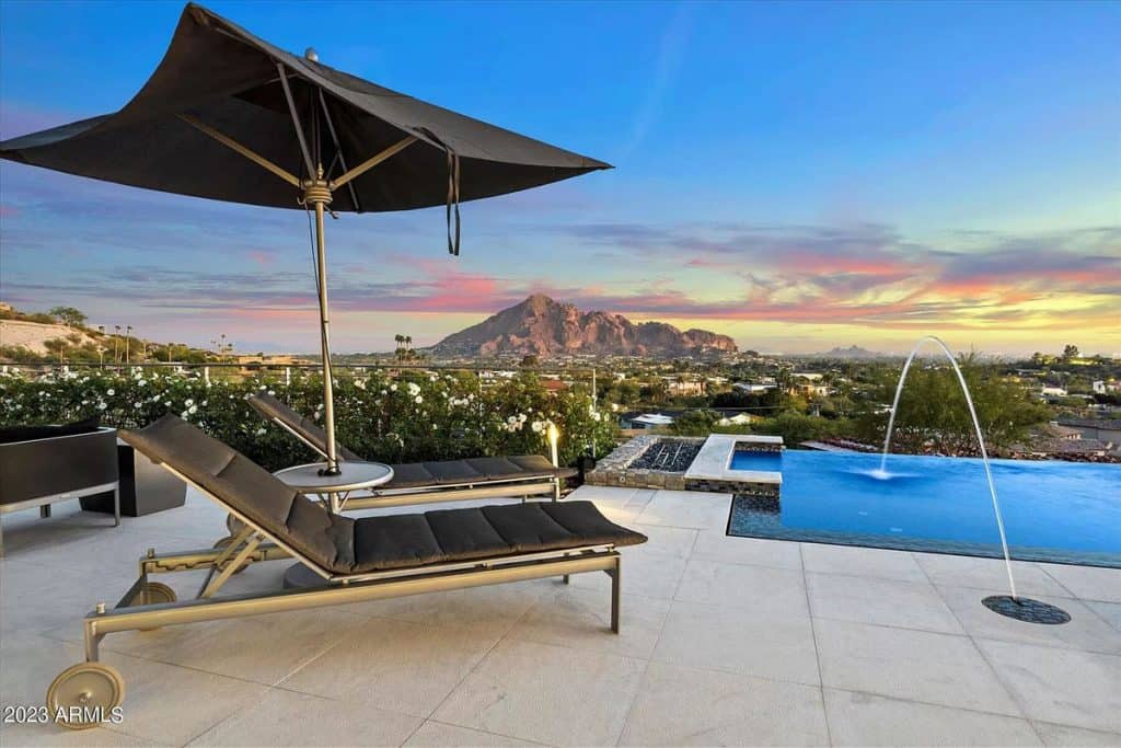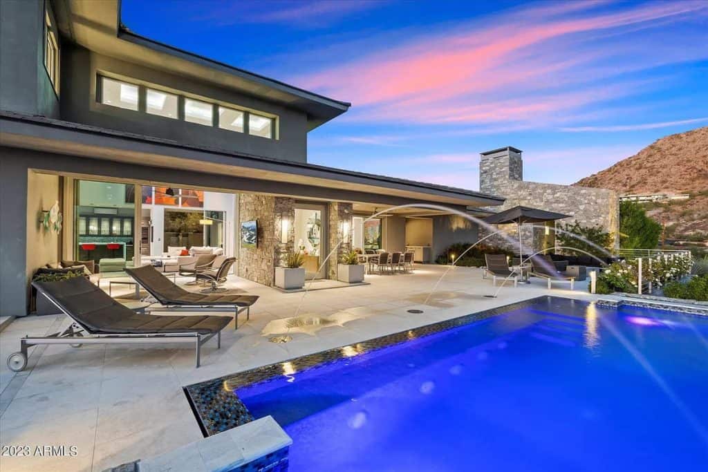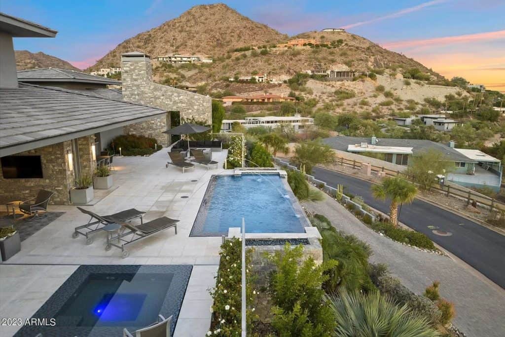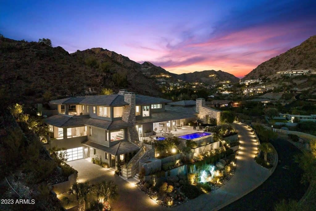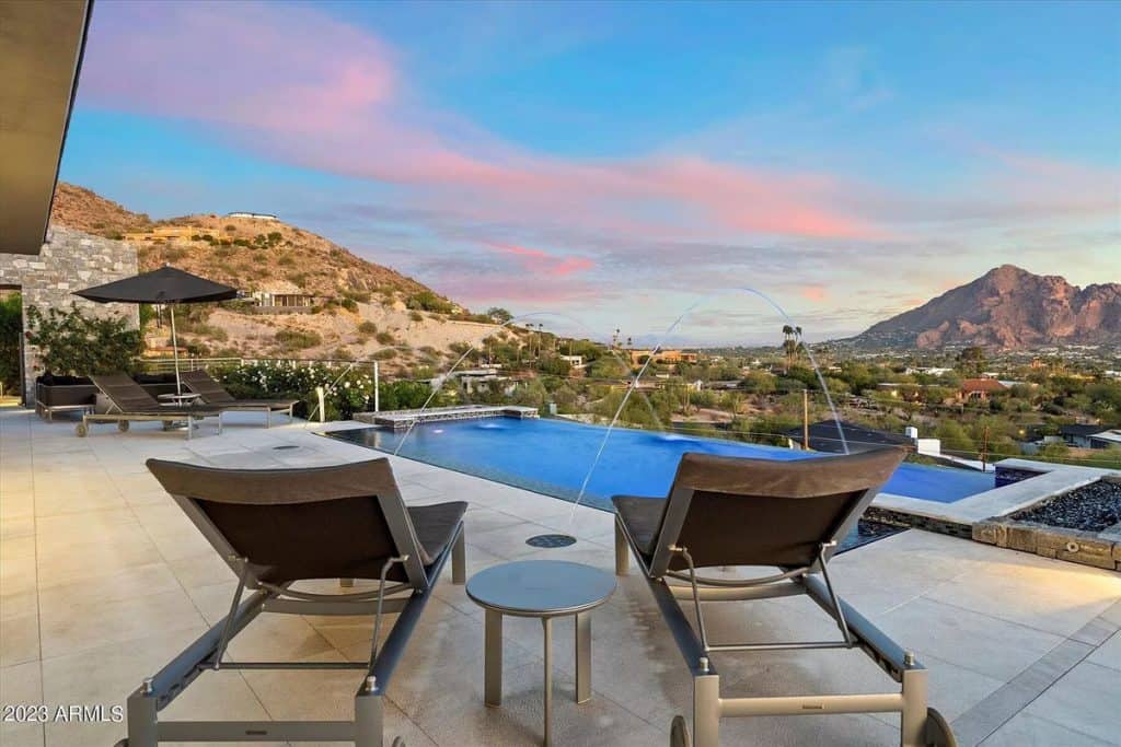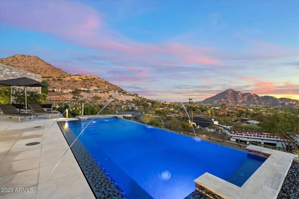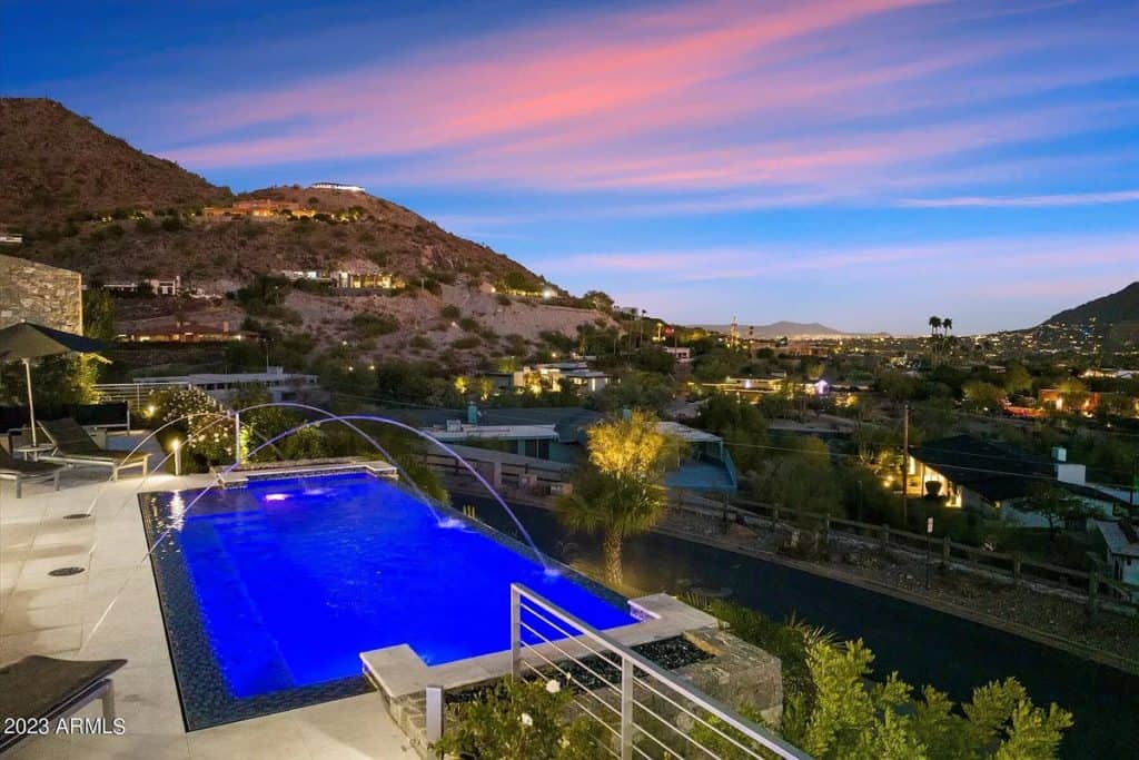 Stunning City Lights and Camelback Mountain Views await you in this exclusive Guard Gated community of Paradise Reserves. Nestled on just under 2.2 acres of picturesque hillside, this stunning property seamlessly blends in with the surrounding newly built custom homes. Prepare to be amazed by the luxurious upgrades that await you, from the intricate tilework to the mesmerizing stone waterfall. Step inside the 25-ft great room and be captivated by its beauty. The custom glass underlit bar adds a touch of sophistication, while the seamless integration of indoor and outdoor spaces allows you to enjoy the infinity-edge pool from the comfort of your own home. The chef’s kitchen, featuring a geo-lux quartz island, is perfect for entertaining guests. Retreat to the elegant primary suite with its custom closets, private balconies, and indulge in the ultimate relaxation in the theater and gym. Located in a prestigious guard-gated community in Paradise Valley, just minutes away from premier shopping and dining destinations, this residence offers unparalleled privacy, elegance, and security. Take a closer look at its motion video, features, and benefits to truly appreciate its magnificence.