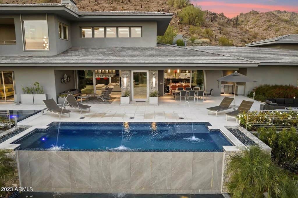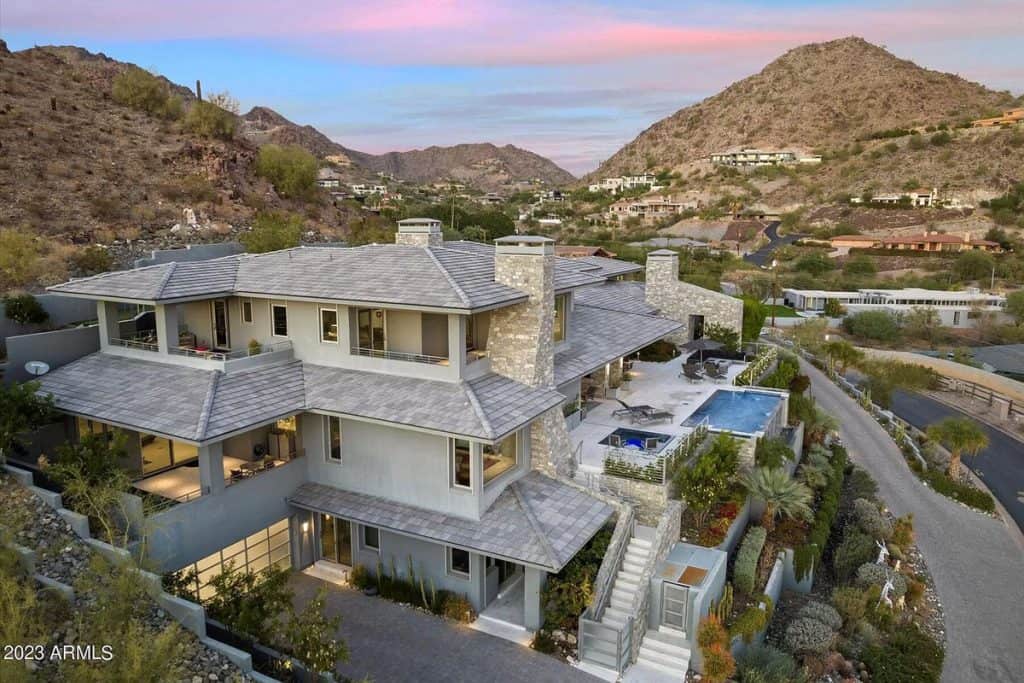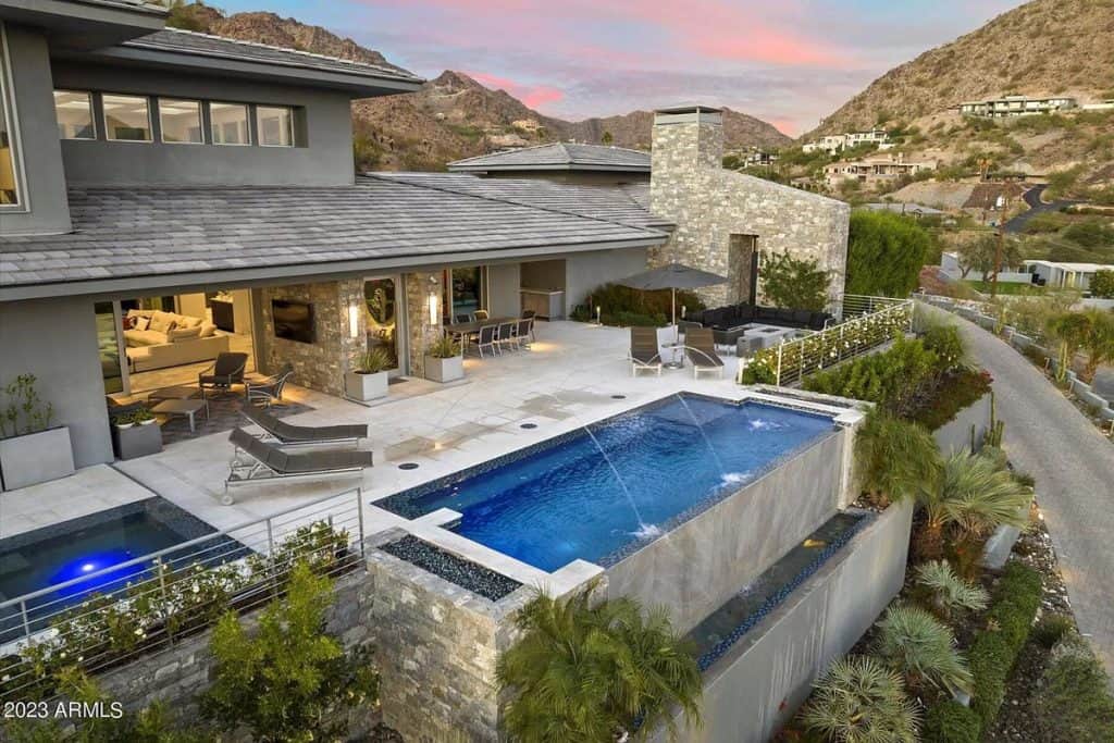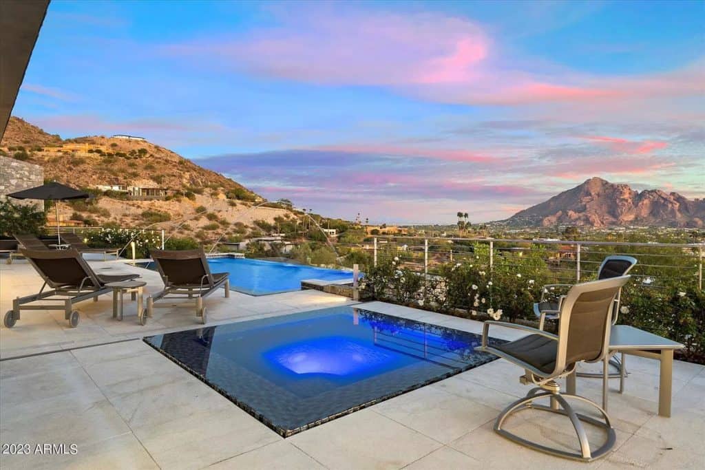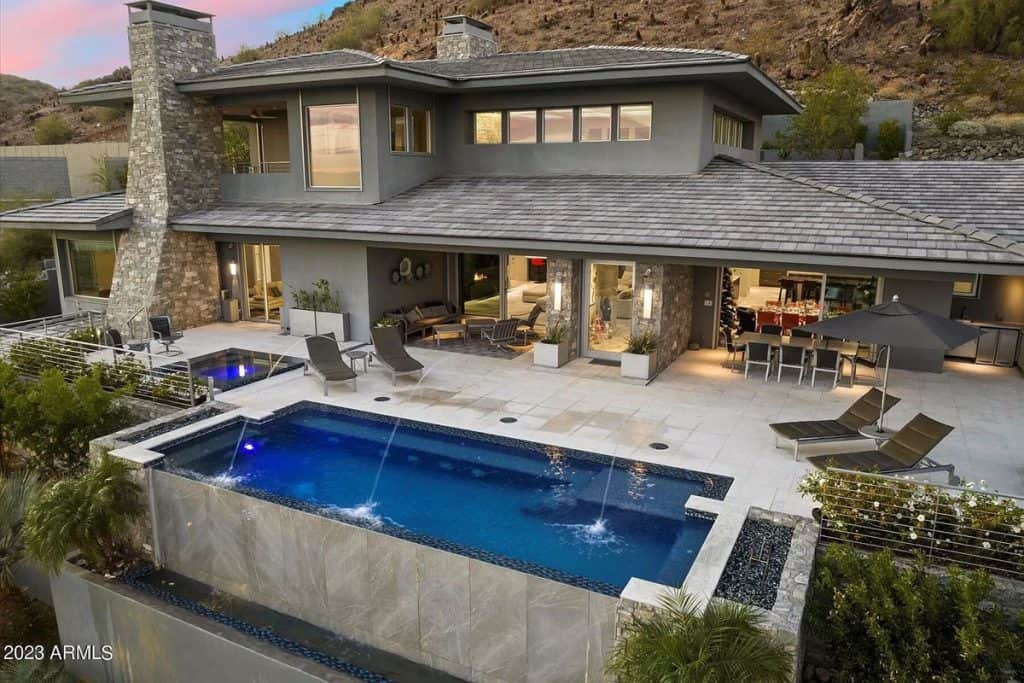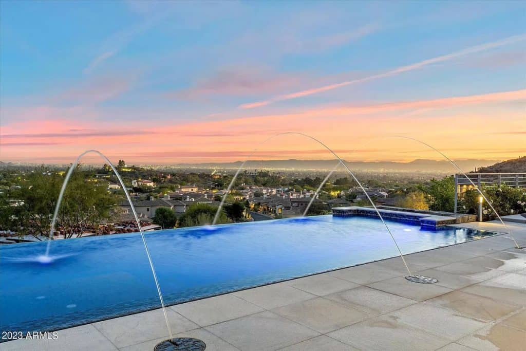 Stunning City Lights and Camelback Mountain Views await you in this exclusive Guard Gated community of Paradise Reserves. Nestled on just under 2.2 acres of picturesque hillside, this stunning property seamlessly blends in with the surrounding newly built custom homes. Prepare to be amazed by the luxurious upgrades that await you, from the intricate tilework to the mesmerizing stone waterfall. Step inside the 25-ft great room and be captivated by its beauty. The custom glass underlit bar adds a touch of sophistication, while the seamless integration of indoor and outdoor spaces allows you to enjoy the infinity-edge pool from the comfort of your own home. The chef’s kitchen, featuring a geo-lux quartz island, is perfect for entertaining guests. Retreat to the elegant primary suite with its custom closets, private balconies, and indulge in the ultimate relaxation in the theater and gym. Located in a prestigious guard-gated community in Paradise Valley, just minutes away from premier shopping and dining destinations, this residence offers unparalleled privacy, elegance, and security. Take a closer look at its motion video, features, and benefits to truly appreciate its magnificence.