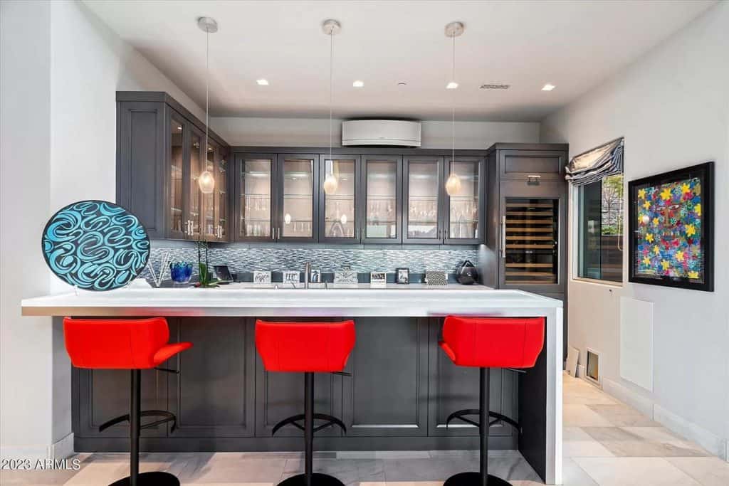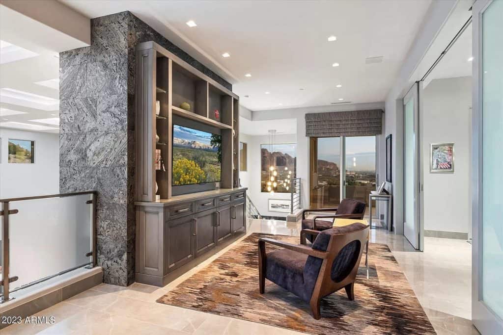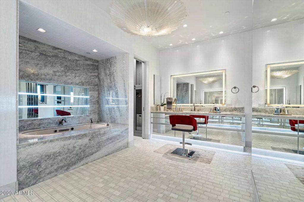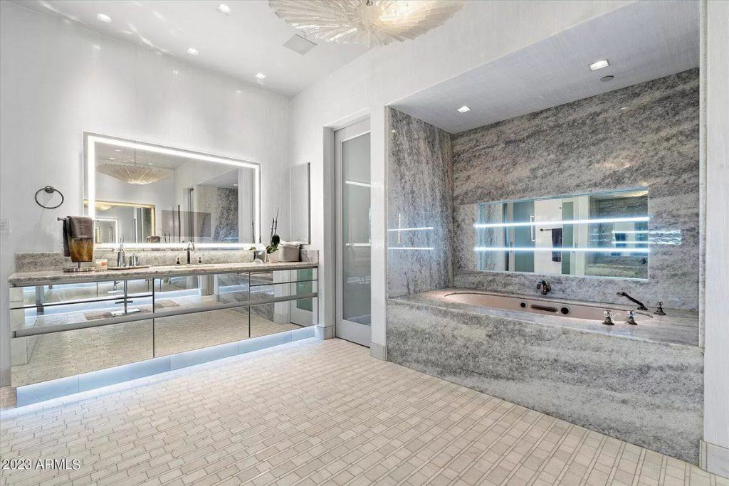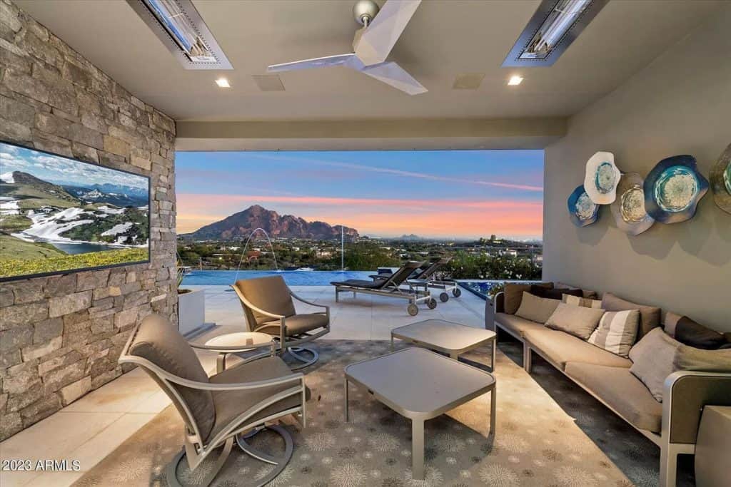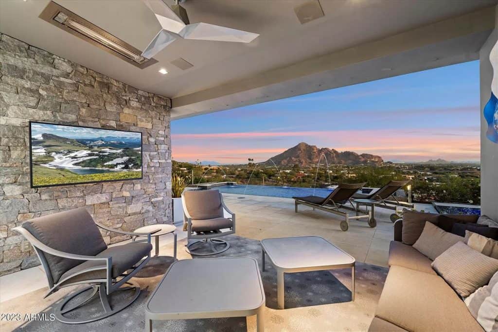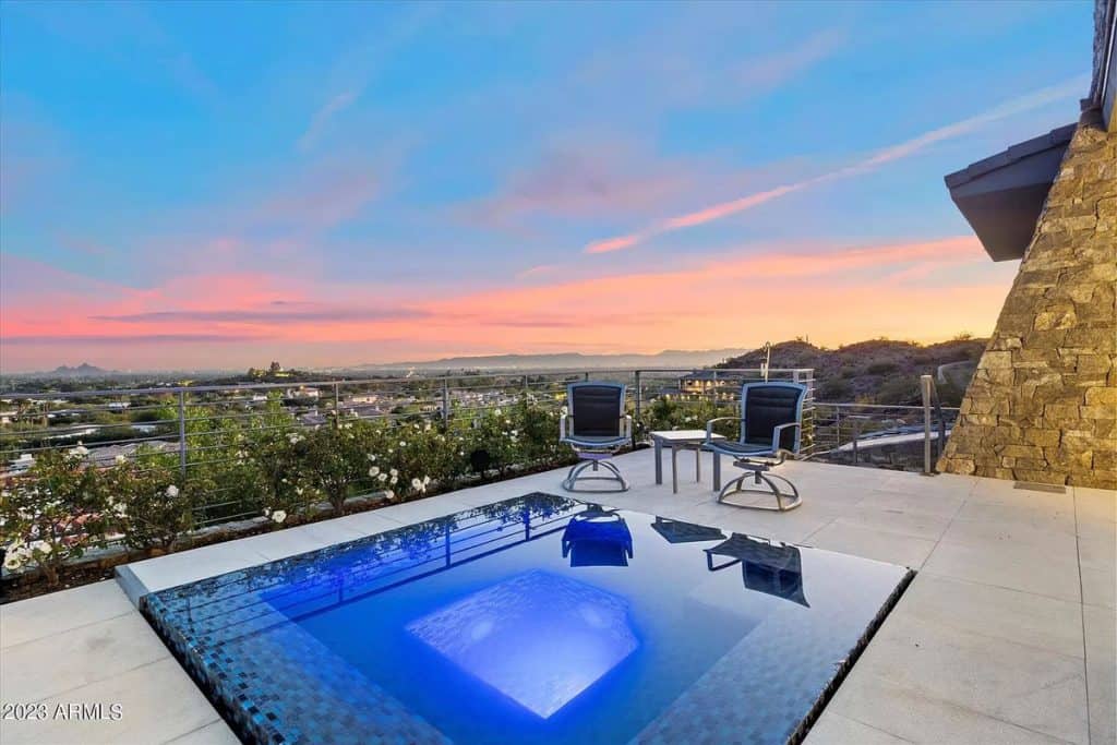 Stunning City Lights and Camelback Mountain Views await you in this exclusive Guard Gated community of Paradise Reserves. Nestled on just under 2.2 acres of picturesque hillside, this stunning property seamlessly blends in with the surrounding newly built custom homes. Prepare to be amazed by the luxurious upgrades that await you, from the intricate tilework to the mesmerizing stone waterfall. Step inside the 25-ft great room and be captivated by its beauty. The custom glass underlit bar adds a touch of sophistication, while the seamless integration of indoor and outdoor spaces allows you to enjoy the infinity-edge pool from the comfort of your own home. The chef’s kitchen, featuring a geo-lux quartz island, is perfect for entertaining guests. Retreat to the elegant primary suite with its custom closets, private balconies, and indulge in the ultimate relaxation in the theater and gym. Located in a prestigious guard-gated community in Paradise Valley, just minutes away from premier shopping and dining destinations, this residence offers unparalleled privacy, elegance, and security. Take a closer look at its motion video, features, and benefits to truly appreciate its magnificence.