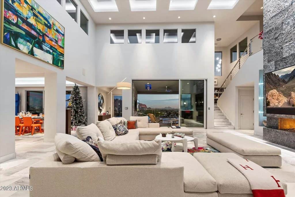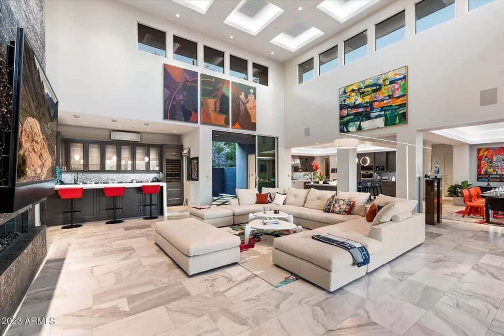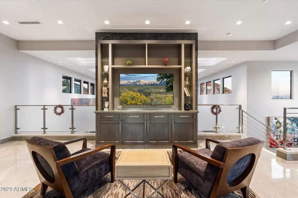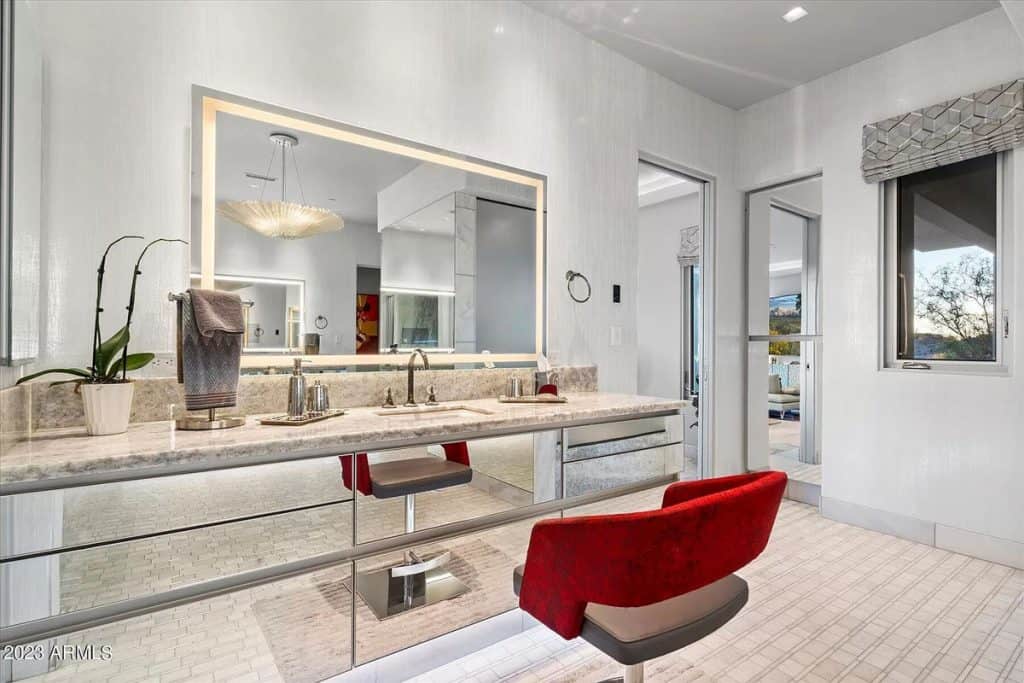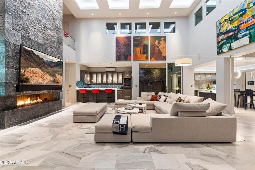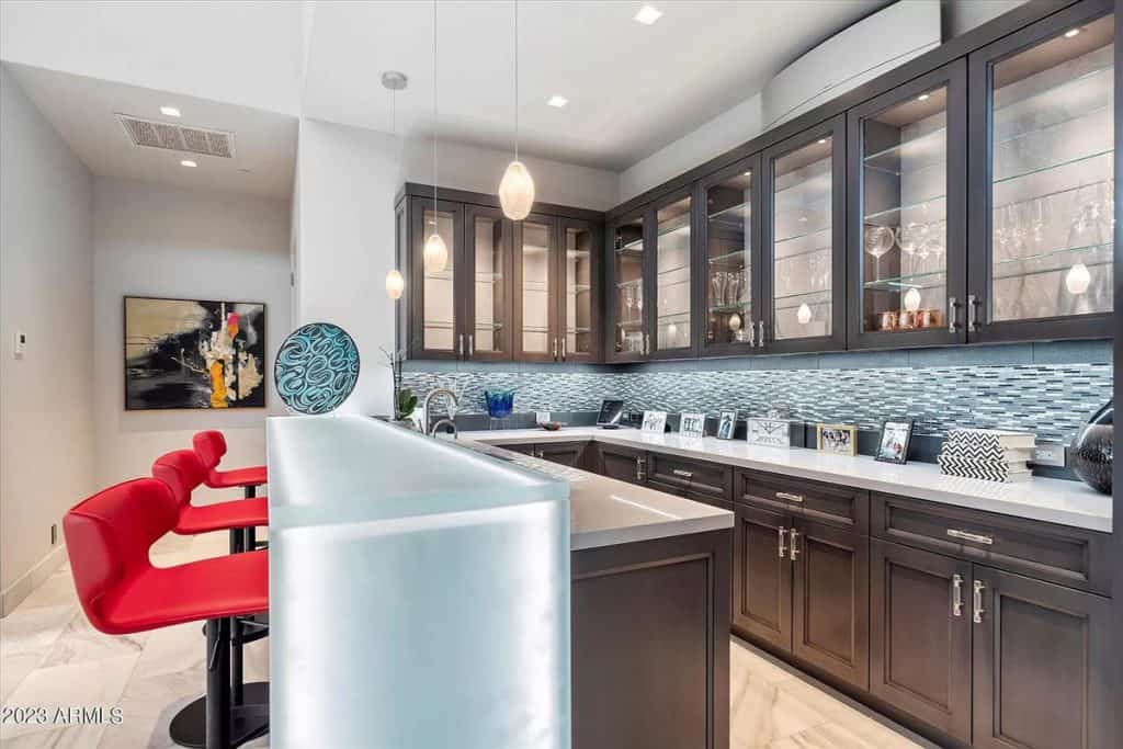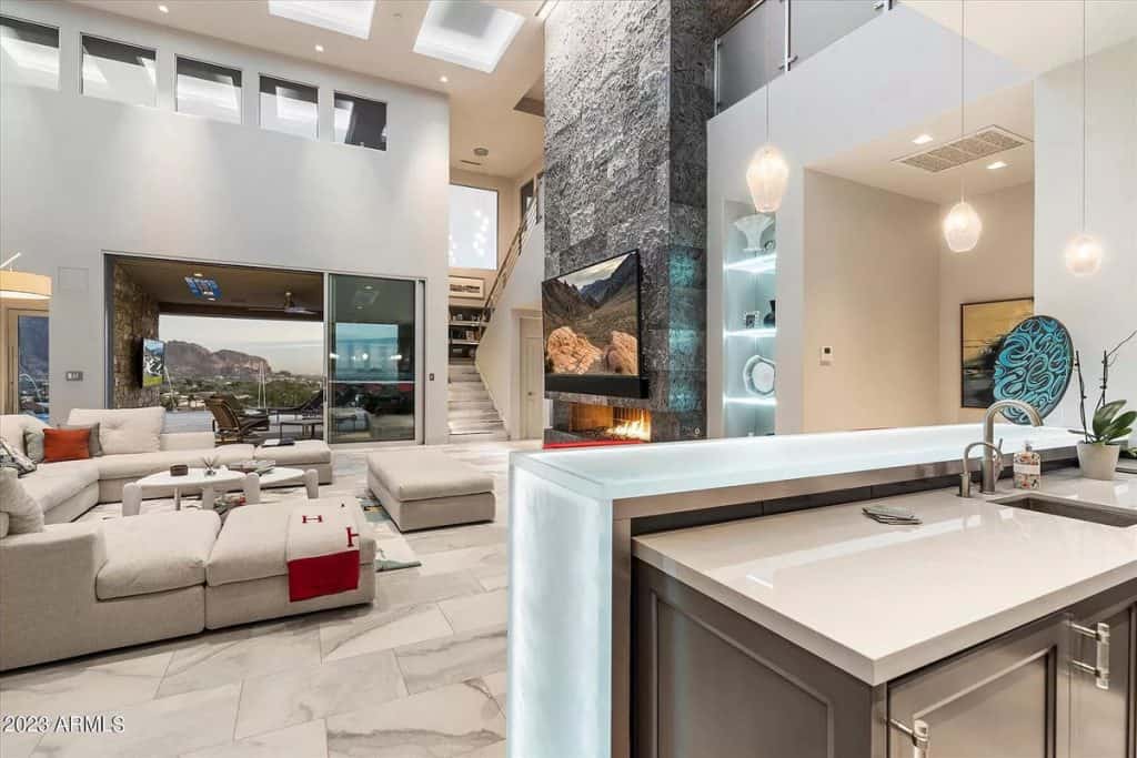 Stunning City Lights and Camelback Mountain Views await you in this exclusive Guard Gated community of Paradise Reserves. Nestled on just under 2.2 acres of picturesque hillside, this stunning property seamlessly blends in with the surrounding newly built custom homes. Prepare to be amazed by the luxurious upgrades that await you, from the intricate tilework to the mesmerizing stone waterfall. Step inside the 25-ft great room and be captivated by its beauty. The custom glass underlit bar adds a touch of sophistication, while the seamless integration of indoor and outdoor spaces allows you to enjoy the infinity-edge pool from the comfort of your own home. The chef’s kitchen, featuring a geo-lux quartz island, is perfect for entertaining guests. Retreat to the elegant primary suite with its custom closets, private balconies, and indulge in the ultimate relaxation in the theater and gym. Located in a prestigious guard-gated community in Paradise Valley, just minutes away from premier shopping and dining destinations, this residence offers unparalleled privacy, elegance, and security. Take a closer look at its motion video, features, and benefits to truly appreciate its magnificence.