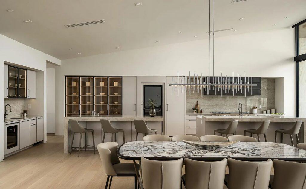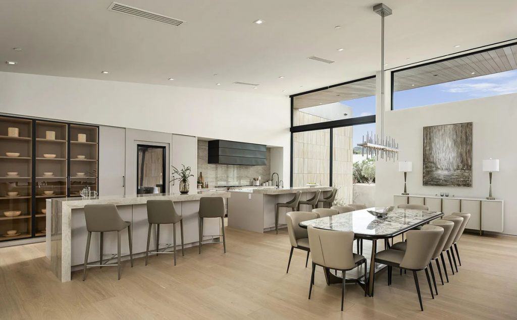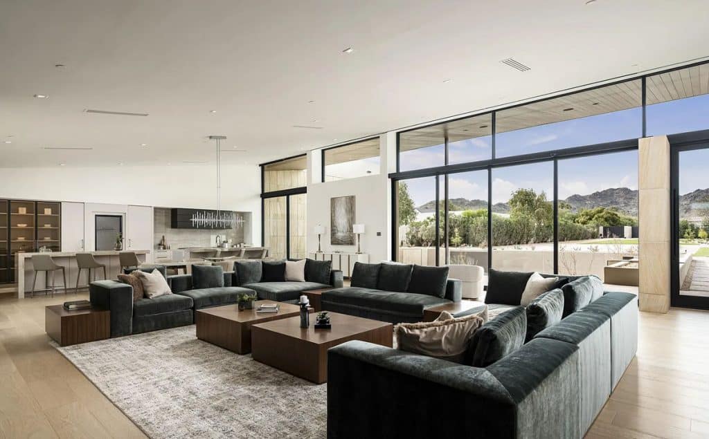 Inside, you’ll discover professional-grade amenities that are seldom found in a private home, such as a complete indoor basketball court, a three-lane shooting range, a two-lane bowling alley, a 12-seat Dolby theater, a golf simulator, and a wellness center featuring a sauna, steam room, and cold plunge, along with parking for up to 50 vehicles.