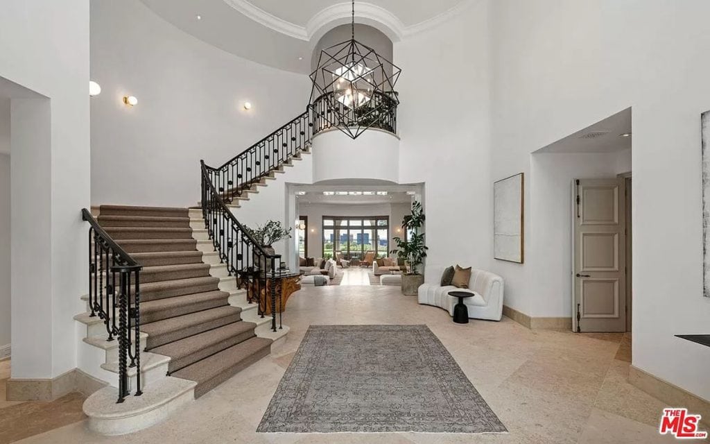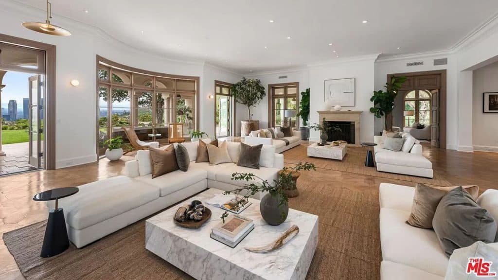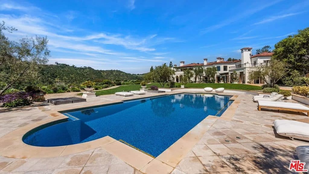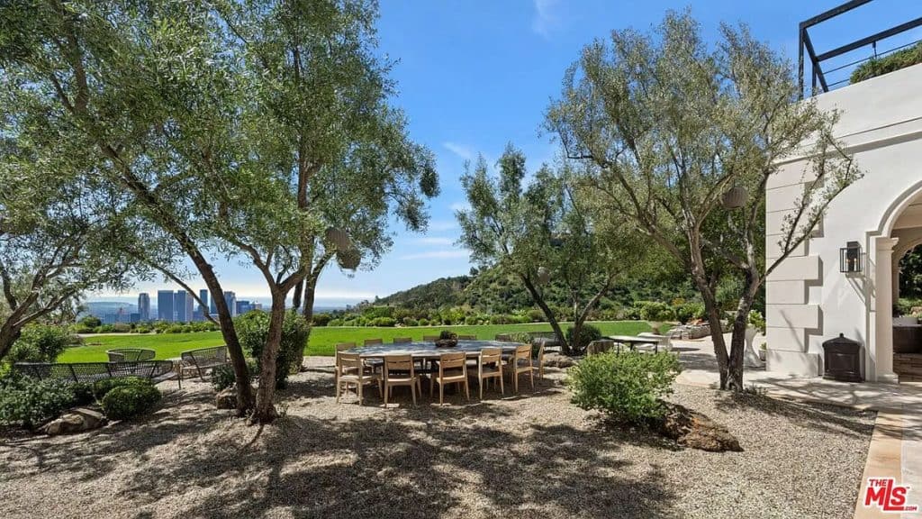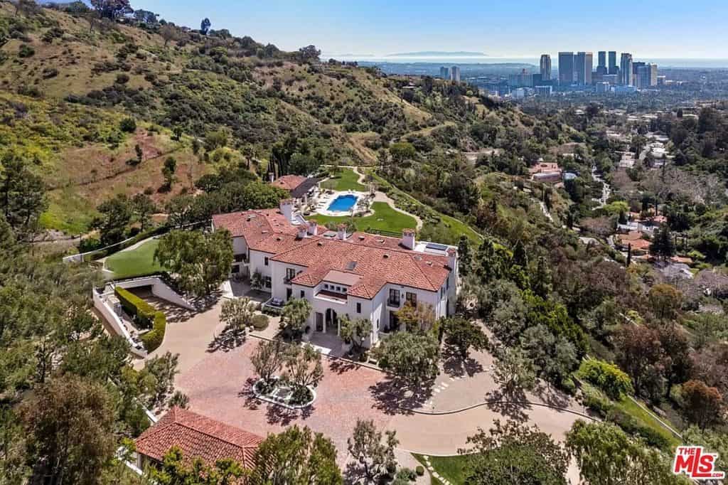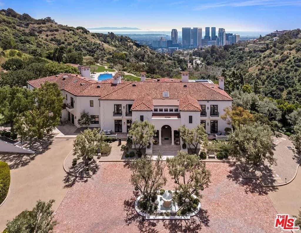 Tucked away down a secluded private driveway, this stunning estate is situated on nearly three acres of land, offering unparalleled privacy and security. With approximately 25,000 SF of living space, this expansive property is ideal for hosting lavish events and displaying top-tier art collections. Every main room boasts breathtaking canyon, city, and ocean views, all overlooking around 20 acres of beautifully landscaped gardens. The main residence includes 7 bedrooms, 13 bathrooms, formal living and dining areas, a gourmet kitchen with breakfast nook, a library, and 2 family rooms. Modern amenities abound, such as an 11-car garage, an elevator, a wine cellar, a gym, and a game room. Completing the estate is a pool/guest house with a mosaic-tiled pool and indoor/outdoor kitchen, a hidden tennis court, and an orchard.