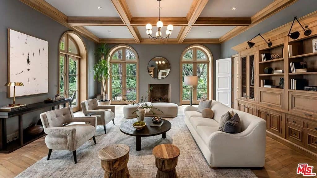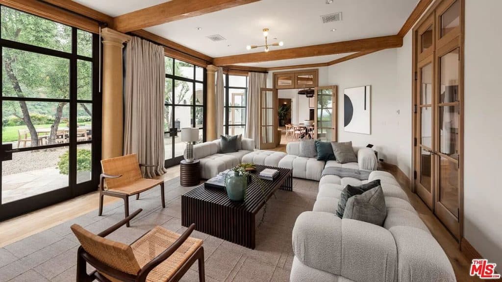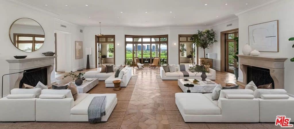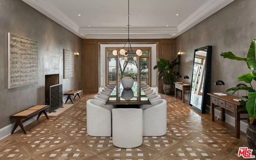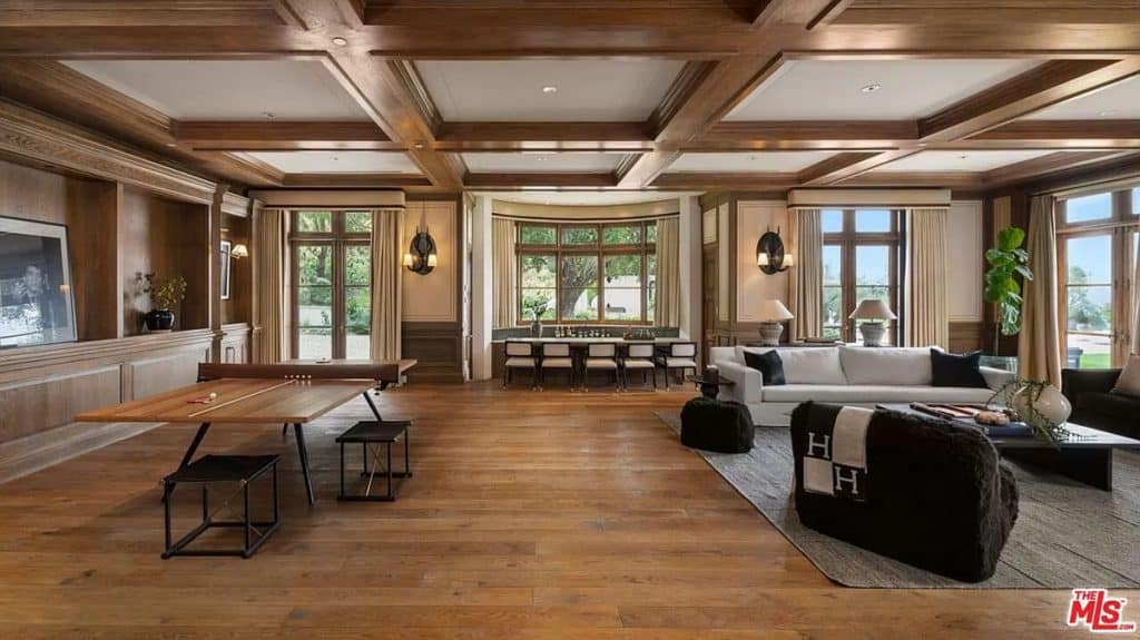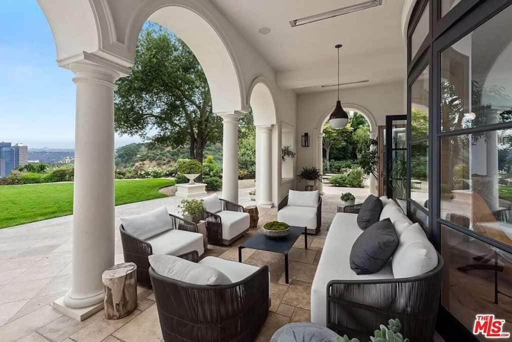 Tucked away down a secluded private driveway, this stunning estate is situated on nearly three acres of land, offering unparalleled privacy and security. With approximately 25,000 SF of living space, this expansive property is ideal for hosting lavish events and displaying top-tier art collections. Every main room boasts breathtaking canyon, city, and ocean views, all overlooking around 20 acres of beautifully landscaped gardens. The main residence includes 7 bedrooms, 13 bathrooms, formal living and dining areas, a gourmet kitchen with breakfast nook, a library, and 2 family rooms. Modern amenities abound, such as an 11-car garage, an elevator, a wine cellar, a gym, and a game room. Completing the estate is a pool/guest house with a mosaic-tiled pool and indoor/outdoor kitchen, a hidden tennis court, and an orchard.