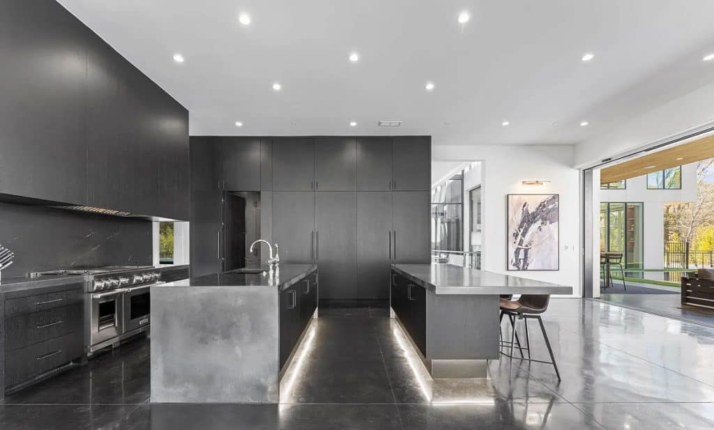 A floating concrete motor court creates a stunning first impression, establishing the tone for the home’s architectural appeal. Inside, spacious open living areas are defined by sleek lines and expansive glass walls, allowing for a seamless flow between the indoor and outdoor spaces, showcasing views of the infinity-edge pool, elegant gardens, courtyard, and vast lawn. Tucked away and secured by two gated entrances, this residence also features two detached living areas on the property that can serve as a guest suite, studio, office, or more. Equipped with state-of-the-art HVAC and Audio/Video systems, along with a 2,800 square foot subterranean garage.