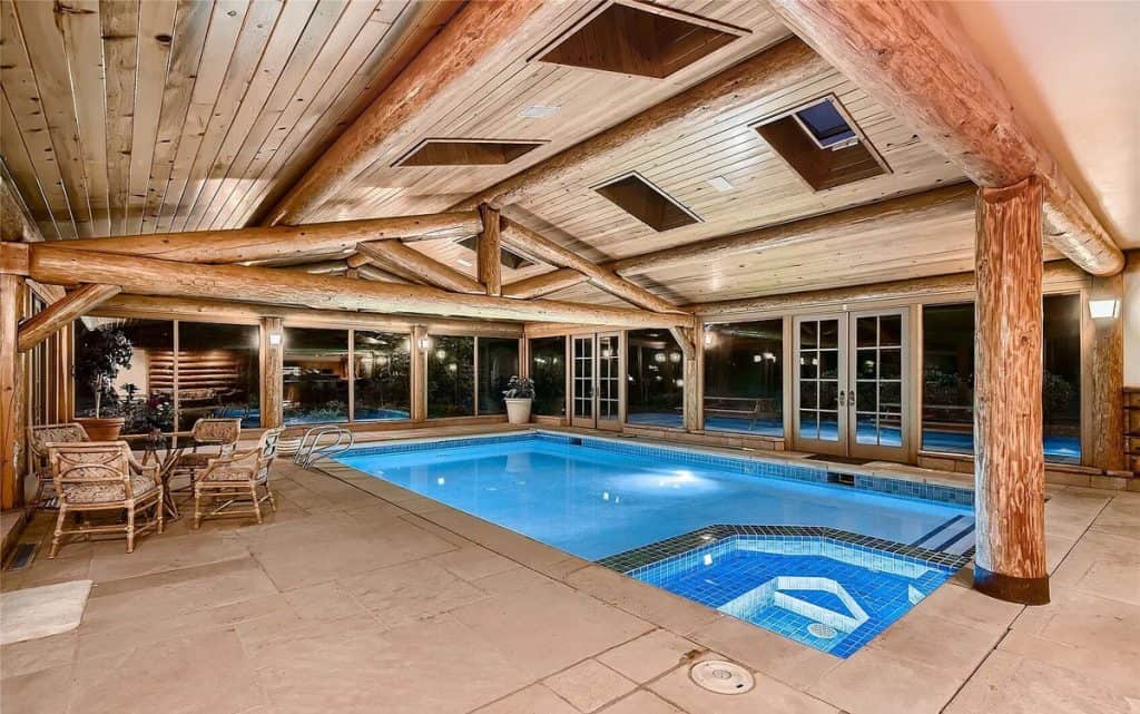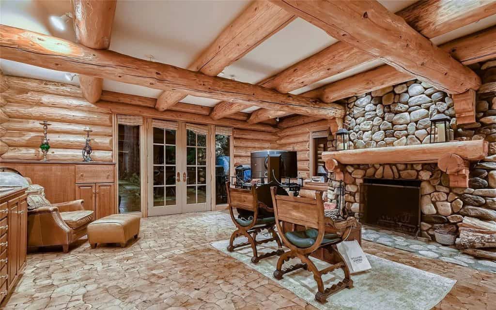 Nestled on 36 acres of breathtaking land, it boasts 800 feet of riverfront. Most rooms in the house offer stunning views of the surrounding landscape. As you enter, you’re greeted by a lovely foyer that leads into an impressive interior featuring travertine floors and soaring ceilings. The expansive kitchen includes a generous island and a great space for gatherings. You’ll also find magnificent marble and river rock fireplaces throughout. The main bedroom boasts a spacious ensuite bathroom and an elegant dressing room. Enjoy an indoor pool that can be used year-round. The gated entrance provides privacy, making it ideal for a private estate with multiple homes or as a venue for events and retreats.