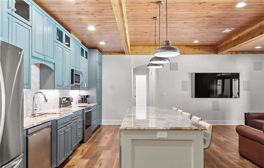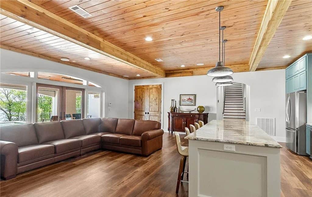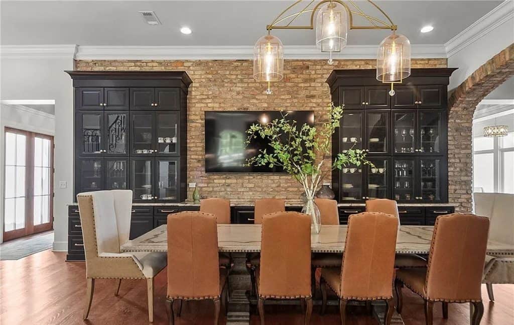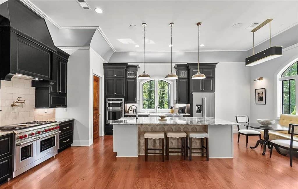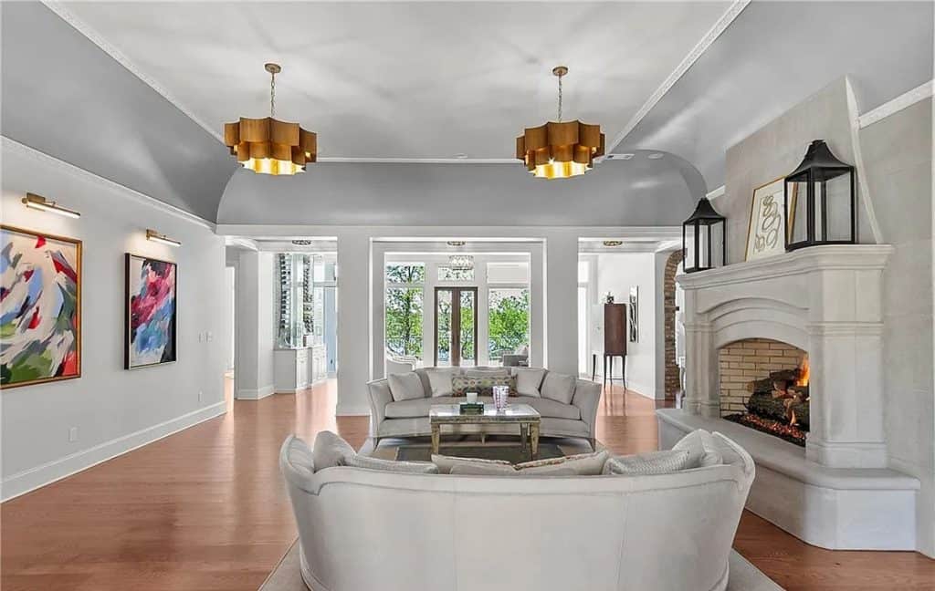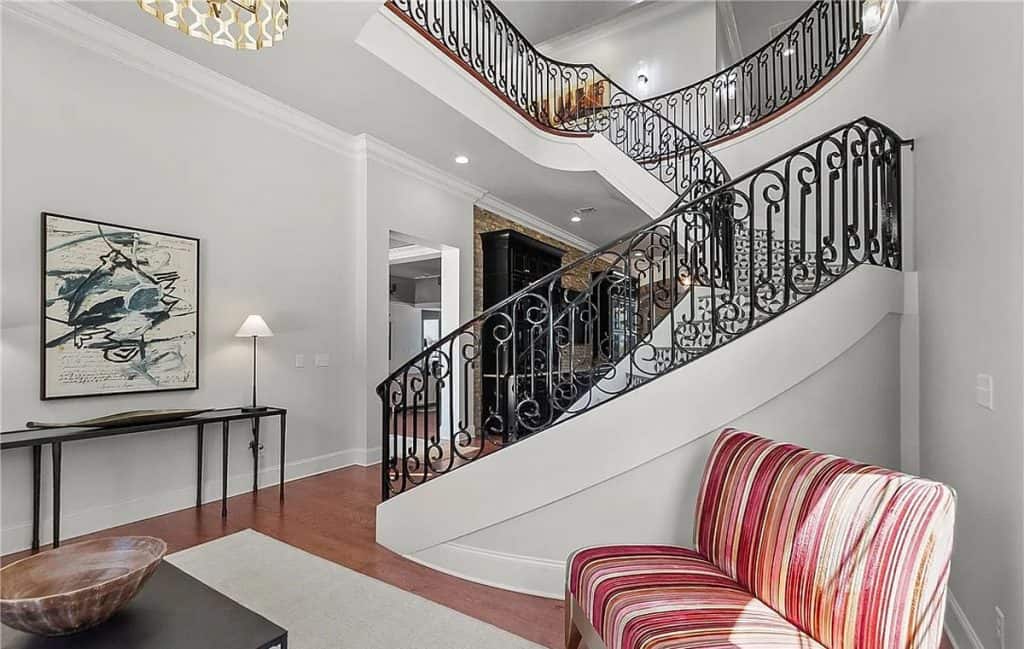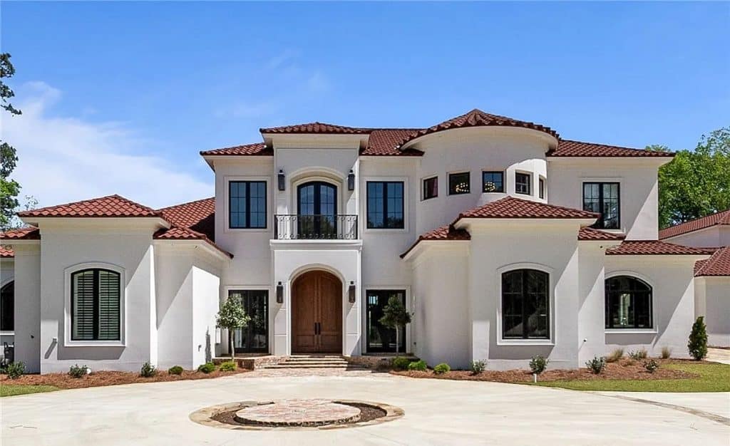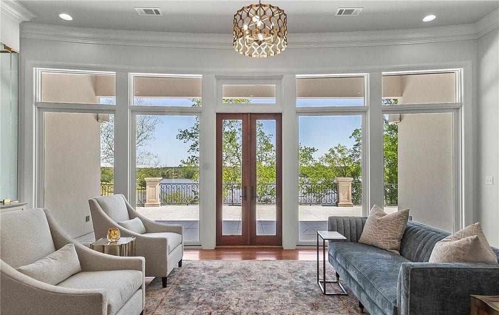 Exquisite crown molding, custom tile designs, and elegant finishes showcase timeless artistry. Revel in the generous living spaces, a formal dining area, and a cozy breakfast nook crafted for both comfort and style. The opulent primary suite features a his and hers bathroom complete with spa-like amenities. An elevator ensures effortless movement between all levels. Step outside to unwind by the shimmering saltwater pool, enveloped by lush greenery and stunning lake vistas. A beautifully appointed guest house above the garage reflects the main residence’s sophistication. The total square footage includes the guest house.