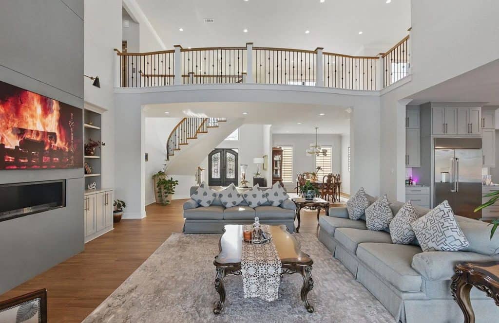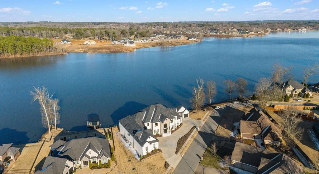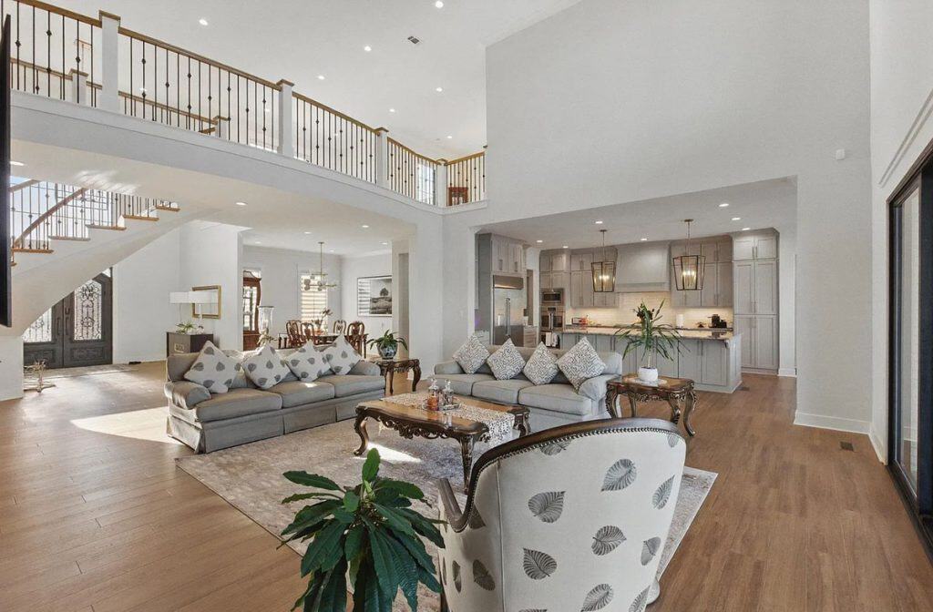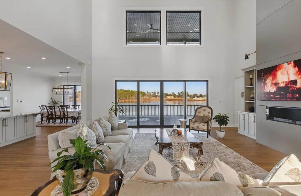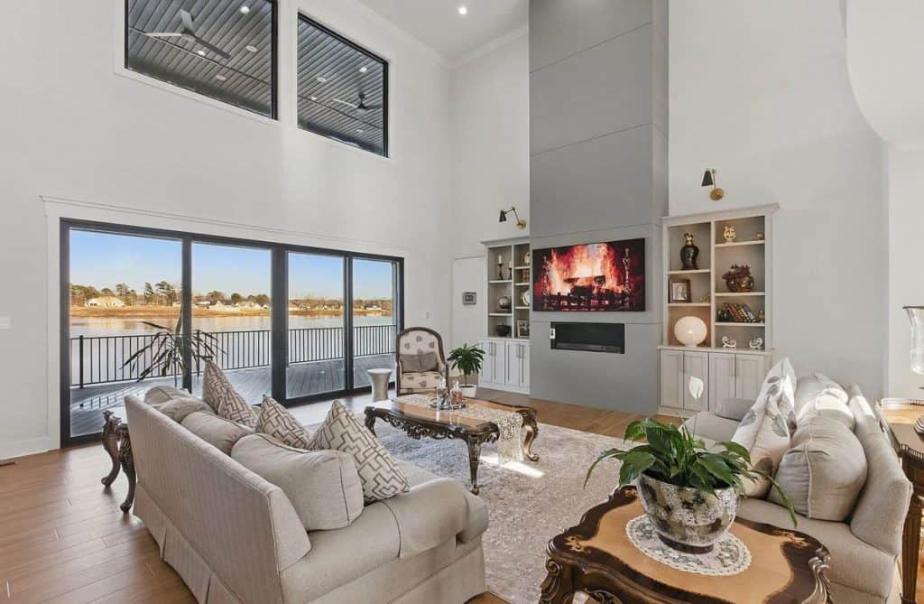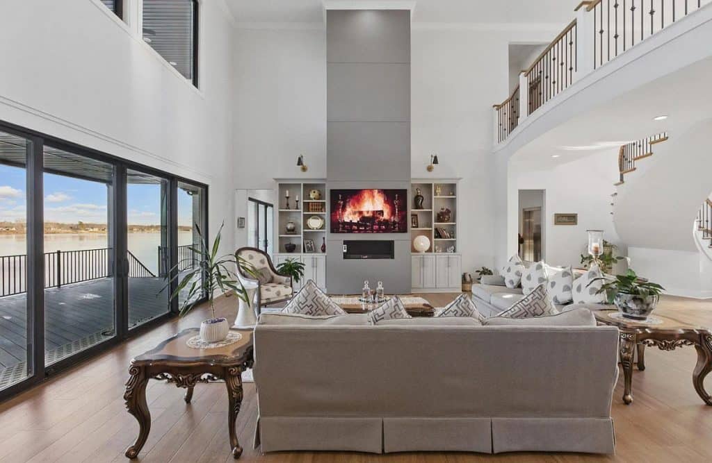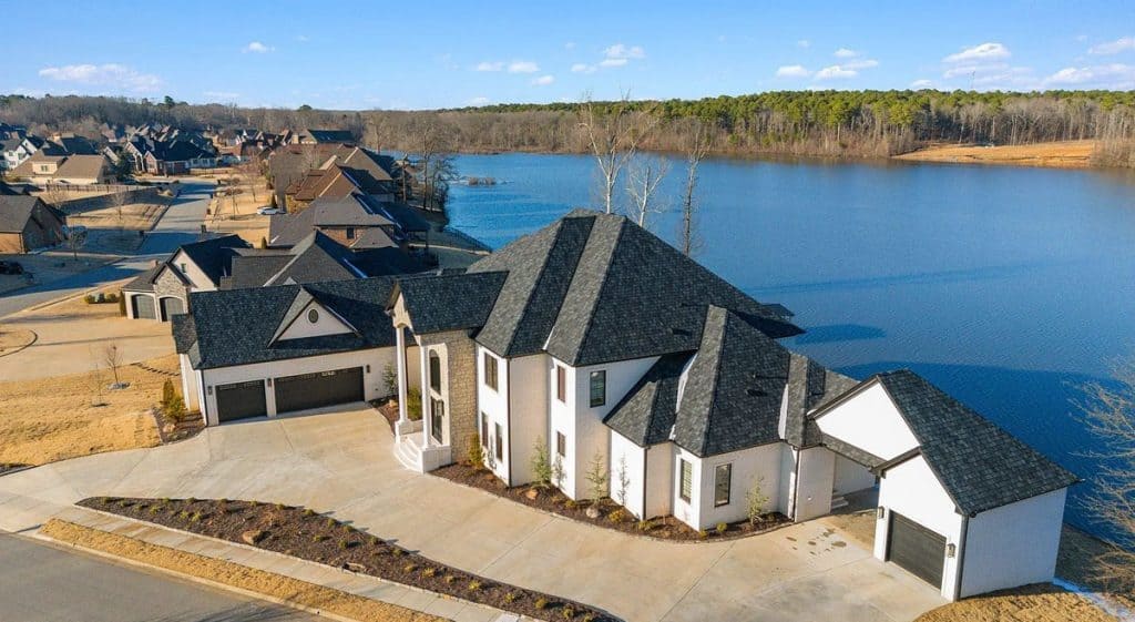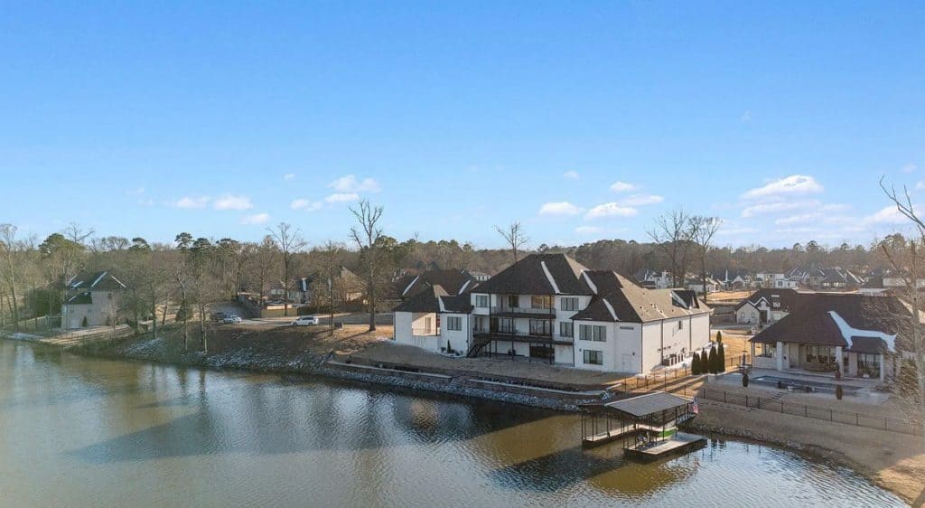This remarkable home features 7 spacious bedrooms, each with its own private en-suite bathroom, and 6 additional bathrooms for guests. The master suite is a true retreat, offering breathtaking views of the lake and a spa-inspired bathroom complete with a walk-through shower, dual vanities, and a generous walk-in closet that conveniently connects to a large laundry room. Culinary enthusiasts will appreciate the two gourmet kitchens, equipped with high-end appliances and exquisite finishes. Enjoy three levels of opulence, each with its own balcony overlooking the serene lake! This home is an entertainment paradise, featuring a theater room, game room, and a bonus room, ideal for hosting get-togethers or spending quality time with family. It includes a custom elevator that provides access to all three levels.