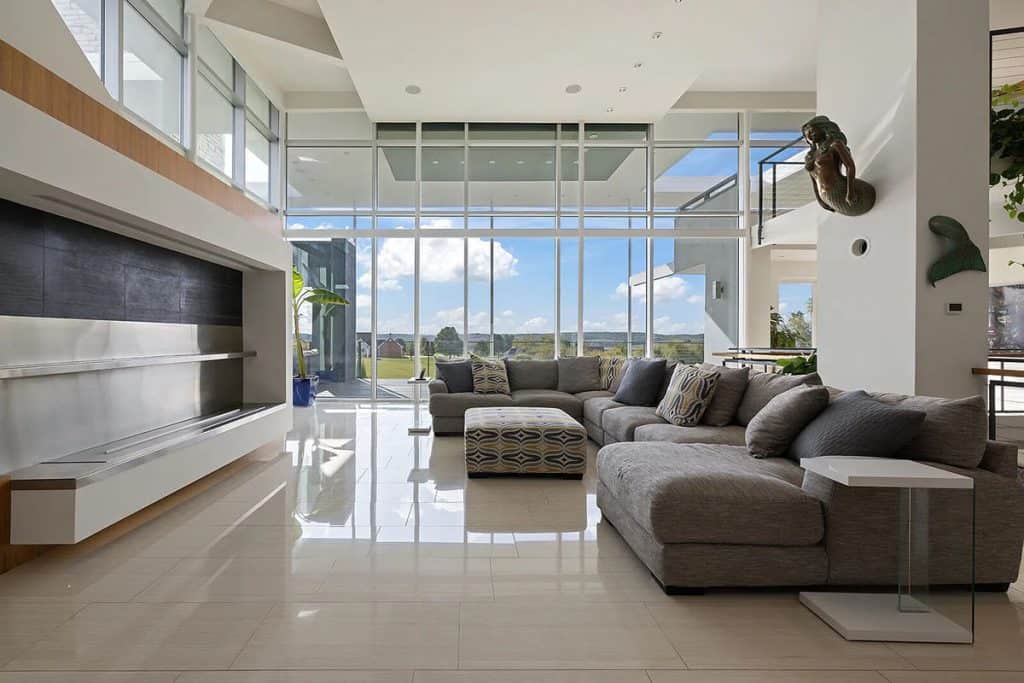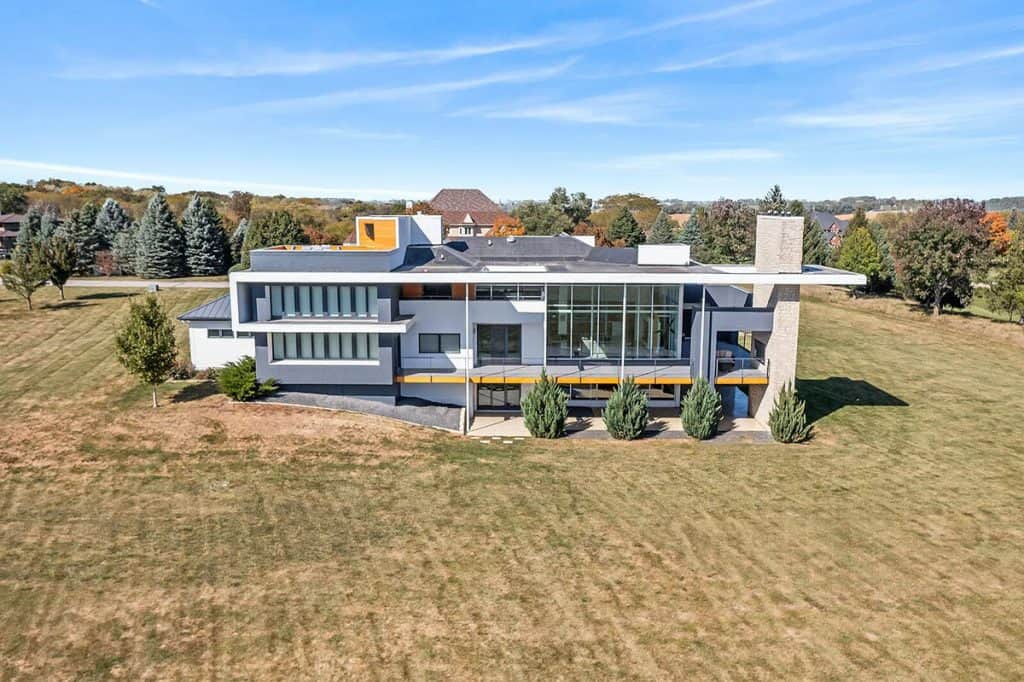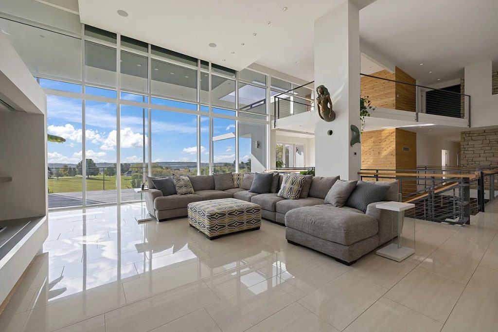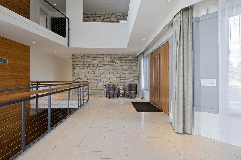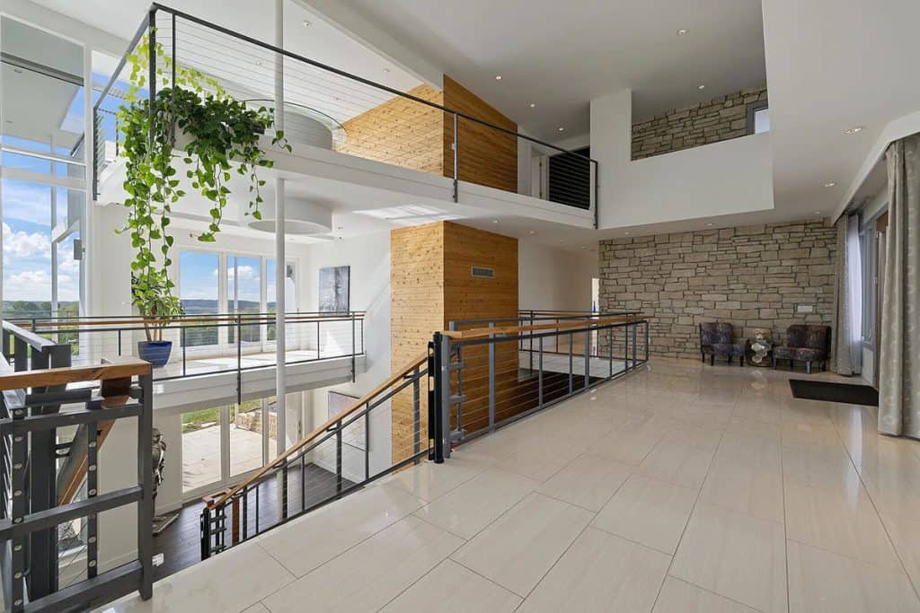 This unique home boasts 5 bedrooms, each with its own en suite bathroom, and a total of 7 baths, all set on a stunning 5.4-acre lot with breathtaking panoramic views. The main level welcomes you with a great room that showcases floor-to-ceiling windows and a cozy fireplace, complete with a projector and drop-down screen for movie nights. The master bedroom is a true retreat, featuring vaulted ceilings, a spacious closet, a fireplace, a soaking tub, a walk-in shower, and dual sinks. The walk-out lower level includes an open staircase leading to a second family room, a wet bar, a wine cellar, an exercise room, a sauna, and a theater room.