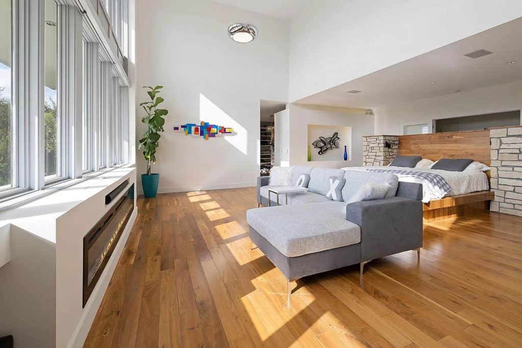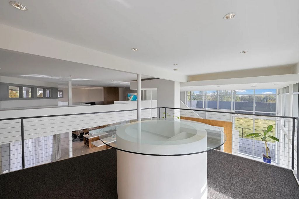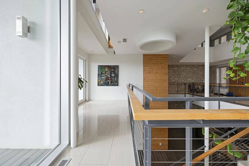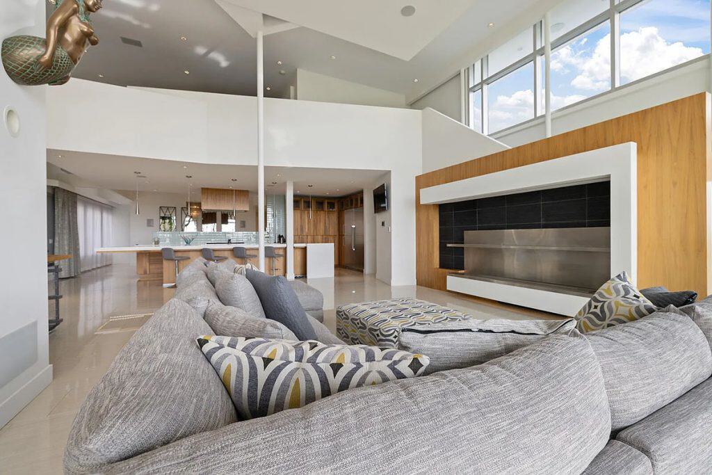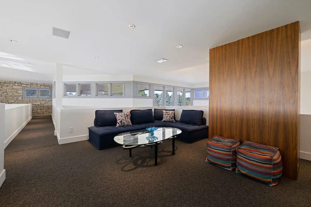 This unique home boasts 5 bedrooms, each with its own en suite bathroom, and a total of 7 baths, all set on a stunning 5.4-acre lot with breathtaking panoramic views. The main level welcomes you with a great room that showcases floor-to-ceiling windows and a cozy fireplace, complete with a projector and drop-down screen for movie nights. The master bedroom is a true retreat, featuring vaulted ceilings, a spacious closet, a fireplace, a soaking tub, a walk-in shower, and dual sinks. The walk-out lower level includes an open staircase leading to a second family room, a wet bar, a wine cellar, an exercise room, a sauna, and a theater room.