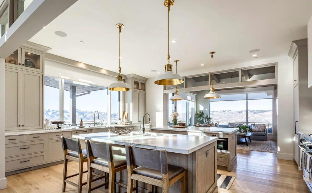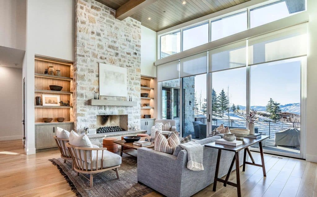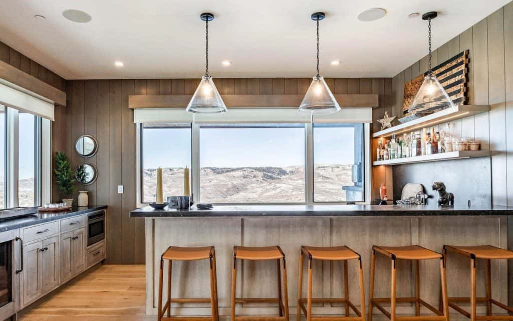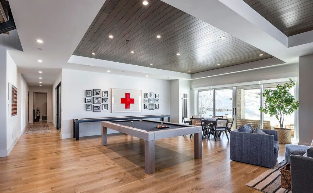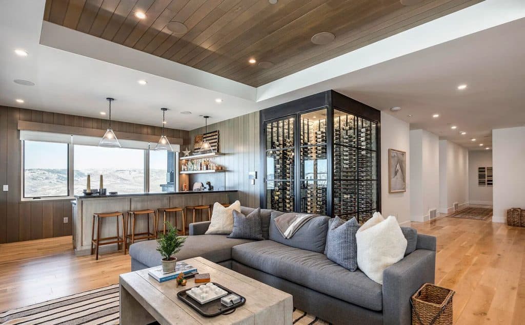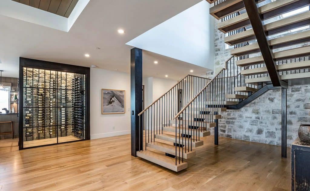 The residence exudes a sense of serene elegance, where every detail is thoughtfully considered. Sunlight pours into the space, creating an inviting atmosphere. The open layout of the living, dining, and kitchen spaces showcases stunning views of the ski resort. On the third floor, you’ll find two spacious offices that create a peaceful work environment, complete with a shared heated deck and a bathroom. The lower level is designed for entertainment and leisure, featuring a modern gym and a custom golf simulator for year-round enjoyment. Heated decks and patios provide convenient access to the outdoors in every season. This home boasts a chef’s paradise kitchen equipped with high-end appliances and two spacious islands, along with a wine cellar and several living areas. It also features a three-car garage with a heated motor court. The luxurious atmosphere is further elevated by exquisite details such as custom cabinetry, natural stone accents, and beautiful hardwood floors.