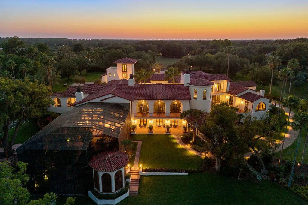 Welcome to a legendary estate, where timeless sophistication harmonizes with the peaceful beauty of nature. From the moment you step in, you’ll feel the grandeur of the property, the unmatched craftsmanship, thoughtful design, and stunning views that characterize this remarkable residence. A magnificent entrance establishes a dignified atmosphere, leading to refined living spaces and carefully crafted courtyards that provide peace and privacy. Offering an immersive journey through American heritage and cultural sophistication, the home features a carefully recreated Oval Office and a scaled-down version of the iconic Tampa Theatre, providing a cinematic atmosphere filled with intricate details. With resort-style amenities, it boasts a lagoon-inspired, tiered-level pool that includes a cascading waterfall and a zero-entry edge, along with expansive outdoor entertaining spaces and tranquil lake views, making it a perfect haven for luxurious living. This stunning estate is ideal for a discerning collector, a history lover, or a visionary in search of a lasting architectural legacy in the Tampa Bay area.