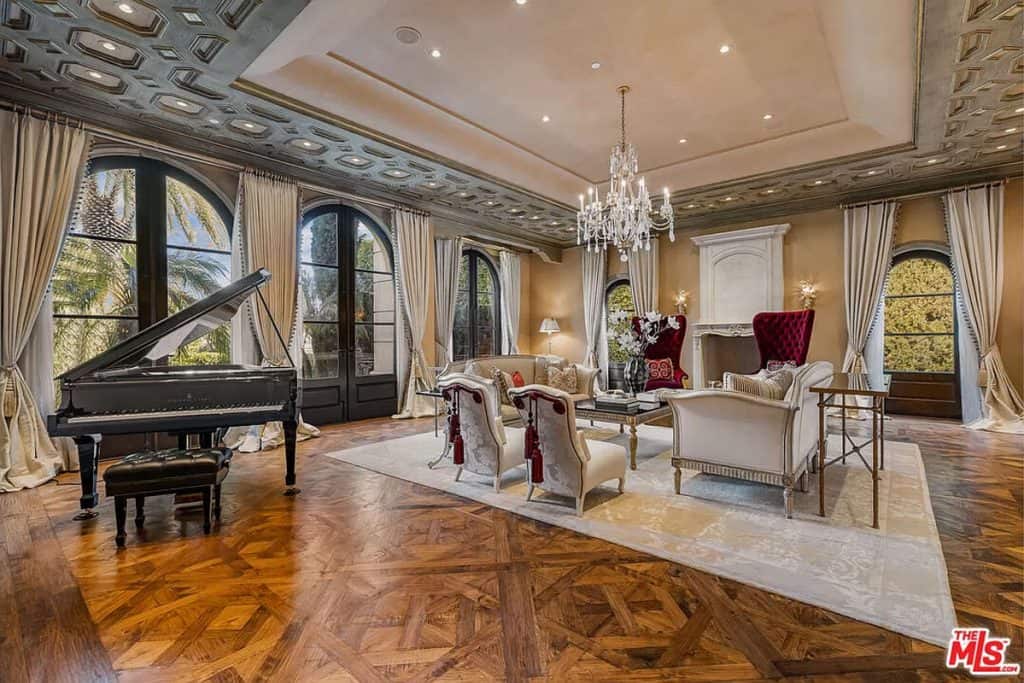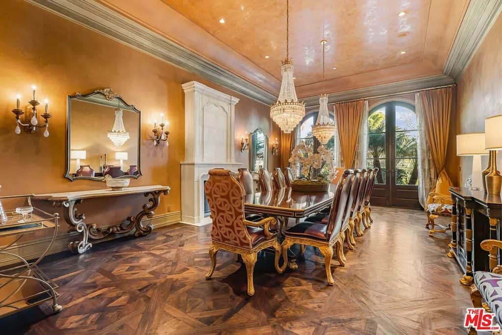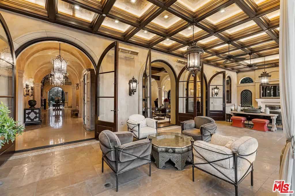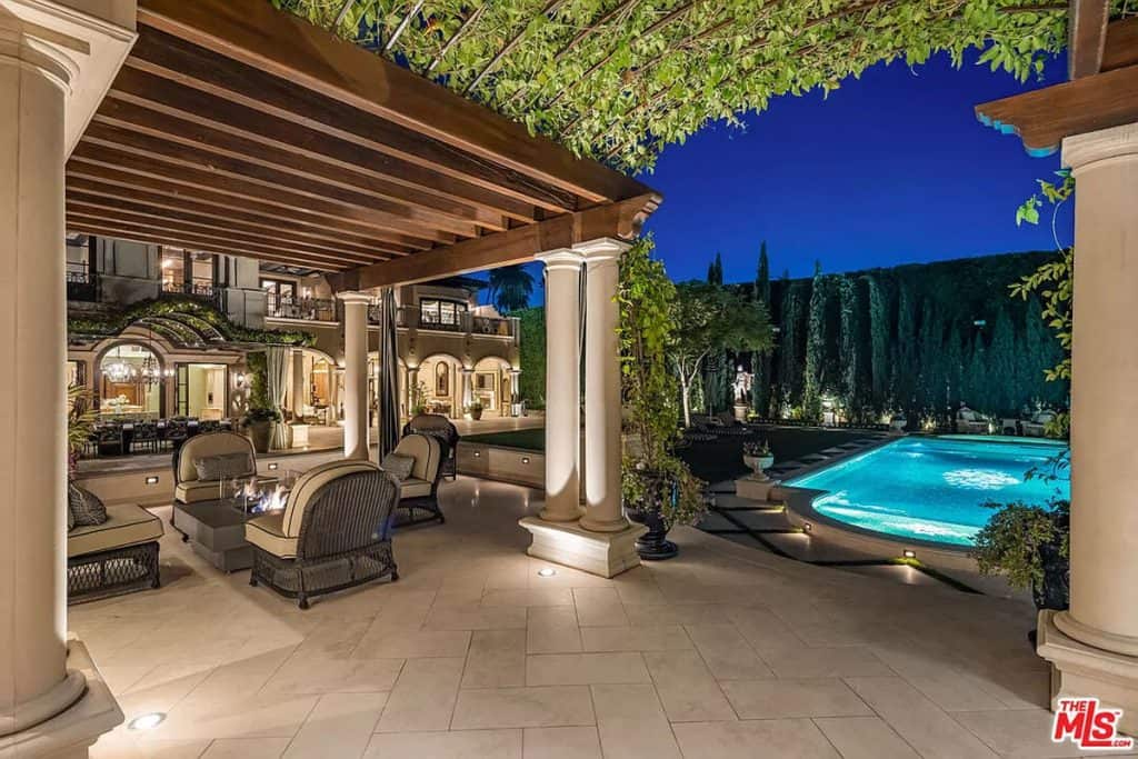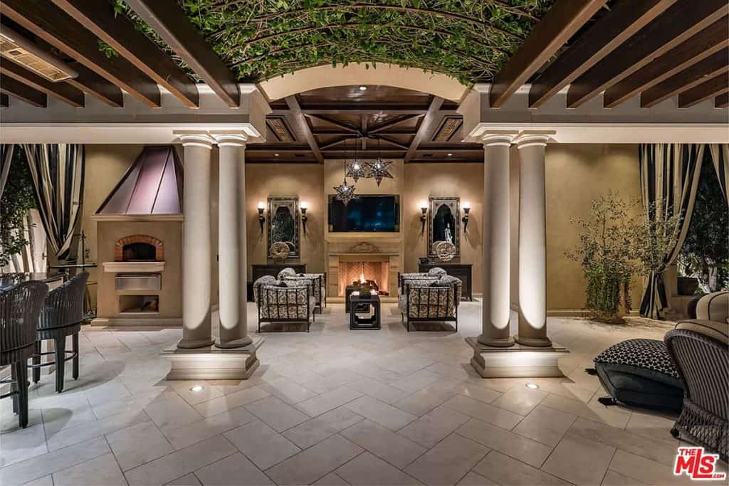 This stunning Italian-inspired estate is a masterpiece of design and craftsmanship. Spanning over 23,000 square feet, both inside and out, it exudes sophistication and luxury. It’s a one-of-a-kind opportunity for discerning buyers who crave prestige. With 3 stories and an elevator, this 7-bedroom residence offers an impressive 14 bathrooms, 8 fireplaces, 3 gourmet kitchens, a unique movie theater, wine cellar, executive home office, game room, underground 7-car garage, and a wellness retreat complete with a sauna, powder room, yoga/massage room, and gym. What sets this estate apart is its seamless indoor-outdoor living. It’s perfect for entertaining, with separate guest areas that don’t disrupt the main living space. The meticulously landscaped grounds feature a magnificent marble pool adorned with custom-made SICIS Italian glass mosaic tiles. There are also two outdoor dining areas, a cozy loggia living space, and a separate cabana structure that includes a gourmet outdoor kitchen, wood-fired pizza oven, bar, and firepit.