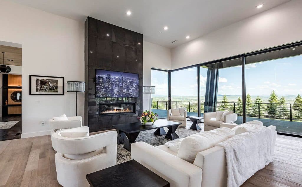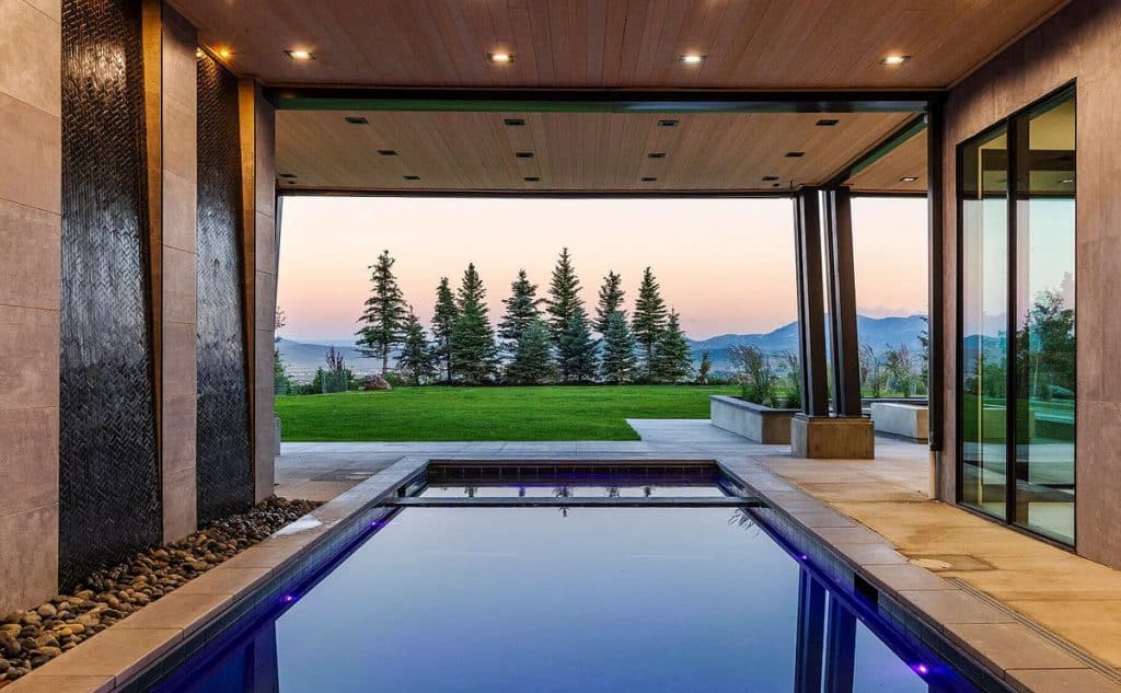 Set on 20.07 acres, this estate harmoniously blends the peace of a private mountain getaway with convenient access to urban amenities, acclaimed dining, and top-notch ski resorts. The home features a well-thought-out layout, highlighted by a roomy great room, a modern kitchen equipped with a sizable pantry and a prep kitchen, as well as an elegant office space. Outside, you can relax in a heated pool that includes a hot tub, enjoy beautiful water features, and gather around a fire pit. The property also boasts a 24,000-square-foot barn and a spacious 160′ x 80′ indoor riding arena equipped with excellent horse facilities.