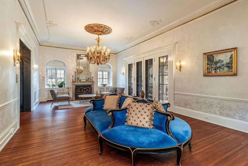 Inside, expansive living spaces unfold with a graceful, open layout. Polished hardwood floors, intricate Venetian-inspired details, and a custom chef’s kitchen create an atmosphere that is both sophisticated and inviting—perfect for everyday living and elegant entertaining.