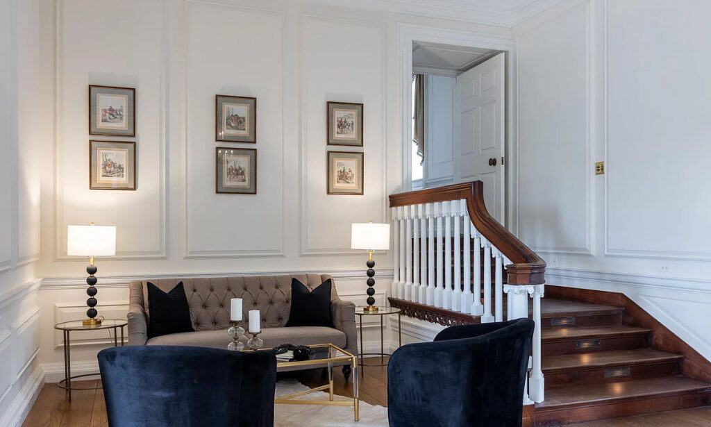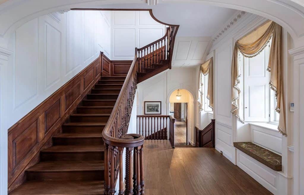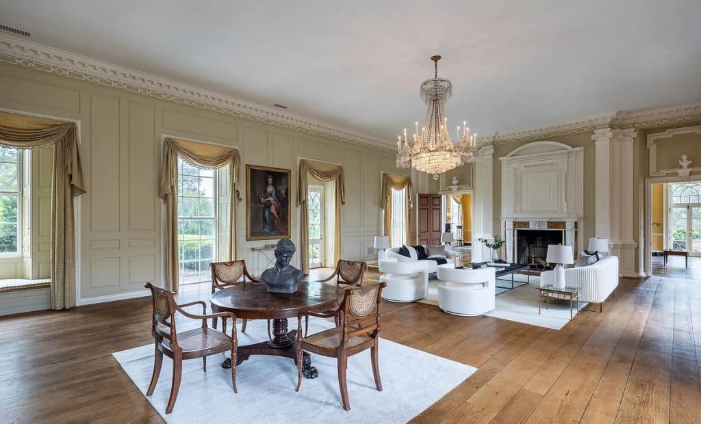 This mansion features 22 bedrooms, including 12 designated for staff. With its spacious living, dining, and ballroom areas, it provides a perfect venue for hosting gatherings, while the estate’s layout emphasizes privacy and showcases spectacular views. North Wales comprises eight residential units, featuring a magnificent carriage house with a five-bedroom apartment, equestrian facilities, serene ponds, and expansive vistas of the Blue Ridge Mountains. This estate, safeguarded by a conservation easement through the Virginia Outdoor Foundation, offers the opportunity to develop extra private recreational amenities, including a top-tier equestrian facility or a nine-hole private golf course. Recognized as one of America’s magnificent estates and a national treasure, North Wales is honored to be included in both the National Register of Historic Places and the Virginia Landmarks Register.