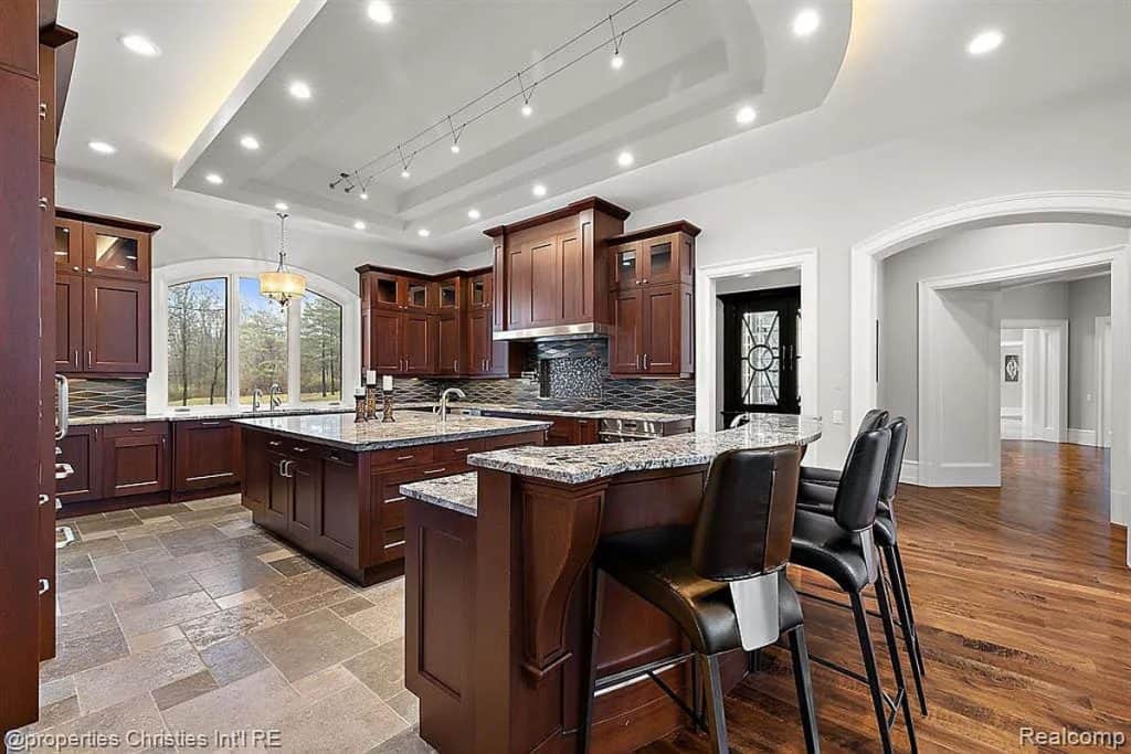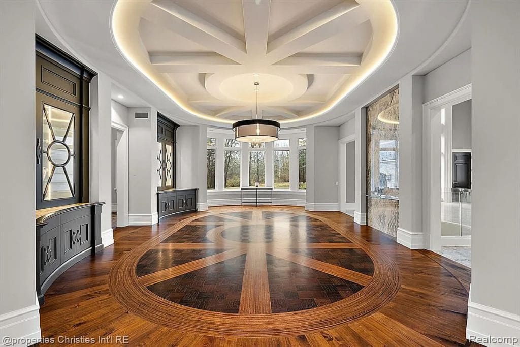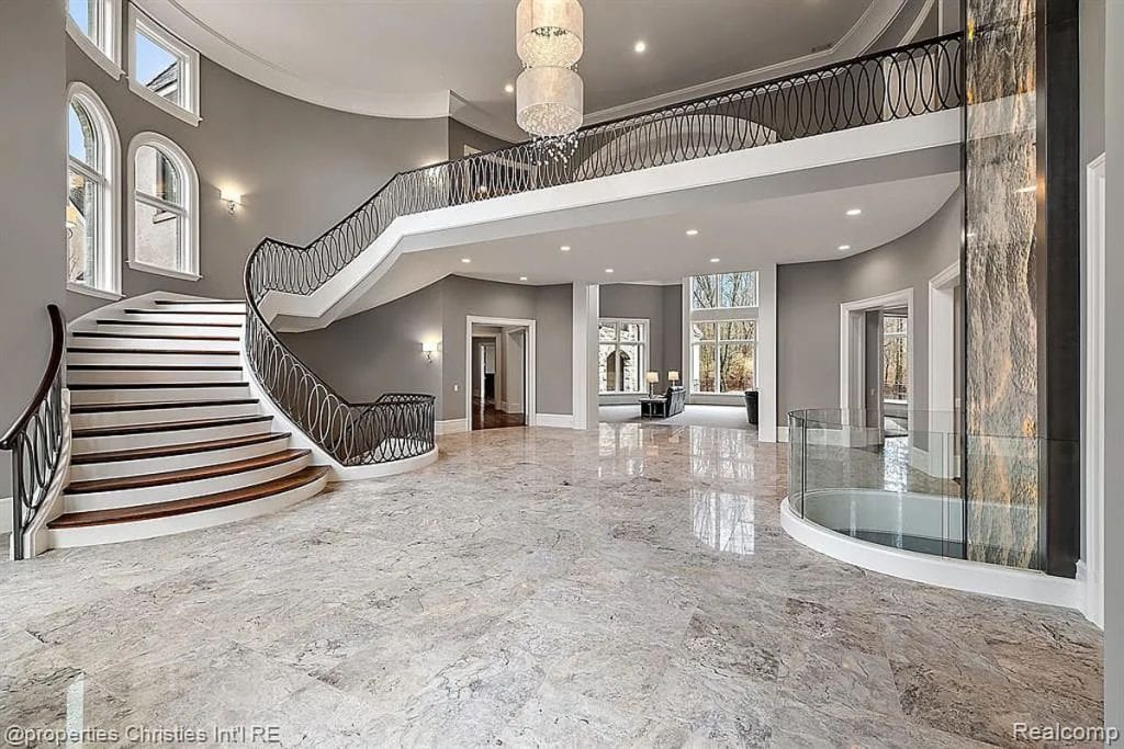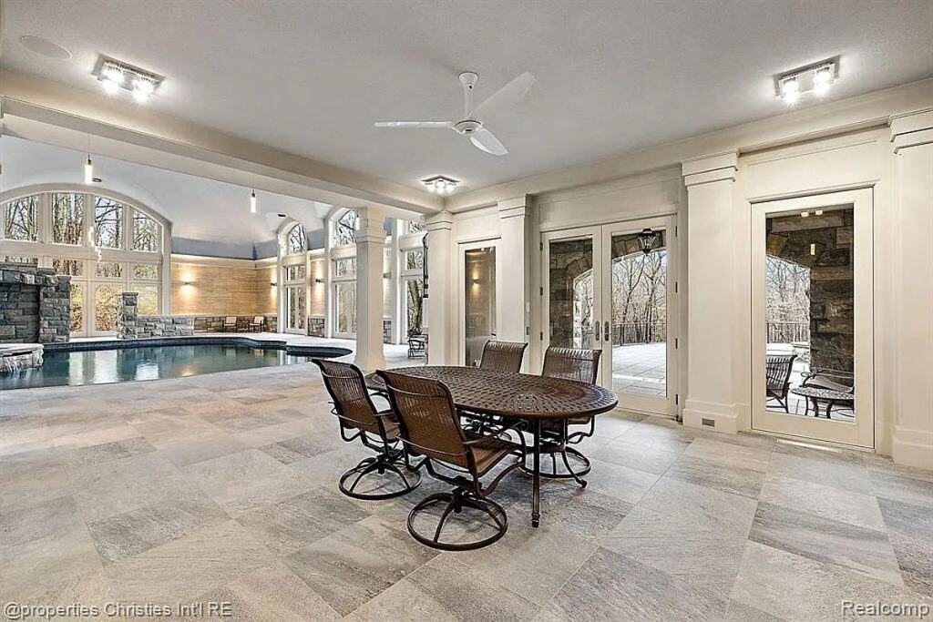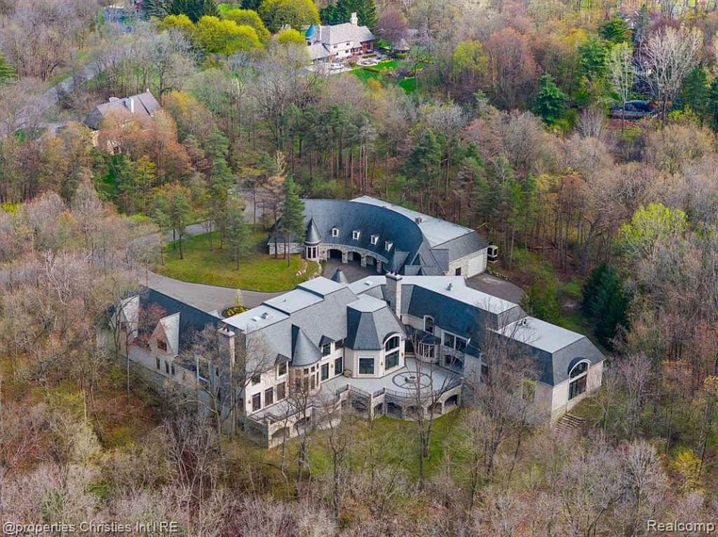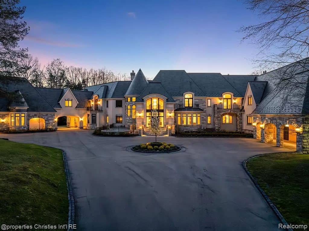 Welcome to a remarkable estate sprawled across nearly 8 acres, offering over 30,000 square feet of luxurious living space. Enter through the impressive foyer that opens up to a breathtaking main level, highlighted by a great room with exquisite woodwork. Enjoy entertainment in the first-floor theater, and unwind in your own private indoor paradise, complete with a cascading waterfall, hot tub, fully equipped kitchen, two full bathrooms, and a changing room, all within the indoor pool area. Enjoy exclusive amenities such as a private game room complete with a full bar. The property includes a distinctive garage equipped with an elevator lift that can hold more than 15 vehicles. An in-home elevator provides access to all floors, including the specially designed walkout lower level.