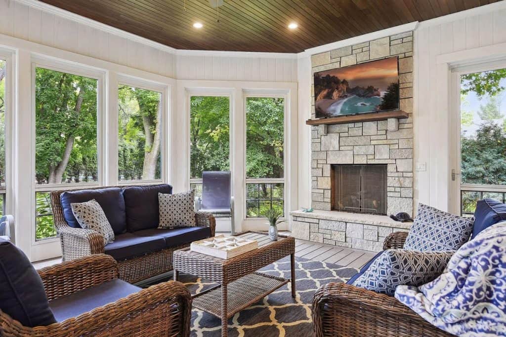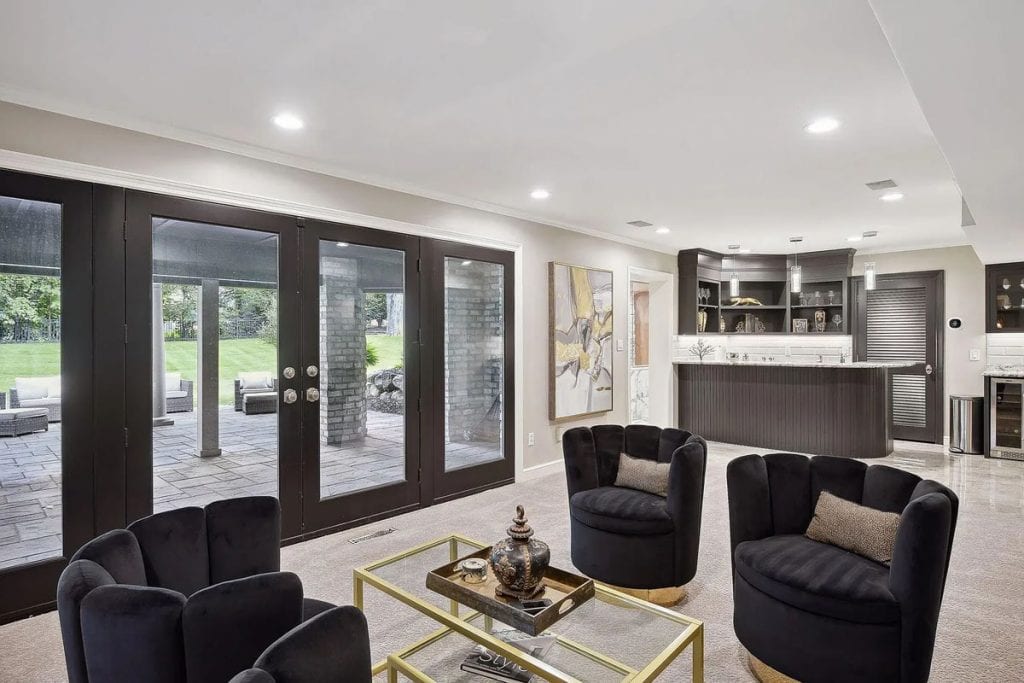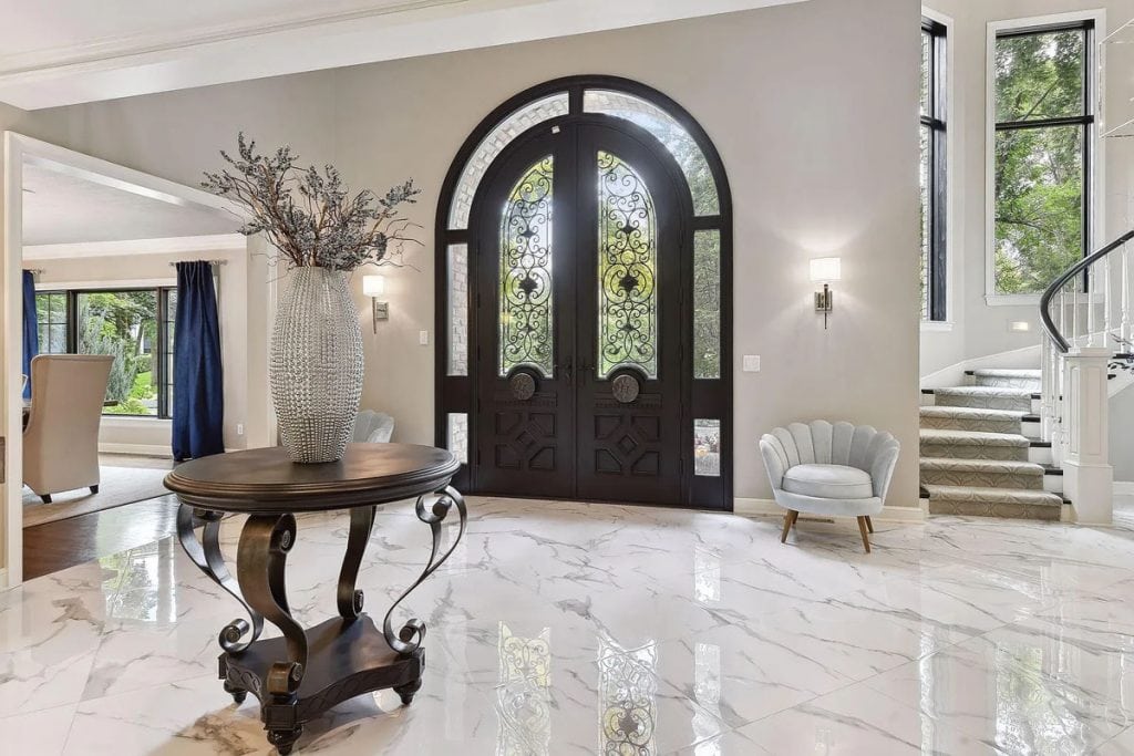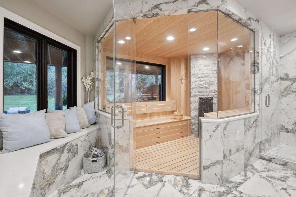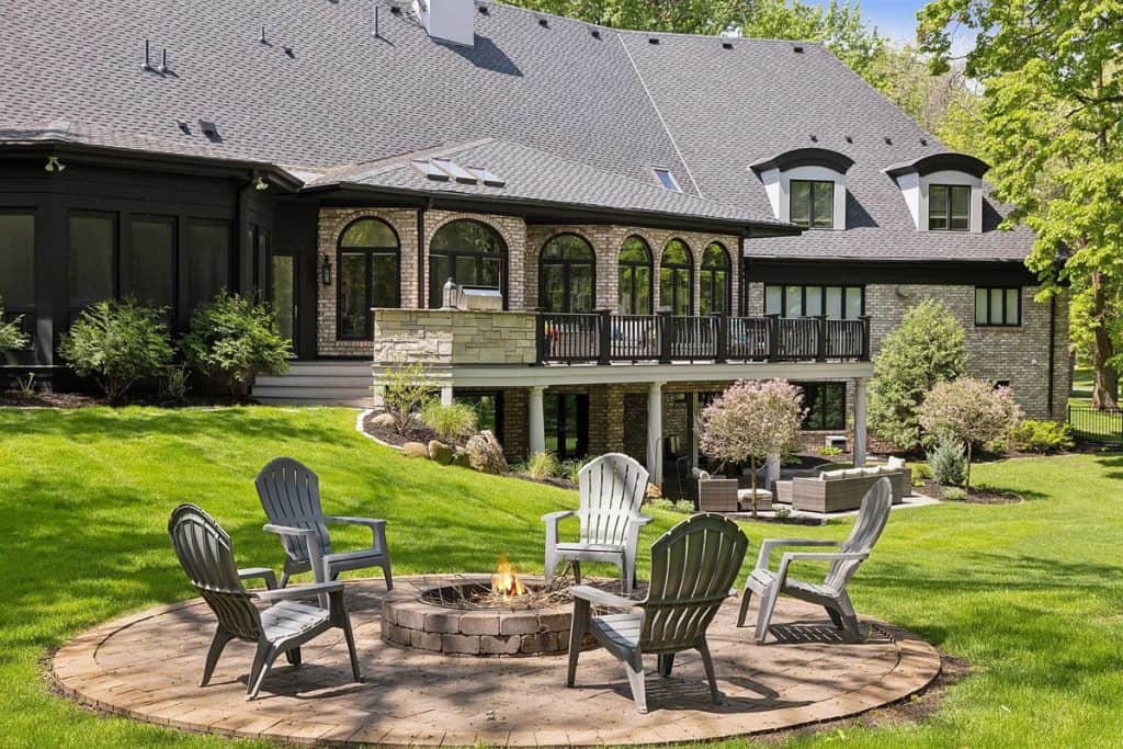 The impressive two-story foyer welcomes you, while the great room features expansive windows, beamed ceilings, and a cozy fireplace. The chef’s kitchen is a true masterpiece, complete with a center island, top-of-the-line Wolf and Sub-Zero appliances, and a convenient scullery kitchen. The opulent primary suite on the main floor boasts a spa-like bathroom. The walk-out lower level is perfect for entertaining, featuring a generous family room with a double-sided fireplace, a media space, billiards area, sauna, bar, exercise room, flexible space, and a fifth bedroom. Experience the best of outdoor living with a screened porch featuring a cozy fireplace, a deck equipped with a Viking grill, a lovely patio, and a fire pit for those chilly evenings.