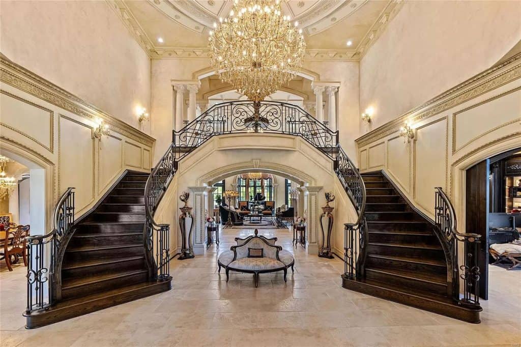 This European estate, spanning 16,500 sqft, redefines luxury living. Situated on 6 acres of beautifully landscaped grounds that back onto woods, this meticulously crafted home is a true masterpiece. From intricate wall and ceiling mouldings to crystal chandeliers and Venetian plaster, every detail has been carefully curated. The grand elevations with floor-to-ceiling millwork are truly breathtaking. The Hearth Room and Study are elegantly decorated with wood beams and hand-painted cabinetry, creating a warm and inviting atmosphere. The Kitchens, Grand Salon Bar & Dining Room are flawlessly crafted for hosting big events. The Master Wing provides opulence & seclusion with a balcony terrace. Upstairs, there are En Suite Beds, a Bunk Room, Game Room, Lounge & Kitchenette. The lower level is an entertainer’s paradise with Bowling lanes, Theatre, Rec Room, Fitness & Sauna. Outside, there’s a covered veranda, saltwater pool with a swim-up bar, tanning ledge, stone spa, waterfalls & fire features, pool house, and 2 outdoor kitchens. There’s also a Gym with a sport court & additional garage space.