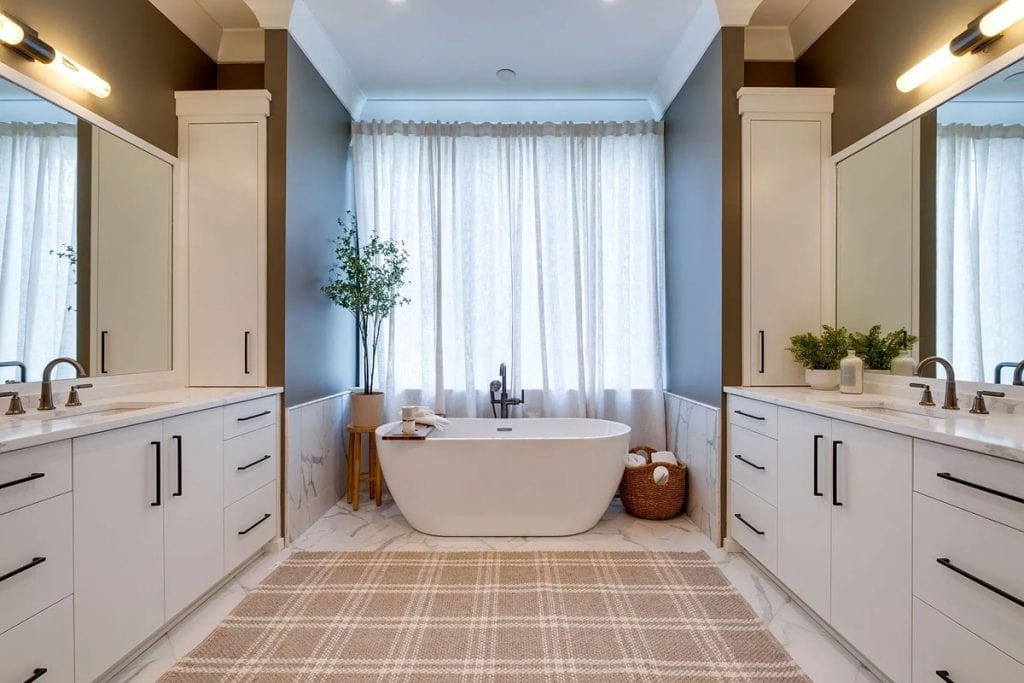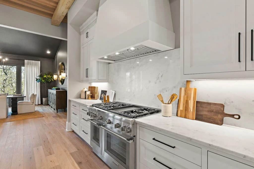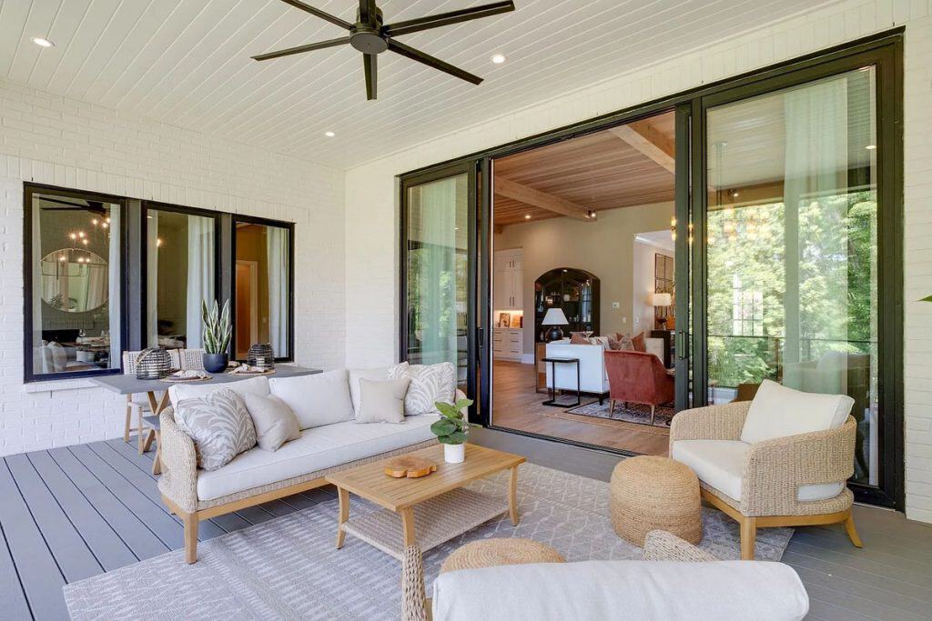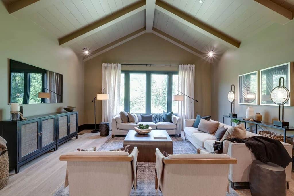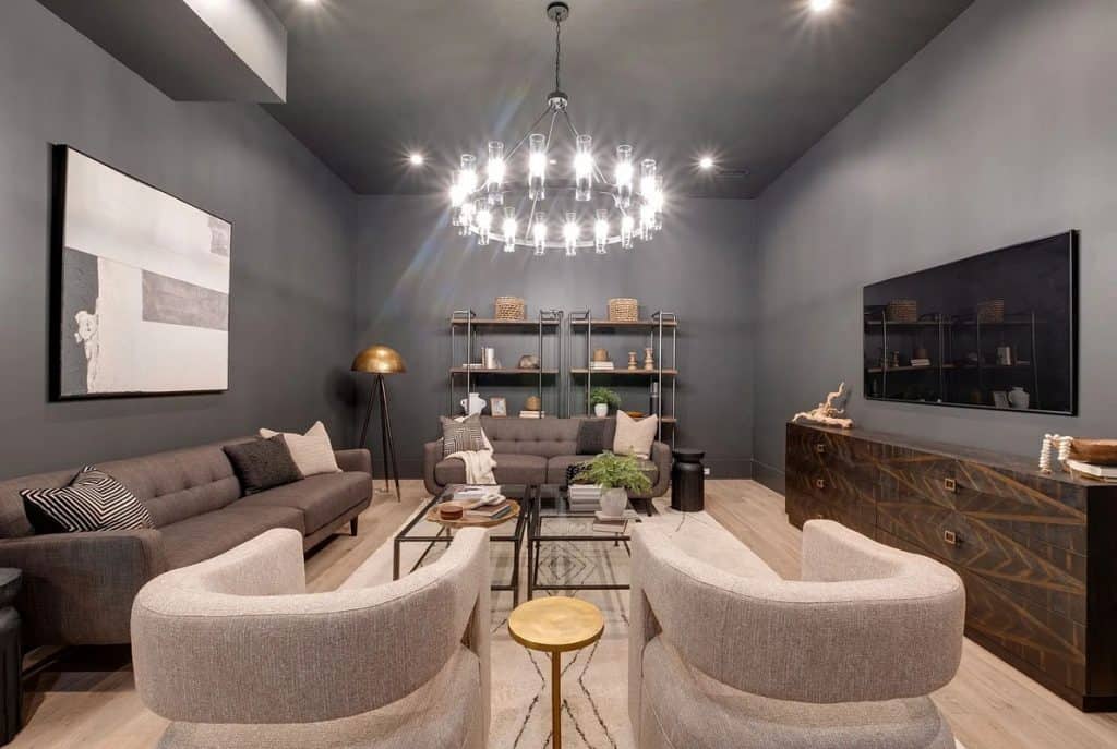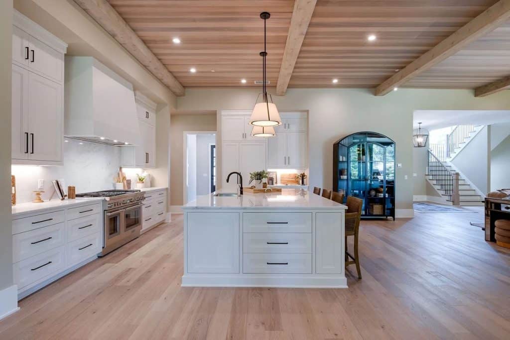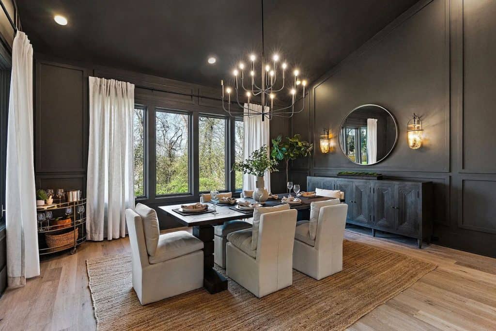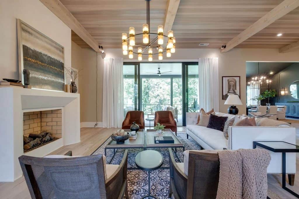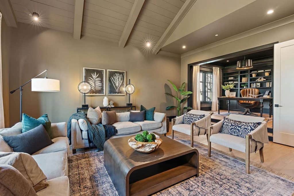 This home is incredibly grand, nestled within a gated community on nearly an acre of land. It features a spacious 3-car garage and boasts 12-foot ceilings adorned with beautiful warm white oak. The main level primary suite is vaulted and includes a luxurious soaking tub along with generous closet space. The open floor plan seamlessly combines modern design with classic sophistication. The gourmet kitchen is a chef’s paradise, complete with double ovens, a large prep kitchen, and an oversized island that will delight even the most particular culinary enthusiasts. Adjacent to the kitchen, you’ll find an au pair suite featuring its own private entrance and laundry facilities. There are covered porches with fireplaces on both the main and lower levels. The lower level, which leads out to the expansive backyard, provides ample space for a theater, fitness studio, billiards, and more.