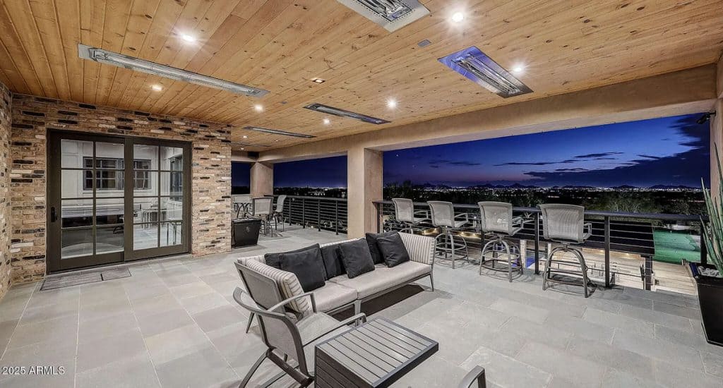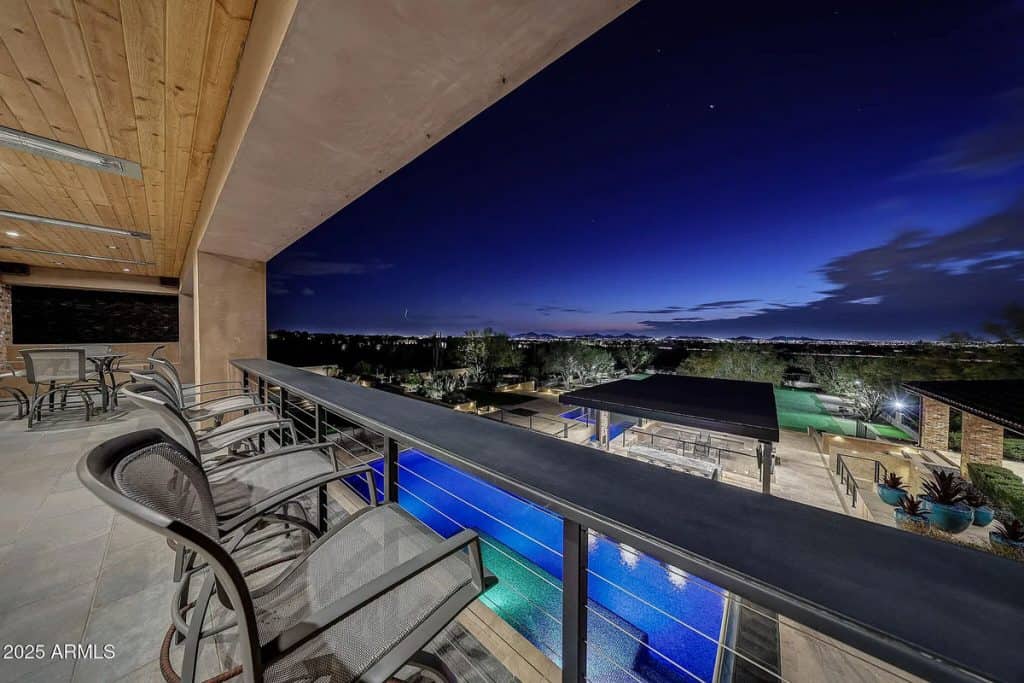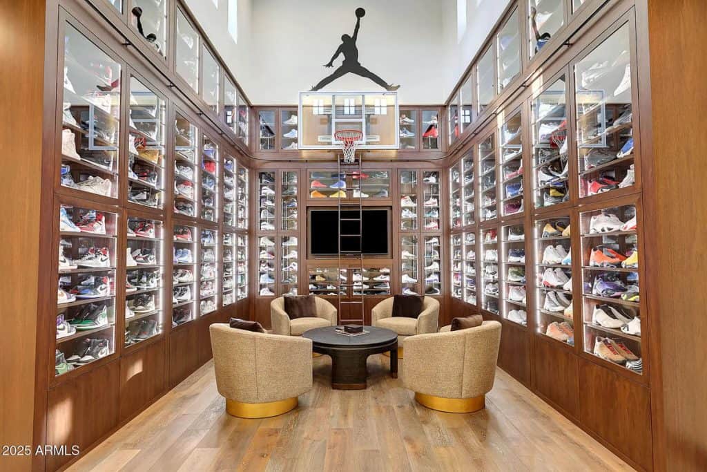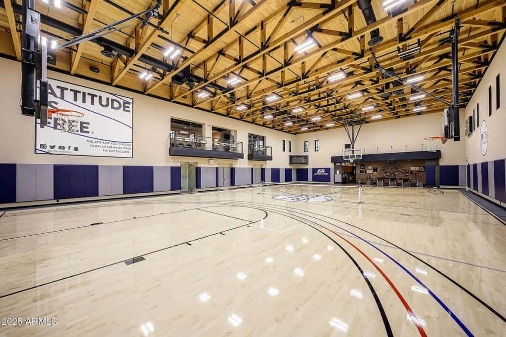This estate is a dream for entertainers, complete with two resort-style pools, outdoor televisions, and a fully equipped bar adorned with striking fire and water elements. The formal living room, characterized by its high ceilings and large windows, offers an ideal setting for elegant celebrations throughout the year. Additionally, a separate guest house spanning 1,551 sq. ft. with two bedrooms provides privacy and comfort for longer visits, complete with its own entrance and amenities. An underground basketball gym, built to regulation size and located 15 feet beneath the surface, boasts a professional scoreboard, a loft, a locker room with five bathrooms, and private parking. Furthermore, the property is equipped with a cutting-edge golf simulator and a lavish movie theatre, ensuring that residents and guests have a wealth of entertainment options at their disposal.