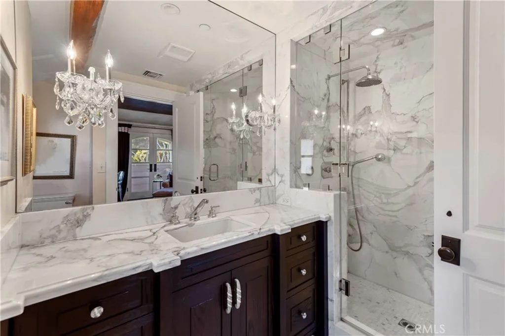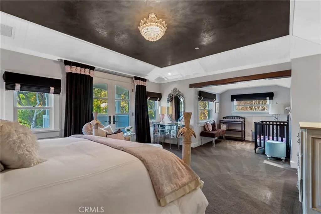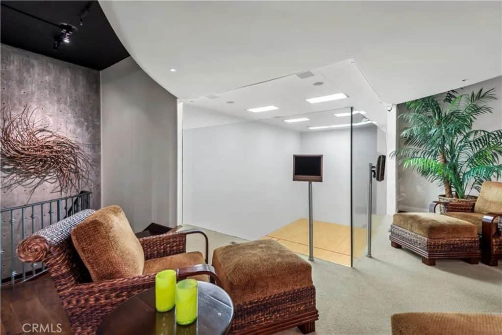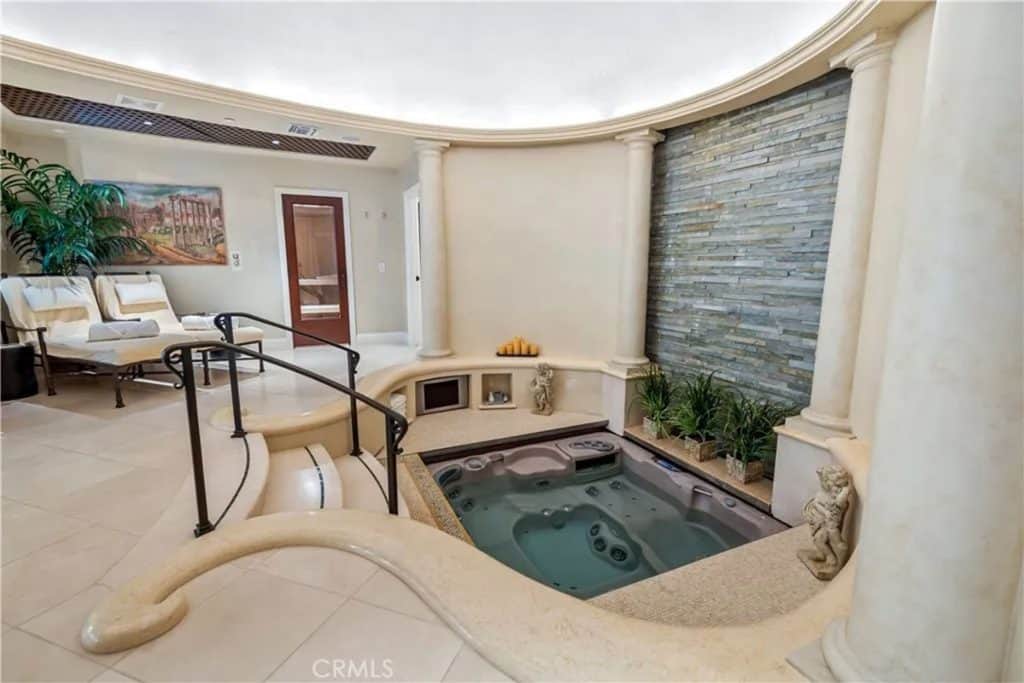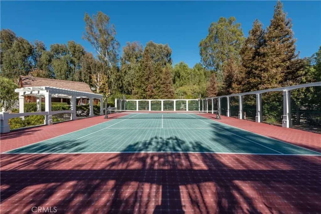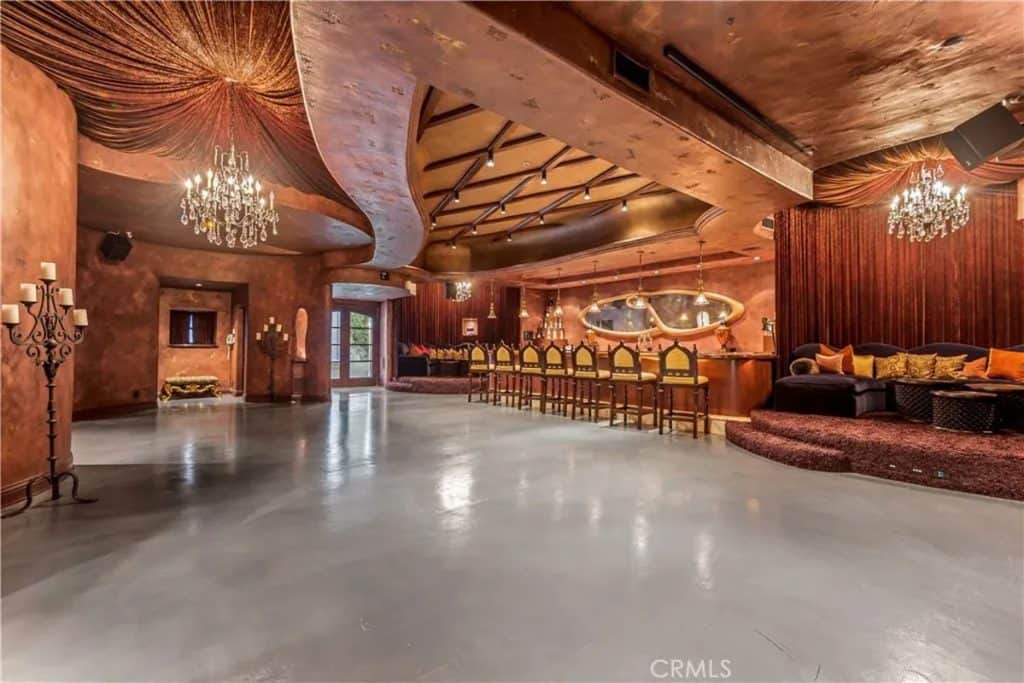 This stunning private estate is truly unparalleled. Situated on 2.5 acres of flat land, it boasts a 11,639 square foot main house, a 1,092 square foot guest house, and a remarkable 7,200 square foot spa/sports/gym/entertainment pavilion. Additionally, there is a spacious barn with stables for 7 horses, and garages for 6 cars.