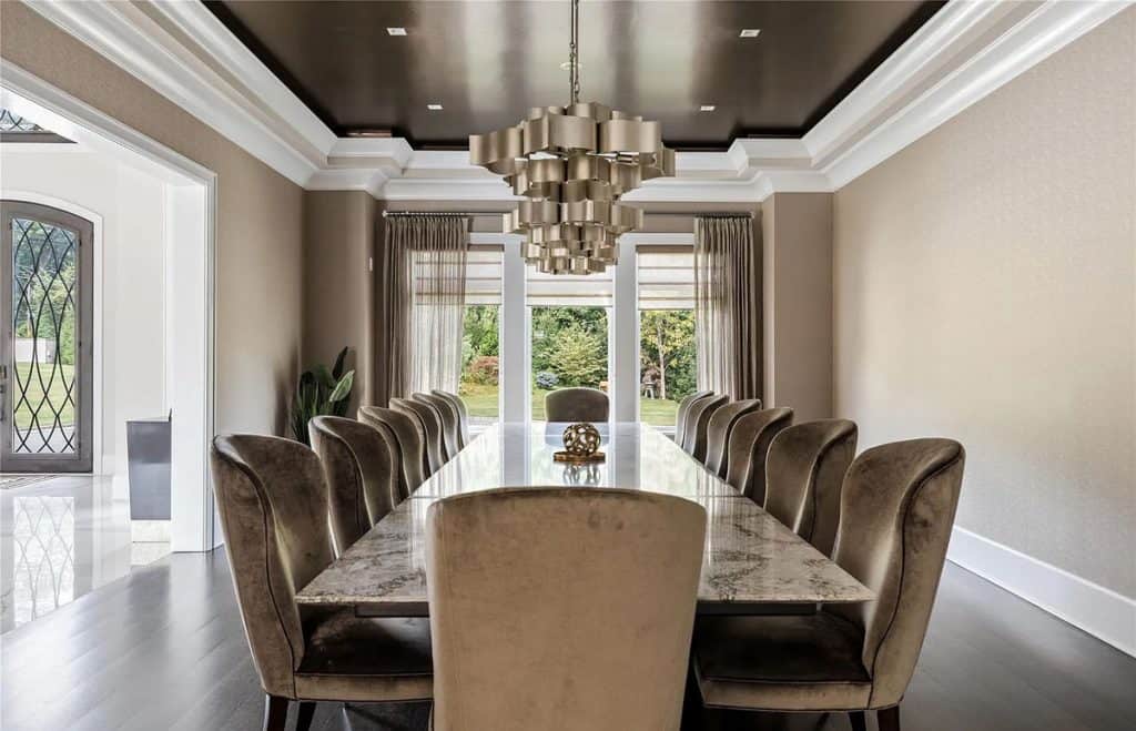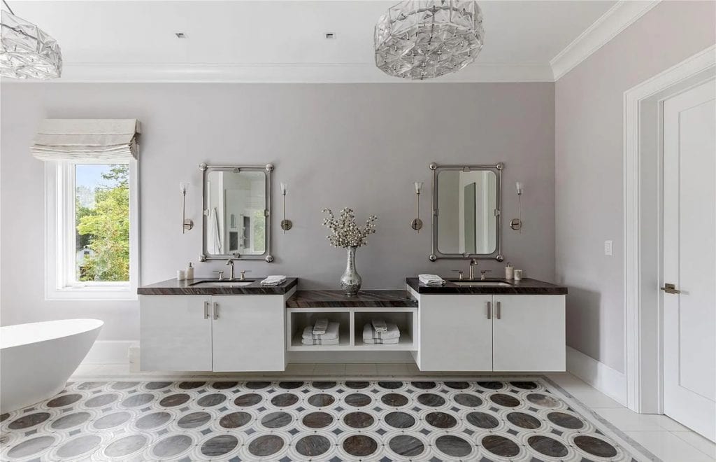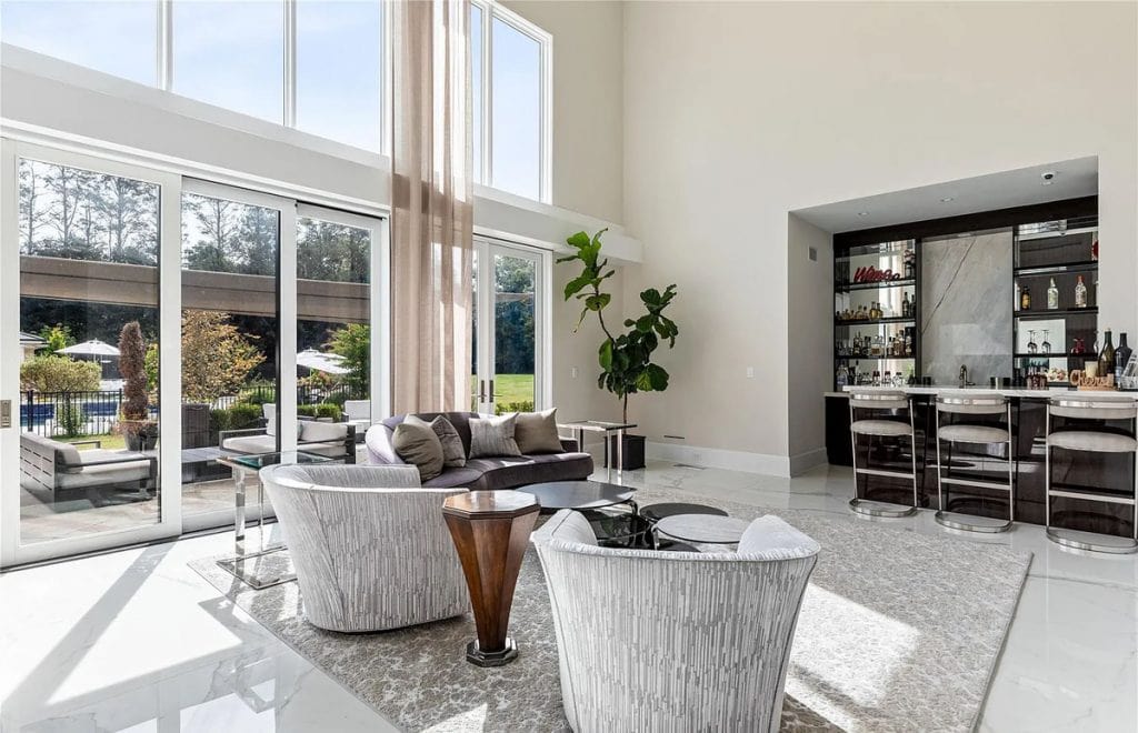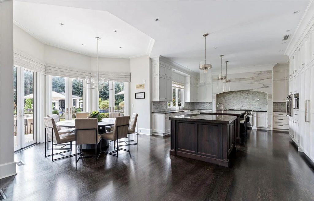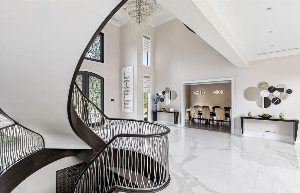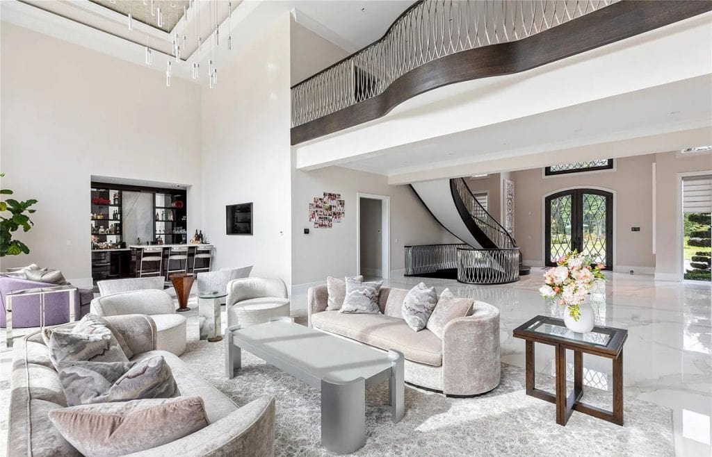 Nestled behind two exclusive gates in one of Long Island’s most esteemed neighborhoods, this newly built estate features 10 bedrooms and 15 bathrooms, showcasing a perfect blend of sophisticated design and opulent living. Inside, a grand marble foyer featuring a sweeping spiral staircase reveals the core of the home: a spacious great room with high ceilings, a modern gas fireplace, a custom wet bar, and expansive glass walls that blur the line between the interior and exterior. The inviting family room includes a cozy fireplace with a custom stone mantel and lovely natural wood built-ins. On the upper floor, the primary wing brings to mind the ambiance of a luxury hotel, featuring a private lounge, a dressing and vanity area, a spa-like bathroom with a large rain shower and soaking tub, heated floors, and several walk-in closets with custom wardrobe designs. It features a one-bedroom guest suite, a media or den area, a full bathroom, a cutting-edge gym equipped with a sound system and sauna, and a full-scale golf simulator for year-round enjoyment. Outside, the luxurious amenities continue with a covered patio that includes a fireplace, a built-in kitchen, and a beautiful in-ground pool and spa.